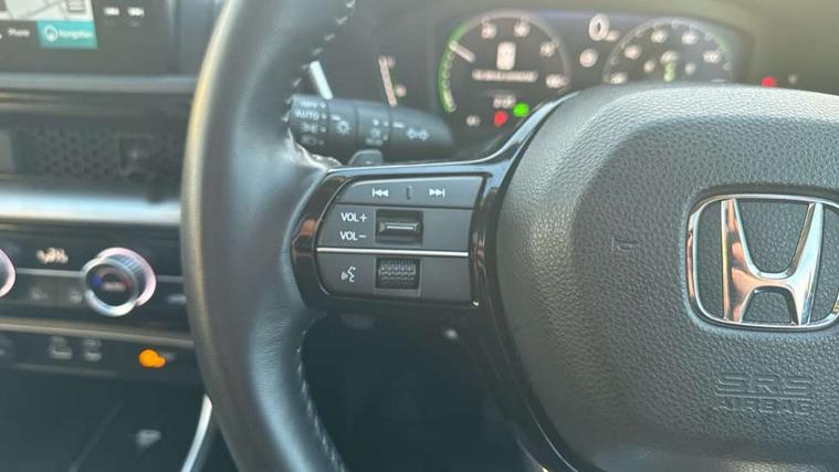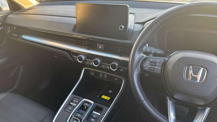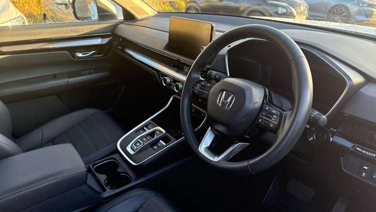 10.2" Multi information display, 4 x front and 4 x rear parking sensors, Active lane change assist, Adaptive cruise control with Cornering speed assist, Adjustable speed limiter, Agile handling assist, BLIS (Blind Spot Information System) with Cross Traffic Monitor, Bluetooth hands free telephone connection, Crossing traffic warning front, Drive mode (Econ, Normal, Snow, Sport), Driver attention monitoring system, E-call, eCall emergency call system, Electric power steering, Emergency stop signalling system, Forward collision warning, Handfree power tailgate with kick sensor and walk away close, HEV mode, Honda 360 sensing, Honda CONNECT with Navigation 9" touchscreen, AM/FM/DAB, Apple Carplay and Android Auto, live traffic info, Intelligent speed limiter, Lane change collision mitigation, Lane departure warning system, Lane keep assist system, Lane watch, Lead car departure notification system, Low speed following, Power meter, Rear view camera, Road departure mitigation, Traffic jam assist, Traffic sign recognition, Wireless apple carplay, Wireless charging, Amplitude reactive damper, Vehicle stability assist, 1X USB (A/2.5A) and 1x Charger (C/3A) on Front, 8 Speakers, DAB+ radio, Dashboard centre speaker, Front tweeters, Premium audio speakers, Rear USB 2x Charger (C/3A), Steering wheel mounted controls, Auto dimming rear view mirror, Auto headlights, Auto wipers, Body colour bumpers, Body colour door handles, Body colour plus material colour roof spoiler, Body coloured shark fin antenna, Chrome + black paint grille, Electrically adjustable and heated door mirrors, Electrically folding door mirrors, Exhaust pipe finisher, Exterior mirror tilt for reverse, Front and rear electric windows, Front LED Indicator lights, Front turn type led with sequential, Headlight auto on/off timer, High beam assist, LED 3rd brake light, LED daytime running lights, LED front fog lights, LED Headlights, LED rear lights, Low gloss black window garnish, Panoramic opening glass sunroof, Privacy glass, Rain sensor, Rear side wing doors, Rear wiper, Roof rails, Trailer stability assist, Welcome home function, 3 seat bench in 2nd row, 4 way driver lumbar support, 4 way electrically adjustable passenger seat without height adjust, 60/40 split folding rear seat, 8 way electrically adjustable drivers seat, Accessory sockets in Front & Trunk, Air conditioning - Rear vent, Ambient light in roof, Cargo net hooks, Courtesy lights, Driver and front passenger seat armrests, Driver/passenger front seatback pockets, Driver/passenger sunvisors and vanity mirrors, Driver/passenger sunvisors with illuminated vanity mirrors, Dual zone automatic climate control, Film hairline interior panels, Footwell ambient interior light front and rear, Front and rear ambient light (door handle&door line) and front cup holder, Front centre armrest, Front map lights, Genuine leather steering wheel, Heated front seats, Heated steering wheel, Hybrid emblem, I-Size ISO Fix Points, Instrument panel with garnish wood film, Leather upholstery, Light roof lining, Luggage floor box, Meter illumination, Normal pedals, Platinum chrome interior door handles, Rear centre armrest, Rear headrests, Rear reading lights, Reclining rear seats, Single front passenger seat, Sunglasses holder, Synthetic headrest, Tilt/telescopic adjustable steering wheel, Tonneau cover, Trunk light, Exclusive styling pack - CR-V, 5 x 3 point seatbelts, ABS/EBD, Anti-whiplash front headrests, Brake assist function, Collision mitigation braking system, Deflation detection system, Driver airbag, Driver SRS airbag (single stage inflation), Electronic parking brake with auto hold, Front and rear collision mitigation throttle control, Front and rear curtain airbags, Front and rear seat belts with emergency locking retractor (ELR), Front centre airbag, Front passenger airbag, Front side airbags, Hill descent control, Hill start assist, Knee airbags (DR) and (AS), Low speed brake system, Manual child lock in rear doors, Paddle deceleration control, Passenger SRS airbag with cut off switch, Rear side airbags, Honda super locks, Immobiliser, Mirrors and windows key fob operation, Remote central locking with 2 key fobs, Security alarm, Selectable door unlock, Smart entry + Smart start, Tilt sensors, Ultrasonic security sensor, Flat tyre solution temper tyre/repair kit,