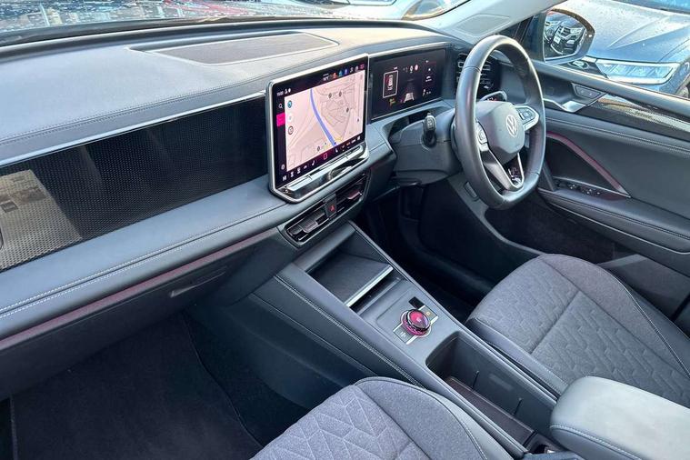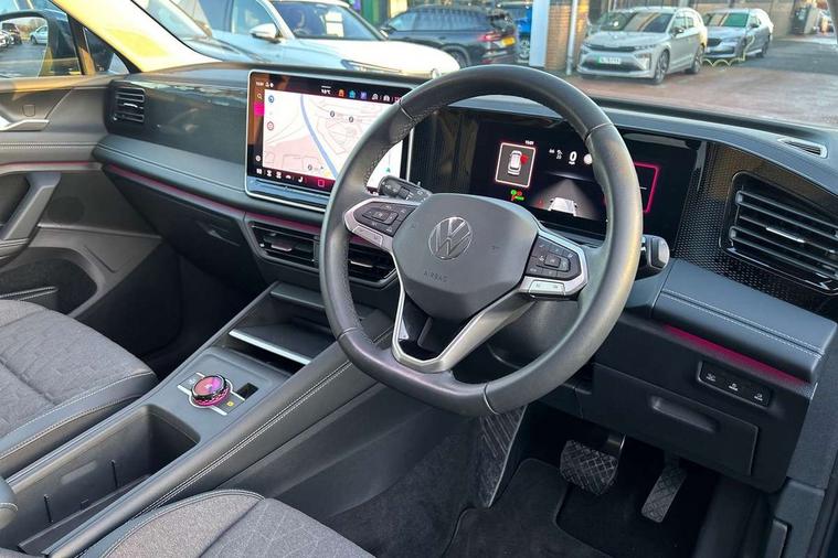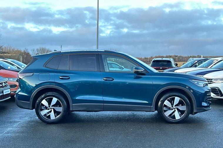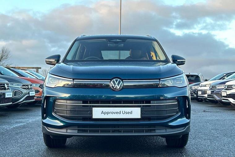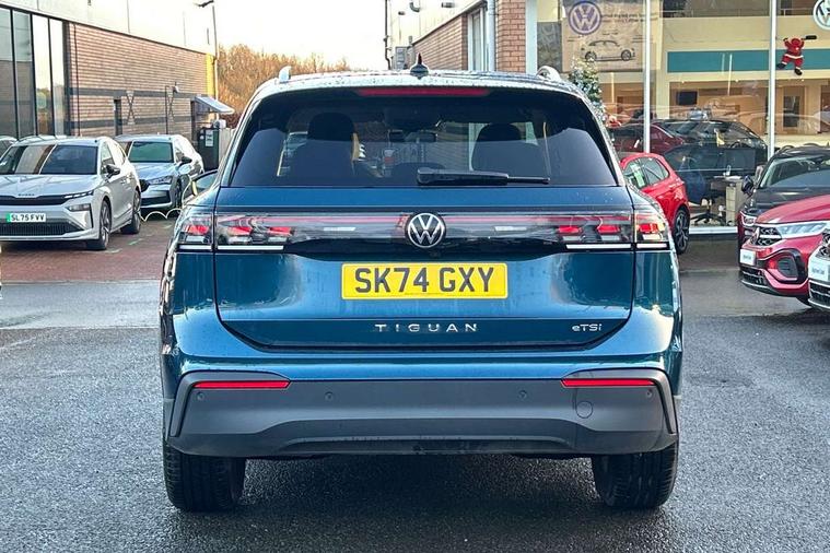 Adaptive cruise control (ACC), Advanced driver attention and drowsiness monitor, Bluetooth mobile phone interface, Car2X technology, Digital Cockpit Pro - 10.25" high resolution dash display screen with customisable menus and information, Dynamic road sign display, E-Sim card for online connectivity, eCall emergency call service, Front Assist - Autonomous emergency braking with pedestrian and cyclist monitoring, Lane change system, Side assist, Rear traffic alert and Exit warning system, Lane keeping system Lane Assist, Multifunction front facing camera, Oncoming vehicle braking when turning including swerve support, Park assistance plus with front and rear parking sensors, Power assisted steering with speed sensitive, Start/stop system with regenerative braking, Warning signal and warning light for front and rear seatbelts not fastened, Wireless App-Connect, Front wheel drive, Digital radio reception (DAB), Diversity antenna for FM reception, Ambient lighting with logo projection, Auto dimming interior rear view mirror, Automatic headlight control system, Body coloured bumpers and air intake with chrome trim, Body coloured door handles, Body-coloured exterior mirror housings, Coming/leaving home lighting function, Heat insulating glass in side and rear windows, Heat insulating windshield, Heated rear window, High level 3rd brake light, Illuminated door handle recesses, Illuminated lightline between headlamps, Rain sensor windscreen wipers, Rear fog light on one side, reversing light on both sides, Rear side wing doors, Rear wiper, 12V outlet in center console rear and in luggage compartment, 12V socket in centre console, 3 bench rear seats in 2nd row, Air care climatronic 3 zone air conditioning system with rear air conditioning control panel, Carpet mats, front and rear, Centre console with illuminated storage compartment with sliding cover and two drinks holders, Ceramique headlining, Door and side trim panel in foam film and woven fabric, Front centre armrest, ISOFIX anchors for child seats on outer rear seats and front passenger seat compatible with i-Size, Mechanical rear seat release, Power adjustable lumbar support in front, Rear bench seat, split folding, longitudinally movable and folding with load-through hatch and centre armrest, Safety optimised front head restraints, Single front passenger seat, Sun visors with illuminated vanity mirrors, Three rear head restraints, Variable luggage compartment floor, Comfort package with park assist plus and Safelock - Tiguan, Design package - Tiguan, 3 point seat belt for centre rear seats, 3 Point seat belts in front with pretensioners, 3 point seatbelts in outer rear with ECE label, Driver and front passenger airbag with front passenger airbag deactivation, Electronic parking brake with auto hold, Front and rear curtain airbags, Front and rear side airbags, Front centre airbag, Front disc brakes, Manual child proof rear door locks, Rear disc brakes, Two tone horn, Warning triangle, Anti theft wheel bolts, Soul instrument panel,