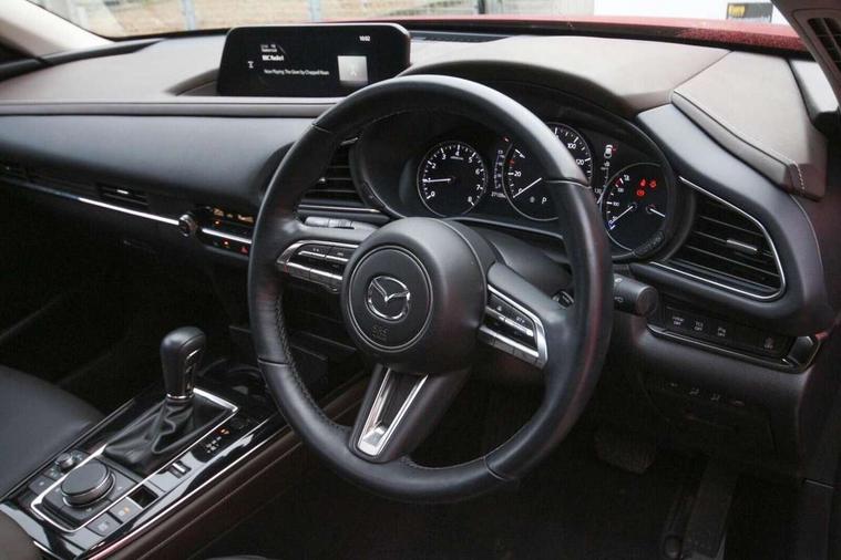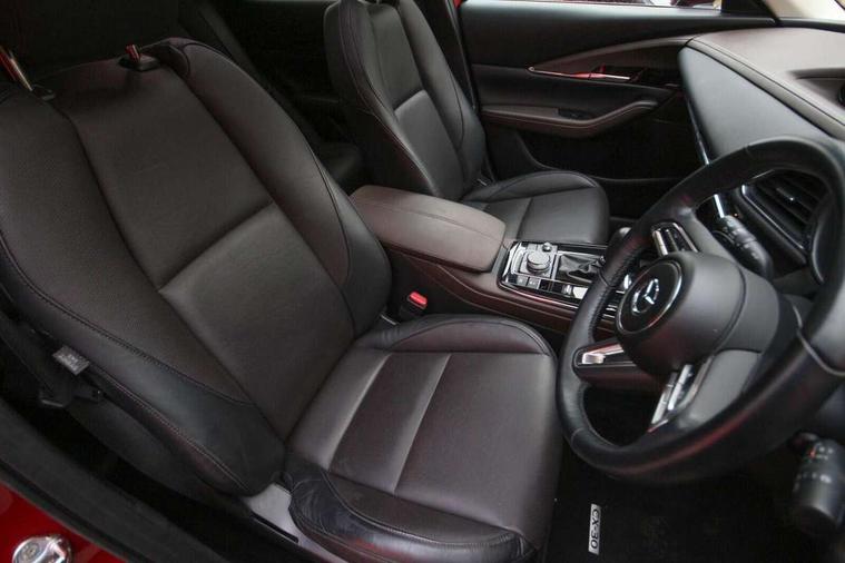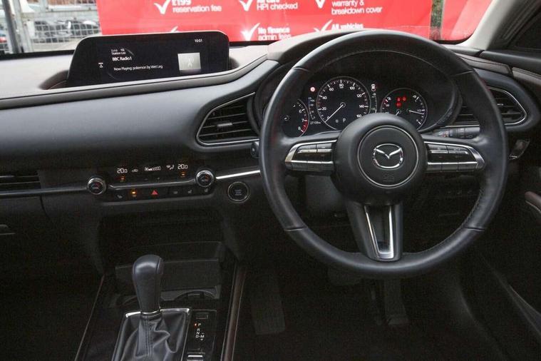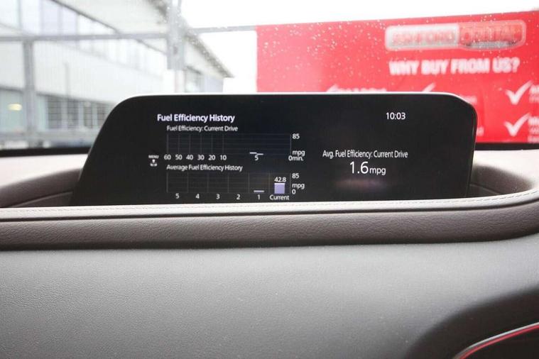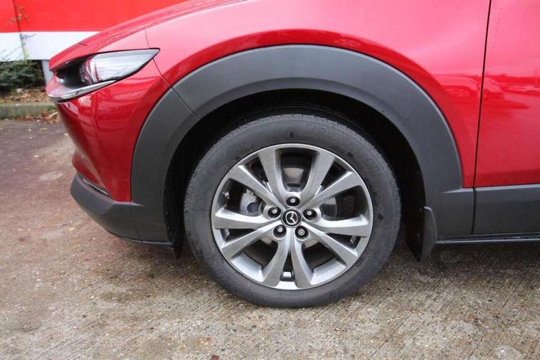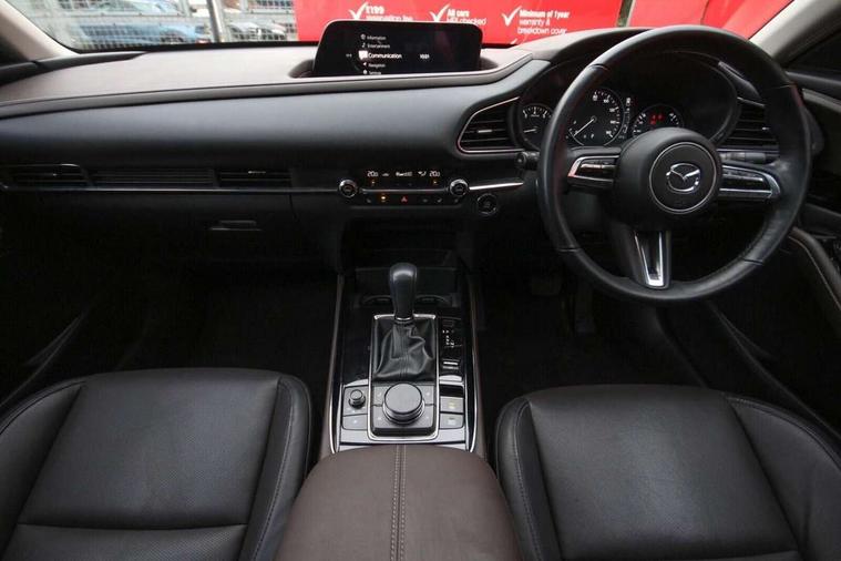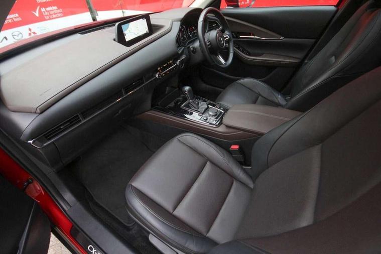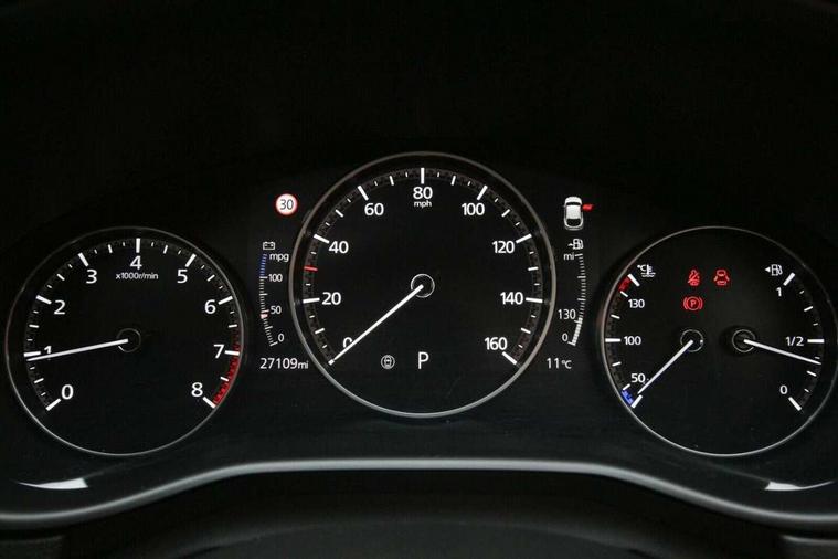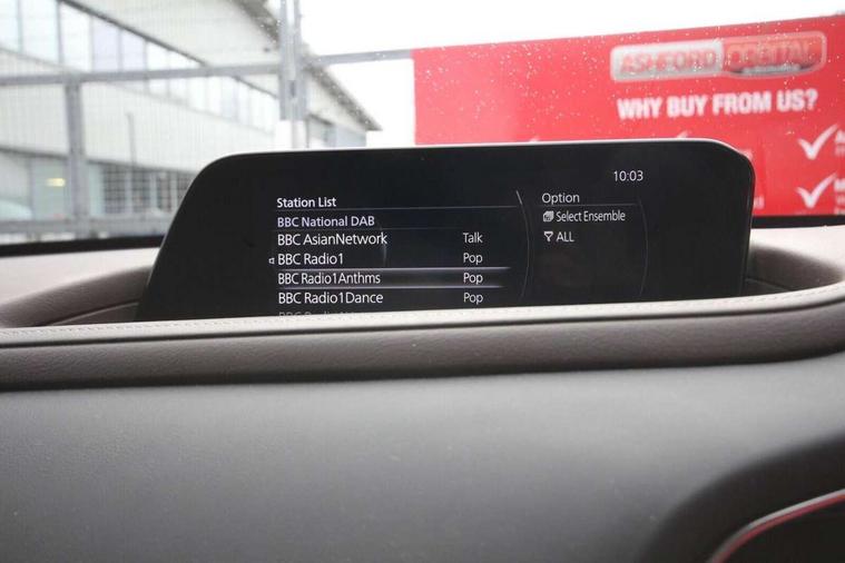 7" TFT Colour driver instrument panel display, 8.8" Colour centre touch screen display with Mazda Connect infotainment, Adaptive cruise control (Mazda radar cruise control) features stop and go, Apple car play/Android Auto, Blind spot monitoring with rear cross traffic alert, Drive mode selector, Driver attention alert system, E-call with GPS, Emergency stop signalling system, Engine start/stop button, Front and rear parking sensors, Integrated bluetooth, Integrated Mazda navigation system, Intelligent speed assist, Lane keep assist system (LAS) with Lane departure warning system (LDWS), Mazda connected services, PAS, Power lift gate, Reversing camera, Service indicator, Tailgate, Traffic sign recognition, Trip computer, Windscreen projected colour active driving display (HUD), i-stop, 2 USB charging ports in front inner central armrest, AM/FM and DAB radio, Bose surround sound system with 12 Speaker, Bose center point, Bass match and audio pilot technology, Multimedia Commander including separate volume dial, Steering wheel mounted audio/bluetooth controls, Adaptive LED Headlights, Auto dimming driver's door mirror, Auto headlight levelling, B-pillar and C-pillar garnishes in piano black finish, Body coloured, electrically adjustable, heated auto power folding door mirrors with integrated indicators, Chrome finish signature wing in front grille, Coming/leaving home lighting function, Door mirrors with adjustable memory and tilt-down function when reversing, Dual chrome exhaust, Dusk sensing headlights, Electric front/rear windows with one touch auto up/down, Frameless auto dimming interior rear view mirror, Front kodo turn signal, Gloss black front grille, Gloss black rear roof spoiler, High beam assist, LED signature daytime running lights, Privacy glass (rear side windows and rear screen), Rain sensing front wipers with adjustable speed and intermittent wipe, Rear fog lights, Rear side wing doors, Rear wiper, Signature LED rear combination lights, Third brake light, 12V power outlet in centre console, 3 seat bench in 2nd row, 60/40 split fold down rear seats, Chrome horn pad ring, Chrome interior trim accents with steering wheel centre bezel, surround of engine start / stop button and glove box handle, Dashboard, door cards and front centre armrest in rich brown leather, Driver and front passenger visors with covered vanity mirror and driver ticket holder, Driver's seat, power tilt, slide, recline, height and lumbar adjustment, Driver, front passenger and two rear door storage, Driver, Front passenger and two rear grab handles with coathooks, Dual zone climate control air conditioning with rear air vents, Folding rear centre armrest with two cup holders, Front and rear (x3) head restraints, Front and rear LED lighting, Front armrest, Front centre storage with two cupholders with lid, Front passenger seatback pockets, Front passengers seat manual slide, recline and height adjustment, Glovebox illumination, Heated front seats with 3 stage setting, Heated steering wheel, ISOFIX child seat anchorage points attached on outer rear seats, Leather upholstery with interior accents, Leather wrapped gear shift knob, Leather wrapped steering wheel with telescopic and tilt adjustment, LED luggage compartment lighting, Light roof headlining and pillars, Paddle shift controls, Rear armrest inner material in cloth, Roof mounted sunglasses holder, Single front passenger seat, 3 point ELR front seat belts x2 with pretensioners, 3 point ELR rear seat belts, Anti-lock braking system (ABS), Drivers knee airbag, DSC - Dynamic Stability Control, Electronic parking brake with auto disengage function and auto hold function, Front and rear curtain airbags, Front dual stage driver and single stage front passenger airbags, Front passenger airbag cut-off switch, Front side airbags, Front smart city brake support, G-Vectoring control plus, Hill launch assist, Manual child lock in rear doors, Mild Hybrid system with regenerative braking, Seatbelt reminder for driver/front passenger and rear seats, Traction control system (TCS), Tyre pressure monitoring system (TPMS), Remote central locking with deadlocking and automatic door lock when driving, Smart keyless entry, Thatcham accredited alarm and immobiliser, Dark vinyl door panel inserts, 18" Bright alloy wheels, Emergency tyre repair kit,
