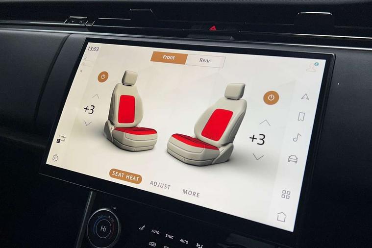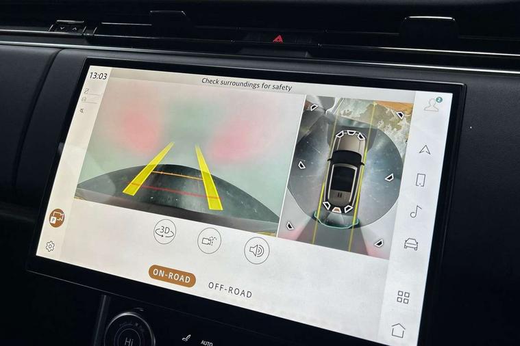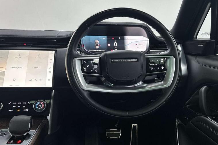 13.1" Touchscreen, 3D surround camera inc frwd traffic detection, vehicle clearance guidance, 3D view, clearsight ground view, manoevure light, 360 parking aid, wade sensing, Adaptive cruise control with steering assist, All Terrain Info Centre, All wheel steering, Android Auto, Apple car play, Blind spot assist, Bluetooth connectivity streaming, Driver condition response, Eco mode, Electric power assisted steering (EPAS), Emergency call service, Front and rear parking aid, Interactive driver display, Lane keep assist, Powered gesture tailgate/boot lid, Rear collision monitor, Rear traffic monitor, Remote, Traffic sign recognition with adaptive speed limiter, Wi-Fi Enabled with data plan, Wireless device charging with phone signal booster, 8 speed automatic transmission, Active damper technology system, Adaptive dynamics, All terrain progress control, All Wheel Drive (AWD), Automatic access height, Terrain Response 2 Auto, Twin speed transfer box, Digital Audio Broadcast radio-DAB, Pivi pro including smart settings, Connected navigation pro, nuance speech, USB socket, Acoustic laminated windscreen, Animated directional indicators, Automatic headlights, Automatic levelling headlights, Centre high mounted stop light, Electric windows with one touch open/close and anti trap, Flush deployable exterior door handles, Front and rear recovery eyes, Front fog lights, Headlamp power wash, Heated rear window, Heated washer jets, LED tail lights, Less tow hitch receiver, Power fold, auto-dimming, heated door mirrors with approach lights, Rain sensing windscreen wipers, Rear boot, Rear fog lights, Rear side wing doors, Rear wash/wipe, Side repeater indicators in mirror, Trailer stability assist, Winter wiper park position, 12V power sockets, 3 seat bench in 2nd row, Air quality sensor, Bright metal pedals, Cabin lighting, Customer configurable single point entry, Driver and passenger front seat armrests, Easy boot loading, Ebony Carpet, Front and rear cupholders, Front and rear grab handles, Front head restraints, Gearshift paddles, Heated steering wheel, Hook in load space, Loadspace light, Luggage tie down in loadspace, Multifunction steering wheel, Rear centre armrest, Rear head restraints, Rear ISOFIX, Single front passenger seat, Twin blade sunvisors with Illuminated vanity mirrors, Upper and lower glovebox, Online pack with data plan - Range Rover, 3x3 point rear seat belts, Anti-lock braking system (ABS), Brake hold function, Cornering brake control (CBC), Customer configurable autolock, DSC - Dynamic Stability Control, Electronic brake force distribution, Electronic parking brake, Electronic traction control, Emergency brake assist, Emergency braking, Front airbags with passenger seat occupant detector, Front side airbags, Hill descent control, Hill launch assist, Low traction launch, Occupant protection assist, Power operated child locks, Roll stability control, Tyre pressure monitoring system (TPMS), Immobiliser, Intrusion sensor and alarm, Keyless entry, Locking wheel nuts, Remote central locking, Noble chrome controls,