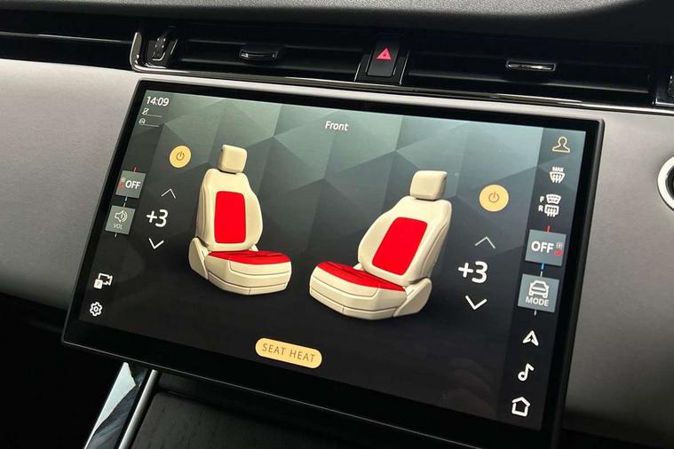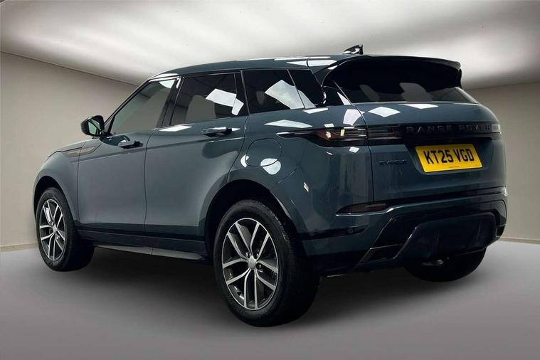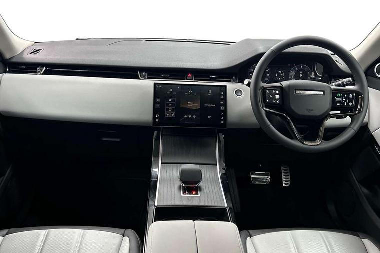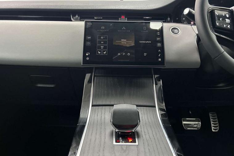 11.4" touch screen, Adaptive cruise control, Android Auto, Apple car play, Blind spot assist, Bluetooth connectivity, Brake pad wear indicator warning light, Driver condition monitor, eCall emergency system, Eco mode, Electronic power assisted steering (EPAS), Front and rear parking aid, InControl remote, Interactive driver display, Land Rover InControl apps, Lane keep assist, Pivi pro connected includes diamond pivi variant, smart settings, connected navigation pro, nuance speech licence, Powered tailgate/boot lid, Rear collision monitor, Rear traffic monitor, Traffic sign recognition with adaptive speed limiter, Voice control system, Wireless device charging, All terrain progress control, Electric rear axle drive, Home charging cable, Large fuel tank, Passive suspension, Public charging cable, Terrain Response 2, Digital Audio Broadcast radio-DAB, Steering wheel mounted controls, Acoustic laminated windscreen, Auto headlights, Auto high beam assist, Automatic headlight levelling, Electric windows with one touch open/close and anti trap, Flush deployable exterior door handles, Front and rear recovery eyes, Heated rear window with timer, Heated washer jets, Heated windscreen, LED headlights with signature DRL and LED tail Lights, Power fold, auto-dimming, heated door mirrors with approach lights and auto dimming driver side, Rain sensing windscreen wipers, Rear animated directional indicators, Rear fog lights, Rear side wing doors, Rear wiper, Side repeater indicators in mirror, Tailgate spoiler, Third brake light, Winter wiper park position, 12 way driver memory and 10 way passenger electric front seats with 2 way manual headrest + 4 way lumbar support, 40:20:40 split folding rear seats with centre headrest and armrest, Ambient interior lighting, Bright metal pedals, Carpet mats, Chrome tread plates with range rover branding Includes stainless steel loadspace scuff plate with etched graphic, Customer configurable single point entry, Front and rear cupholders, Heated front seats, Heated steering wheel, Isofix system on outer rear seats, Manually adjustable steering column, Overhead lighting console, Overhead stowage for sunglasses, Passive front head restraints, Rear air vents, Rear head restraints, Satin chrome gearshift paddles, SE Grained leather upholstery, Single passenger seat, Standard steering wheel with Moonlight Bezel, Sunvisors with illuminated vanity mirrors, Twin sliding front centre armrest, Online pack with data plan - Evoque, Power socket pack 2 - Evoque, 3 rear 3 point seatbelts, Anti-lock braking system (ABS), Brake hold function, Customer configurable autolock, DSC - Dynamic Stability Control, Electronic brake force distribution, Electronic parking brake, Electronic traction control, Emergency braking, Front and rear seatbelt reminder, Hill descent control, Hill launch assist, Low traction launch, Occupant protection assist, Passenger seat occupant detector, Power operated child locks, Roll stability control, Six airbags - Driver and passenger airbags/driver knee airbag/front side airbag and curtain airbags, Torque vectoring brake, Tyre pressure monitoring system, Alarm, Immobiliser, Intrusion sensor, Keyless entry, Locking wheel nuts,