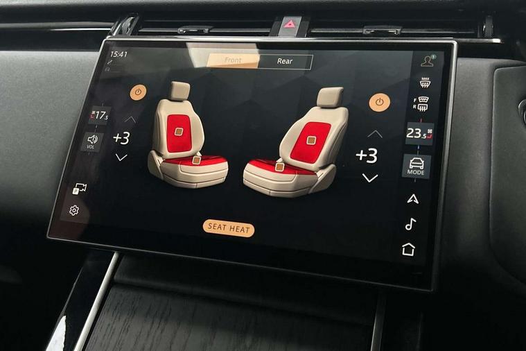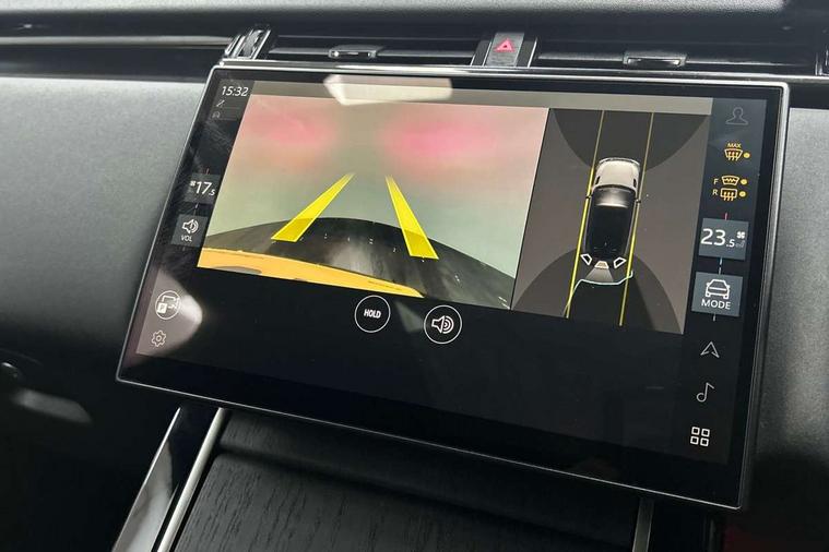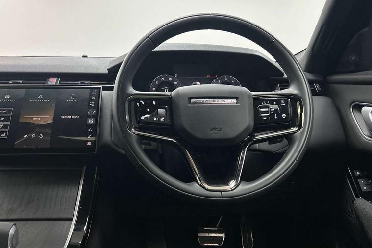 Adaptive cruise control with steering assist, Android Auto, Apple CarPlay, Blind spot assist, Bluetooth connectivity, Brake pad wear indicator warning light, Driver condition monitor, eCall emergency call system, Front and rear parking aid, InControl remote, Land Rover InControl apps, Lane keep assist, Pivi pro with connected navigation, Rear collision monitor, Rear traffic monitor, Service indicator, Speed proportional electronic power assisted steering (EPAS), Traffic sign recognition with adaptive speed limiter, Trip computer, Voice control system, 8 speed automatic transmission, AC/DC charging, Adaptive dynamics, All terrain progress control, Coil suspension system, Home charging cable, Open differential with torque vectoring by braking, Public charging cable, Single speed transfer box, DAB radio, Steering wheel mounted controls, 3rd brake light, Acoustic laminated windscreen, Auto dimming interior rear view mirror, Automatic headlamp levelling, Automatic headlights, Black roof rails, Body coloured bumpers, Boot protection plate, Electric windows with one touch open/close and anti trap, Flush deployable exterior door handles, Follow me home headlights, Heated rear window with timer, Heated washer jets, Metal front tread plates, Metal load space scuff plates, Pixel LED headlights with signature DRL, Power fold, auto-dimming, heated door mirrors with memory and approach lights, Rain sensor windscreen wipers, Rear animated directional indicators, Rear fog lights, Rear side wing doors, Rear wash/wipe, Tailgate/boot lid spoiler, Trailer stability assist, Velar badge, 3 seat bench in 2nd row, Ambient lighting, Bright metal pedals, Carpet mats, Driver/passenger sunvisors with illuminated vanity mirrors, Ebony morzine headlining, Electrically adjustable steering column, Heated steering wheel, Isofix system on outer rear seats, Loadspace cover, Overhead lighting console, Overhead stowage for sunglasses, Passive front headrests, Rear air vents, Rear centre headrest, Single front passenger seat, Twin front cupholders, Twin sliding front centre armrest, Online pack with data plan - Velar, Power socket pack 2 - Velar, 380mm front brakes and 325mm rear brakes, 3x3 point rear seatbelts, Anti-lock braking system (ABS), Cornering brake control, Curtain airbags, Customer configurable autolock, Door side intrusion beams, Driver airbag, DSC - Dynamic Stability Control, Electronic brake force distribution, Electronic parking brake, Electronic traction control, Emergency braking, Front and rear seatbelt reminder, Hill descent control, Hill launch assist, Low traction launch, Passenger airbag, Power operated child locks, Rear airbags, Roll stability control, Side airbags, Tyre pressure monitoring system (TPMS), Unpainted brake calipers, Global lock and unlock switch on driver door, Immobiliser, Intrusion sensor, Keyless entry, Lock only switch on front passenger door, Locking wheel nuts, Perimetric alarm, Remote central locking, All season tyres,