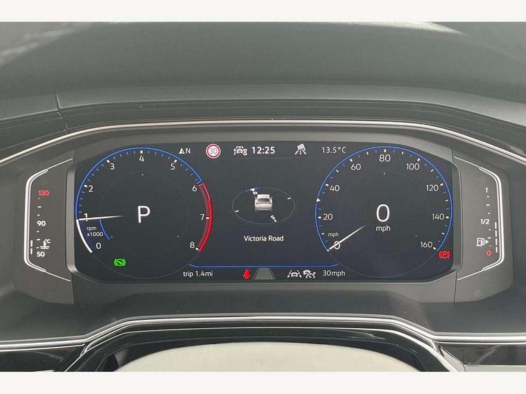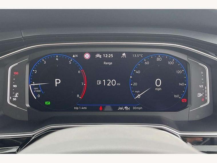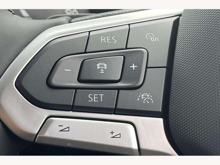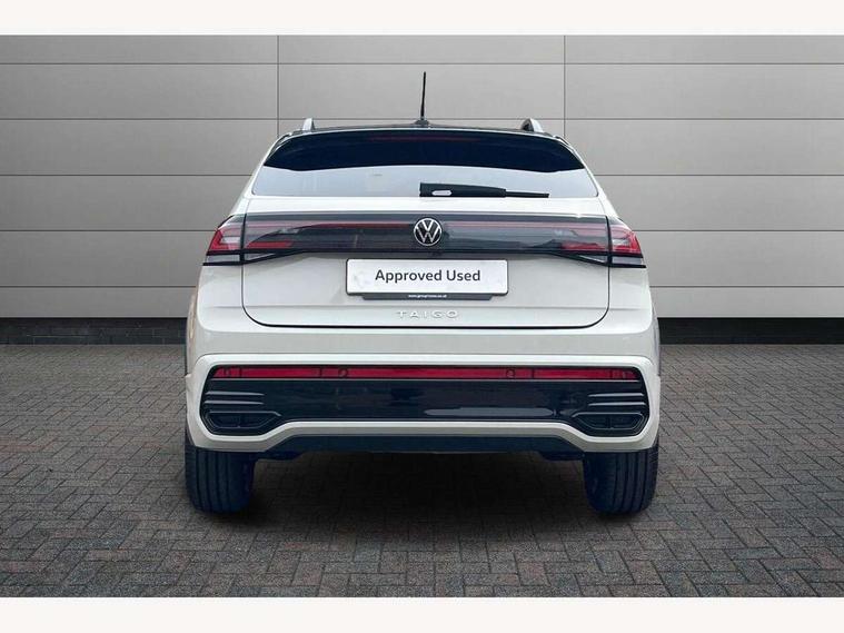 Adaptive cruise control, Advanced driver attention and drowsiness monitor, App-Connect including App-Connect Wireless, Digital cockpit pro - 10.25" high resolution TFT dash display screen with customizable menus and information, Driving profile selection, Dynamic road sign display, e-Call (emergency call), Power Steering, Travel assist including emergency assist, Washer fluid level indicator, Wireless Charging including Bluetooth, Start-stop system with battery regeneration (recuperation - energy recovery during braking), XDS electronic differential lock for improved traction and handling, Digital radio reception (DAB+), Diversity antenna for FM reception, WeConnect plus, Ambient lighting with logo projection, Aspherical driver's exterior mirror, Auto headlights, Body coloured bumpers, Bumpers in R-Line style, Electric windows, External USB type C socket and charging sockets, Front scuff plates with R-Line logo, LED rear combination lamp, LED third brake light, Left convex exterior mirror, Power folding adjustable/heated exterior mirrors and front passenger exterior mirror lowering function, Rear fog light on one side, reversing light on both sides, Rear side wing doors, Rear wash/wipe with intermittent wipe setting, 12V socket in centre console, 2 front reading lights, 3 rear head restraints, 3 seat bench in 2nd row, Air care climatronic air conditoning system with active combination filter and 2-zone temperature control, Black carpets, Black roof lining, Child seat anchor for child seat system i-Size, 2x top tether and child seat anchor in front on front passenger side, Chrome bezel for instrument cluster, vents, door handles + gear shift, Driver and front passenger seat height adjustment, Front + rear carpet mats, Front centre armrest, Front footwell illumination, Front sports comfort seats, Height and reach adjustable steering wheel, Interior ambient lighting and surround lighting, Karoso artvelours cloth upholstery, Leather trimmed gear knob, Leather wrapped multifunction steering wheel, Luggage compartment floor, Luggage compartment light, Lumbar support for driver's and front passengers seat, Seat covers in grey + titanium black, Single front passenger seat, Split folding backrest with centre armrest and unsplit rear seat bench, Stainless steel pedals, Storage compartment under front seats, Sun visors with illuminated vanity mirrors, Chrome Package - Taigo, Drivers assistance pack - Taigo, Light and Sight pack including High beam assist - Taigo, 2 x 3-point seatbelts/outer rear seats with ECE label, 3-point seat belts in front with pretensioner and height adjustment, 3-point seatbelt for centre rear seat, Adaptive driver and front passenger airbags with passenger airbag deactivation function, Driver and front passenger safety-optimised head restraints, Electronic stability control, Extended and predictive pedestrian/ cyclist protection, Front and rear disc brakes, Front curtain and side airbags with center airbag, Hill start assist, Manual rear child locks, Single tone horn, Tyre pressure loss indicator, Anti-theft alarm system with interior monitoring, backup horn, and towing protection, Grey anodised matte decorative inserts in dash and front door panels, Low rolling resistance tyres,