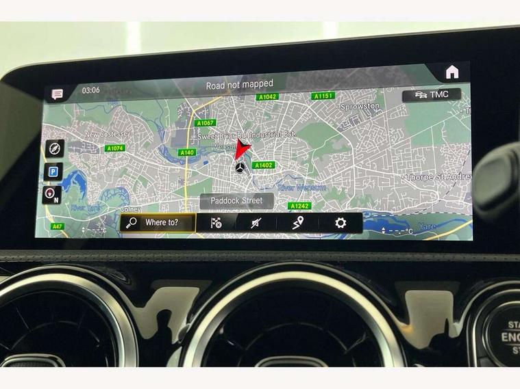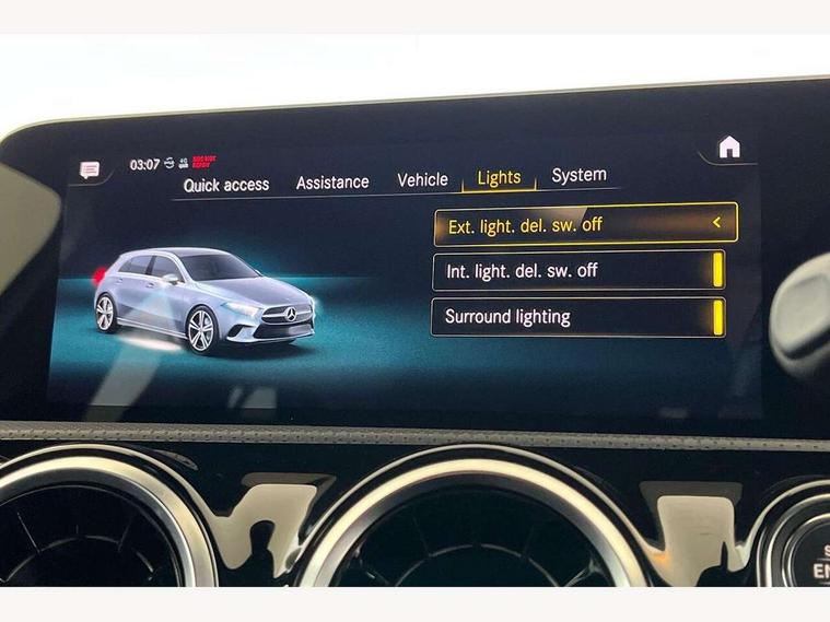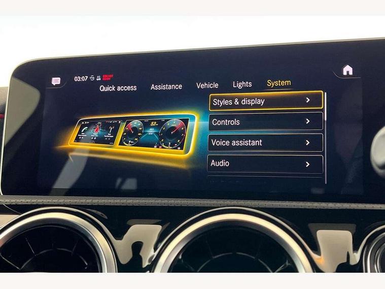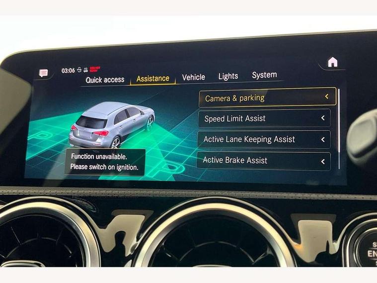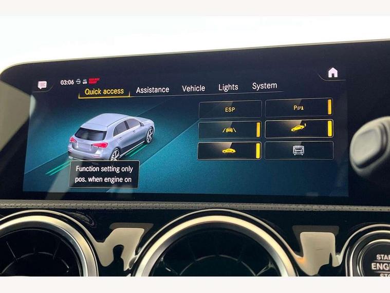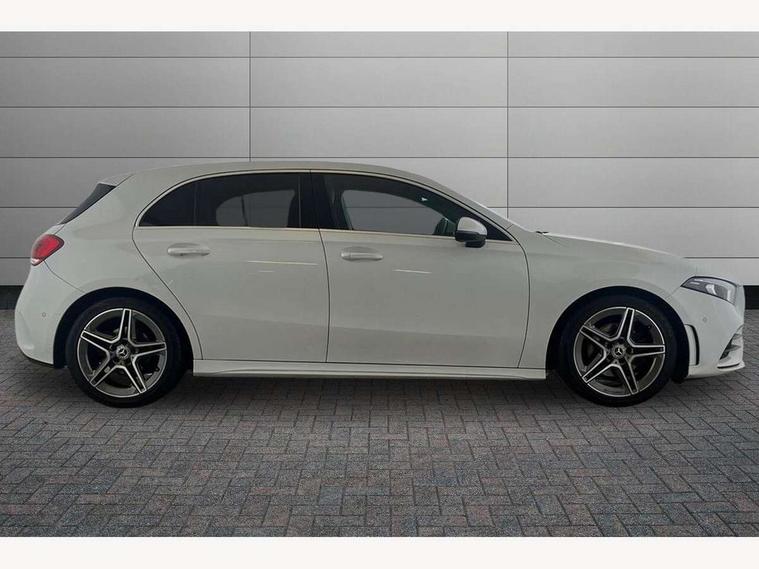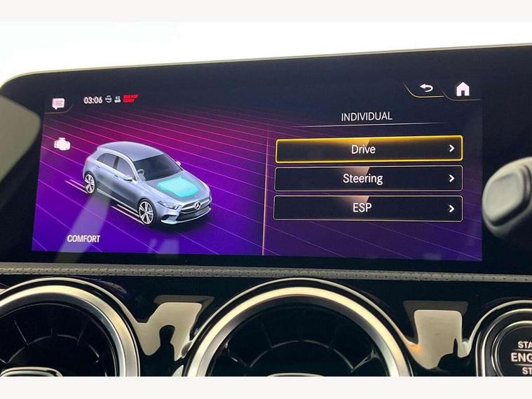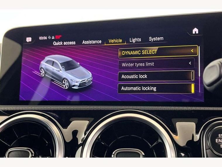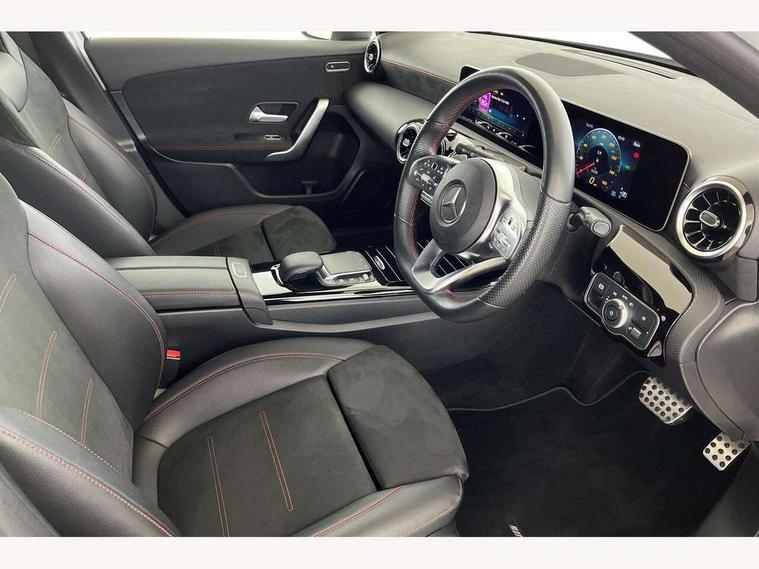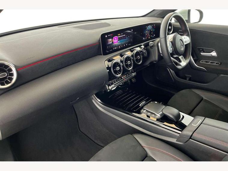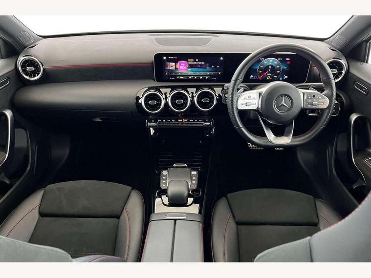 10.25" media display, 180 degree rear view camera with parking guidelines, 7" colour screen in instrument panel, Active lane keep assist, Active park assist with parktronic system including front and rear parking sensors, Attention assist, Brake pad wear indicator warning light, Car wash mode, Cruise control + speed limiter, Direct steering, Dual bluetooth interfaces, DYNAMIC SELECT with a choice of driving modes (ECO, Comfort, Sport and Individual), ECO start/stop function, Fluid level warning indicator for fuel, oil, coolant and washer fluid, Hard-disk navigation, Hey Mercedes Voice activation, Lamp failure indicator, Mercedes me connect including emergency call system, accident recovery, breakdown and maintenance management, Outside temperature gauge, Owners manual in English, Pre-installation for private car sharing, Pre-installation for Vehicle Monitoring, Pre-installation for Vehicle Setup, Preinstallation for Mercedes Benz link, Service indicator (ASSYST), Smartphone integration with Apple CarPlay and Android auto, Speed sensitive power steering, Trip computer, Wireless charging, Lowered comfort suspension, Rear axle torsion beam, 2 USB ports (type C) in rear stowage compartment and one in front of center console, 6 speakers, DAB Digital radio, MBUX multimedia system with DAB digital radio and touchpad including satellite navigation, Mercedes-Benz sound system - 100W, 4 Electric Front and Rear windows, Adaptive brake lights, AMG bodystyling - Front apron with splitter in chrome, rear apron with chrome trim and chrome visible trim elements in tailpipe, Black weather strip, Body colour bumpers, Body colour door handles, Body colour side skirt, Body coloured door mirrors, Chrome beltline trim, Diamond radiator grille with chrome pins and silver louvre + chrome insert, Electric adjustable and heated door mirrors with integrated LED side indicators, Exhaust system - Twin visible tailpipes in polished stainless steel, Headlamp assist automatic headlamp activation, Heated glass rear windscreen + timer control, LED high performance headlamps with integrated LED daytime running lights, LED tail lamp, LED third brake light, Privacy glass, Radio aerial, Rain sensing windscreen wipers with two sensitivity settings, Rear fog lights, Rear wiper, Window line trim strip in chrome, 3 Spoke flat bottom leather multi function steering wheel with perforated leather in grip area, 40:20:40 split folding rear seats, Artico man-made leather/Microfibre Dinamica upholstery with red contrast stitching, Auto Mercedes-Benz child seat recognition sensor, Black air vents with surround in silver chrome, Black roof lining, Brushed stainless steel sports pedals with rubber studs, Controller on centre console with chrome surround, Floor mats with stitched edging and AMG lettering, Front centre armrest with storage compartment, Front door sills with Mercedes Benz lettering, Front seat backs luggage nets, Front seat cushion length adjustment, Galvanished gear shift paddles on steering wheel, Heated front seats, Height/reach adjustable steering column, Interior mirror with reading lamps in black and frameless, Manual height adjustable front seats, Rear head restraints, Seat occupancy sensor for front passenger seat, Sports seats with integrated headrests, Stowage compartment in centre console with retractable cover, Sunvisors with illuminated vanity mirrors, Touchpad on center console, Twin front cupholders, Two zone thermotronic luxury automatic climate control, Light and sight pack - A Class, Mirror package - A Class, Seat comfort pack - A Class, 3 rear 3 point seatbelts, ABS with Brake Assist, Active bonnet, Active brake assist includes forward collision warning system with autonomous braking, Adaptive brake assist with hold function and hill start assist, Black seatbelts, Childproof locks manually operated for rear doors and electrically operated for rear power windows, Crash responsive emergency lighting, Driver and passenger head and side airbags, Drivers knee airbag, Dual stage driver/passenger airbags, Electronic parking brake, ESP curve dynamic assist, ESP with ASR, Front and rear seatbelt reminder, Front brake callipers with Mercedes Benz lettering, ISOFIX and top tether child seat fixing points in two outer rear seats, Tyre pressure monitoring system, Warning triangle and first aid kit, Window airbags, Alarm system/interior protection/immobiliser, Keyless Go, Remote central locking and crash sensor with emergency opening function, Urban guard vehicle protection system with immobiliser and interior protection, Dinamica microfibre trim in black, 18" AMG 5 twin spoke light alloy wheels in titanium grey with highsheen finish, Summer tyres, Tirefit sealant kit,