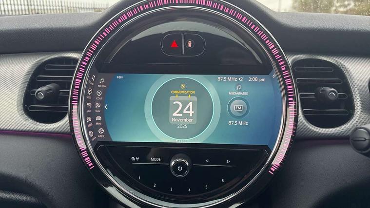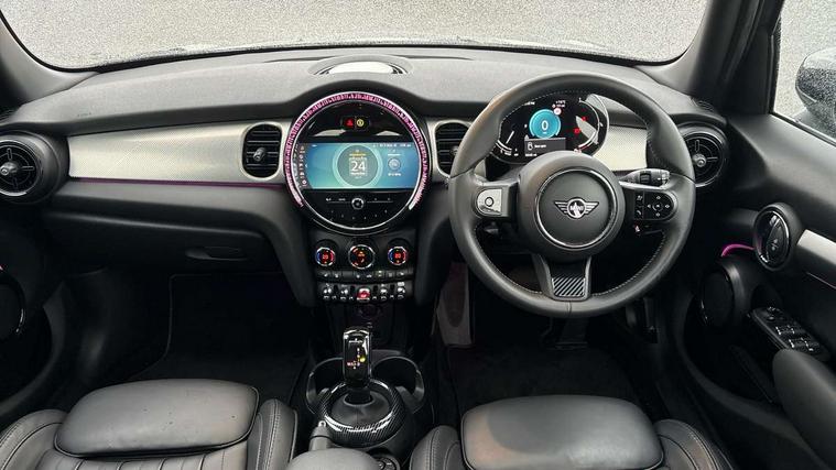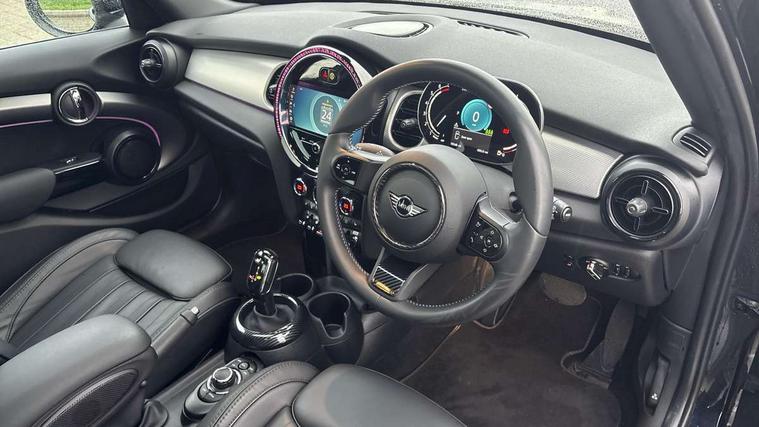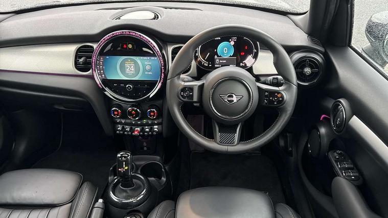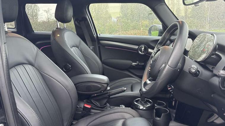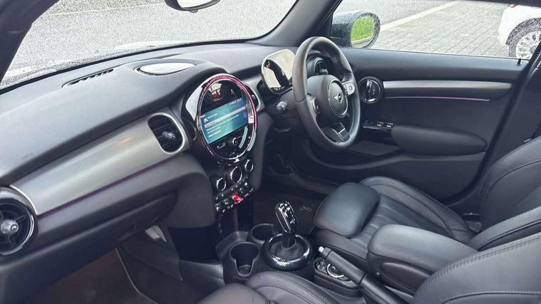 Apple CarPlay, Automatic start/stop function with brake energy recuperation, Compatible mobile phone bluetooth with audio streaming, Electro-mechanical speed dependant steering assistance, Flexible car sharing preparation, MINI Driving Modes - centre toggle switch to control driving setting (sport, mid and green), Mini E-call, MINI TeleServices, On board computer, Rear park distance control, Service interval indicator, Double Vanos system, Fully variable valve control, Gear change indicator display, High precision injection, Performance Control, Steptronic transmission with double clutch, 8.8" touchscreen with LED ring, FM tuner and DAB digital radio, 3rd brake light, Automatic headlight activation switch, Body colour fuel filler cap, Chrome line exterior - radiator grille bars, tailgate handle, lower front grille grating and rear central fog-light, Dynamic brake lights, Electric front+rear windows, Heated rear window, Heated windscreen washer jets, Metal door sill strips with MINI imprint, Model logo Cooper on right of tailgate, Rain sensor window wipers, Rear fog lights, Rear LED lights with union jack design, Rear side wing doors, Rear window wiper, Side scuttle panel with integrated indicator, Sun/heat protection glass, White indicator lenses, 12V Accessory socket in centre console, 3 seat bench in 2nd row, 4 lashing eyes in luggage compartment, 60/40 split folding rear seat, Anthracite headliner including grab handles and clothes hooks, Carbon black colour line - Knee roll and door armrest, Chrome interior highlights, Chrome line interior - air vents, gear lever base, door handles and speakers in doors, Cupholders, Front and rear head restraints, Front and rear isofix with front passenger airbag deactivation, Front and rear velour floor mats, Glove compartment, Height and length steering column adjustment, Interior lighting with 12 different colours across the dashboard, underneath door bezel with illuminated laser-engraved design on central display, Leatherette gearshift lever and handbrake gaiters, LED reading lights, vanity mirror lights, front foot well light and spotlight on front seats, Mechanical seat adjustment - forward/back & backrest for front seats and driver seat height adjust, MINI yours badge on exterior pillar, Multifunction steering wheel, Single front passenger seat, Storage compartments in doors, Sunvisors with vanity mirrors, Walknappa leather steering wheel with grey seam and MINI Yours badge on Piano Black lower steering wheel spoke, 3 point seatbelts on all five seats, 6 Airbags - front, side, head and seat belt tensioners, Anti-lock braking system (ABS), Child locks on rear doors, DSC - Dynamic Stability Control, Front and rear disc brakes, Hill start assist, Single tone fanfare horn, Tyre pressure monitoring system, Alarm system with tilt sensor, monitoring doors, bonnet interior and tailgate, Electronic vehicle immobiliser, Start/stop toggle with keyless go, Tool kit,