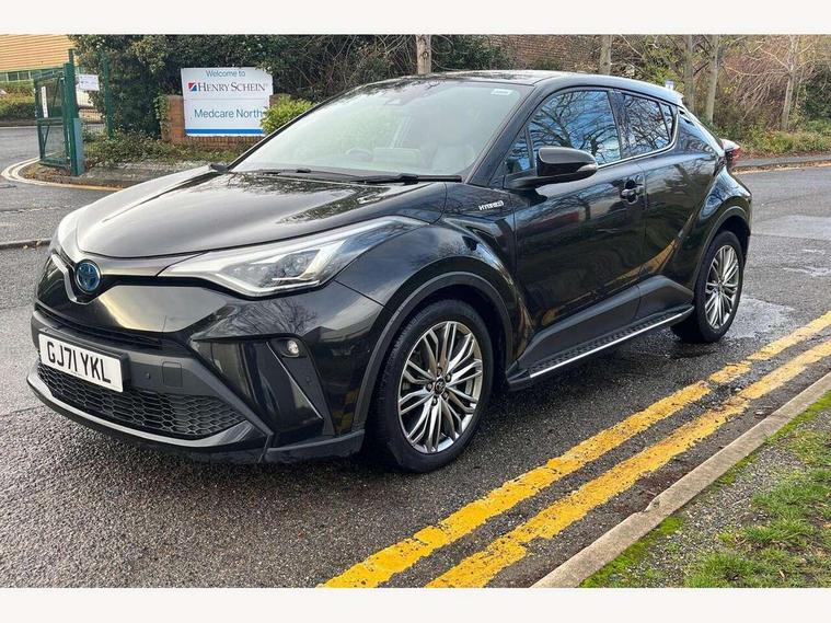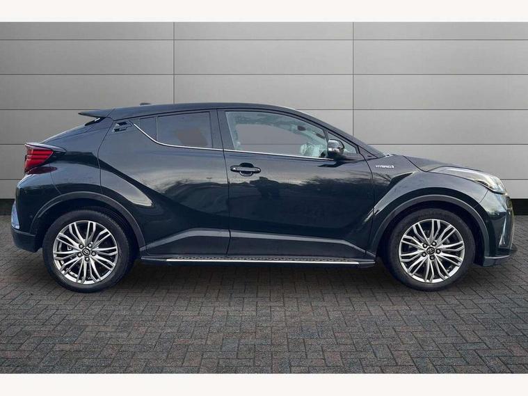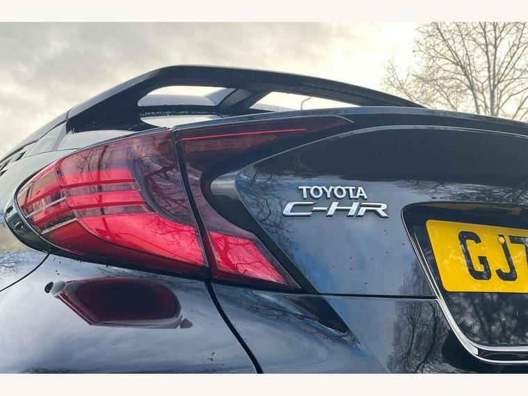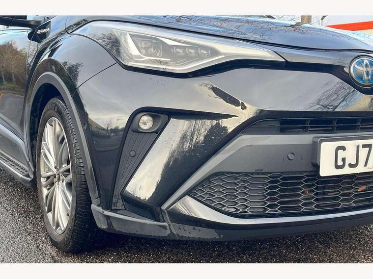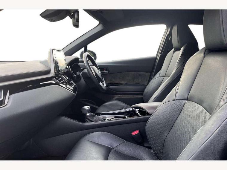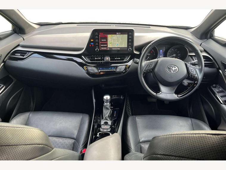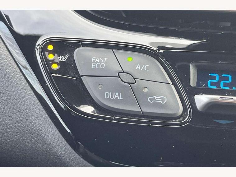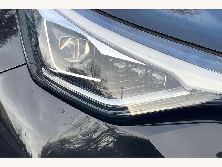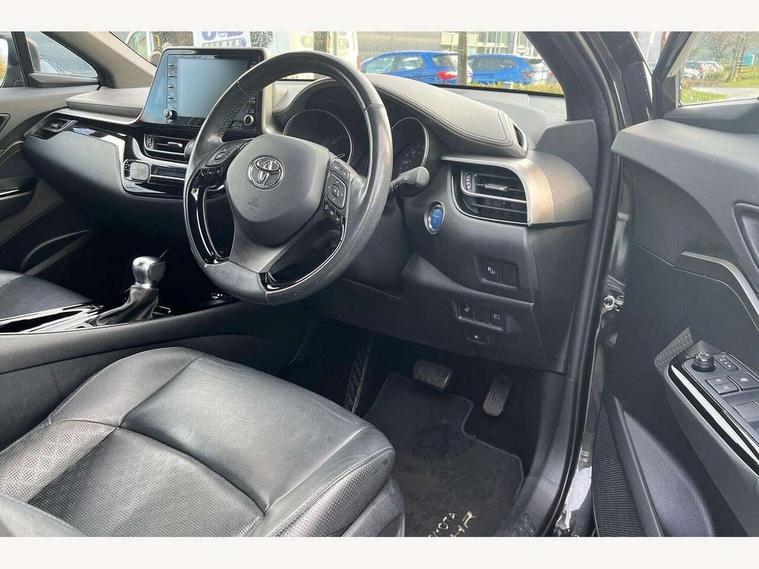 4.2" coloured TFT screen for multi-information display, Adaptive cruise control, Bluetooth connectivity, Electric power steering, Hybrid system indicator, Lane departure alert with steering control, Remote boot door release in cabin, Remote boot door release in key, Reversing camera, Road sign assist - RSA, Simple Intelligent parking assist, Touch 2 Go navigation system, Trip computer, Voice recognition, Vehicle Stability Control (VSC), 6 speakers, AM/FM radio, DAB Radio (Digital Audio Broadcasting), Toyota touch 2 multimedia system with 8" display, USB connector, Wi-fi connectivity, Adaptive front light system, Adaptive LED Headlights, Anti-jam protection on power windows, Auto high beam, Auto up and down function on all power windows, Automatic headlight levelling, Automatic headlights, Automatic headlights cut-off, Black and body coloured rear bumper, Black upper front grille, Body colour door handles, Body colour door mirrors, Body colour front spoiler lip, Body coloured front bumper, Boot door release with push button, Electric heated door mirrors, Follow me home headlights, Front and rear power windows, Hard tonneau cover, Honeycomb lower front grille, LED daytime running lights, LED fog lights, LED front light guide, LED High mounted stop light, LED rear brake lights, LED rear combination lights, Noise reduction layer on front windows and windscreen, Power adjustable door mirrors, Privacy glass, Rear sequential indicators, Rear spoiler, Rear tailgate, Rear window defogger, Rear window wiper, Shark fin antenna, UV-filter on driver and passenger windows, UV-filter on rear windows, 12v power outlet - front, 3 rear headrests, 3 spoke leather steering wheel, 60/40 split folding rear seat, Adjustable rear headrests, Adjustable speed limiter switch on steering wheel, Assist grips front and centre pillar, Audio and telephone switches on steering wheel, Black front door assist grips, Blue ambient lighting on front cup holders, Blue ambient lighting on front doors, Boot light, Chrome interior door handles, Driver and front passenger personal light, Driver and front passenger Whiplash Injury Lessening seats, Driver and passenger seatback pockets, Dual zone automatic air conditioning, Floor mats, Front cupholders, Front head restraints, Front sports seats, Glovebox with internal light, Heated driver and front passenger seats, Heated steering wheel, Hooks for luggage holding net, Humidifying Nanoe air purifier, Illuminated entry system, Isofix attachments on rear seats, Leather gearshift, Light on driver sun visor, Light on passenger sun visor, Manual telescopic steering wheel, Manual tilt steering wheel, Microphone on front personal light, Mirror on driver sun visor, Mirror on passenger sun visor, Multimedia switches on steering wheel, Pollen filter, Power adjustable lumbar support on driver seat, Power tilting cushion on driver seat, Shopping bag hooks, Slow opening on lower glovebox, Voice recognition switch on steering wheel, Leather pack - C-HR, Tech with parking sensor pack - C-HR, 16 Disk front wheel brake, 3x3 point rear seatbelts, ABS+EBD+Brake assist, Electronic parking brake, Front and rear seatbelt reminder, Front passenger airbag on/off switch, Hill start assist control (HAC), Pre collision system with pedestrian detection, Pre-tensioners and force limiters, Rear door child safety locks, SRS Airbags - Driver + Front passenger, front side, front and rear curtain and driver's knee airbags, Toyota safety sense, Tyre pressure monitoring system, Acoustic vehicle alert system (AVAS), Glass-breaking alarm sensors, Immobiliser, Intrusion alarm, Intrusion sensor, Motion sensor alarm, Power door locks, Power passenger window lock, Remote central locking, Black lower dashboard, Dark brown upper dashboard, Piano black console, Silver deco line on upper dashboard, Tyre repair kit,