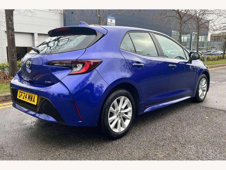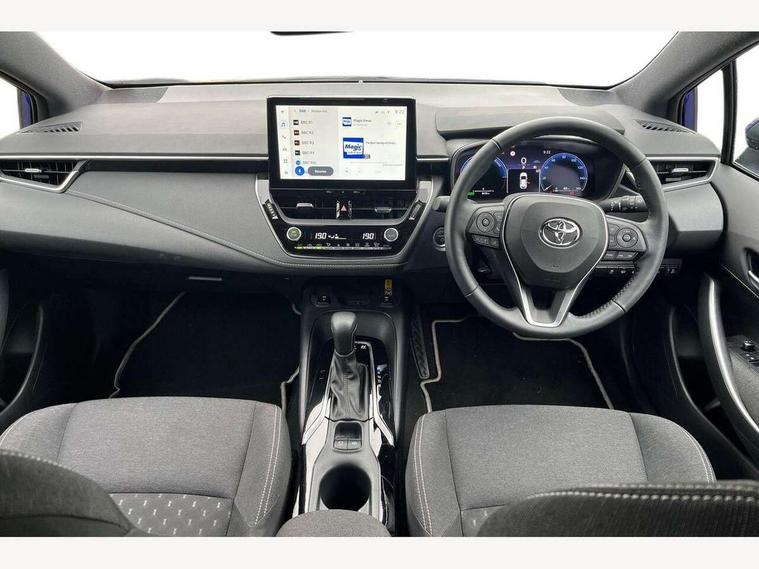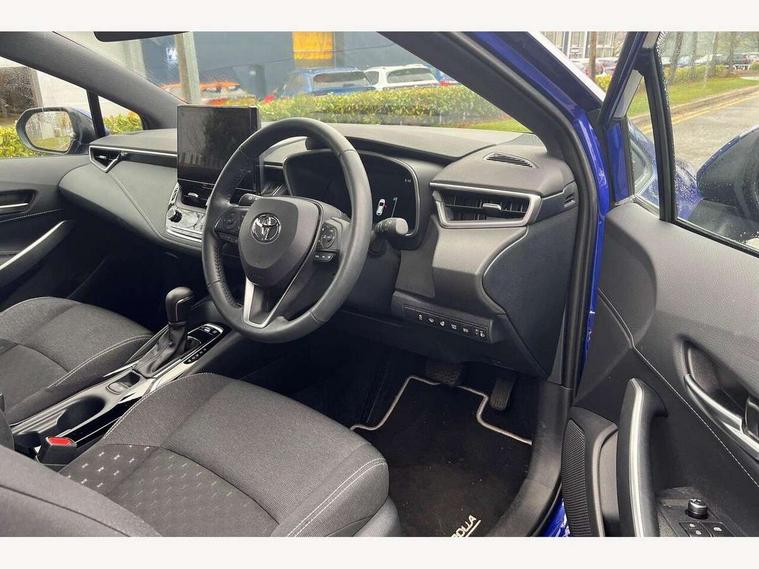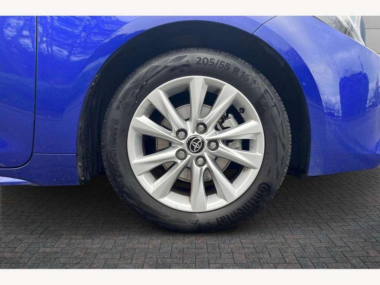 10.5" Multimedia display screen, Bluetooth telephone connectivity, Connected car functionality upgrade, tracker, remote status and e-care, Drive mode select (Eco, Normal), E-call, Electrically assisted power steering, EV drive indicator, Front and rear parking sensors with auto brake, Full Digital 12.3" TFT Digital Combimeter, Key reminder warning, Lane Departure Alert (LDA) switch on steering wheel, Memory on adjustable speed limiter, MyT connected services, Proactive driving assist (PDA), Reversing camera, Smart entry and push button start, Smartphone integration with Apple CarPlay and wired android auto, Tailgate, Toyota remote services, Toyota smart connect navigation, Wireless charger, Gasoline particulate filter, Vehicle Stability Control (VSC), 6 speakers, AM/FM radio, DAB Digital radio, Front USB-C in dashboard, Smart voice assist/ Voice recognition, USB and Aux in connectors + 12V front outlet, Anti-jam protection on power windows, Auto up and down function on all power windows, Automatic headlights with high beam assist, Black centre and side air vents, Black meshed front grille, Black toyota logo in front, Body coloured bumpers, Body coloured door mirrors, Body coloured front spoiler, Body coloured outside door handles, Body coloured rear under guard, COROLLA alloy door scuff plates, Follow me home headlights, LED daytime running lights, LED front fog lights, LED High mounted stop light, LED multi beam headlights, LED multi reflector in headlights, LED rear combi lights with LED lightguide, Manual day/night rear view mirror, Manual headlight levelling system, New grille pattern, Noise reduction layer on windscreen, Piano black diffuser, Power adjustable heated door mirrors, Power front windows, Power rear windows, Rain sensor, Rear side wing doors, Rear window defogger, Rear window wiper, Satin chrome insert on front air vents, Satin chrome insert on front door assist grips, Shark fin antenna, Time adjustment on intermittent wiper, Turning signal integrated indicators in door mirrors, Unique lower skirt, Unique side rocker with black insert, UV-filter on driver and passenger windows, 2 Shopping bag hooks in luggage compartment, 3 rear headrests, 3 seat bench in 2nd row, 3 spoke leather steering wheel with satin insert + gear knob, 4 tie down hooks in luggage compartment, 60/40 split folding rear seat, Adaptive cruise control (ACC) switch on steering wheel, Adjustable speed limiter switch on steering wheel, Audio, multimedia and telephone switches on steering wheel, Black armrest on centre console box, Black gear shift console, Boot light, Centre room light, Driver and front passenger personal light, Driver and passenger assist grip, Driver and passenger sun visor with mirror and light, Dual zone automatic air conditioning with ECO mode switch, Fabric upholstery, Front and rear cup and bottle holders, Front door pockets, Front head restraints, Front passenger seat, Front sliding fabric armrest, Heated seats, Illuminated entry system in room lamp, ISOFIX seat fixing (2 fixings on rear outer seats), Leather gear shift with satin chrome on gear shift console, Manual height adjustable for driver and front passenger seat, Manually tilt with sliding driver and front passenger seat, Parcel shelf, Passenger seat back pocket, Pollen filter, Power adjustable lumbar support on driver seat, Power window switches with satin chrome inserts, Rear armrest with 2 cupholders, Rear passenger coat hooks (2), Remote air conditioning, Satin chrome inside door handles, Satin chrome surround on heater control panel, Satin chrome surround on speedometer, Sliding armrest on centre console box, Slow opening glovebox with lights, Textile floor mats, Tilt/telescopic steering column, Voice recognition switch on steering wheel, Whiplash Injury Lessening (WIL) feature (active headrest) for seats, Toyota safety sense 3 pack - Corolla, 3x3 point rear seatbelts, Adjustable driver and front passenger seat belt extender to top anchor point, Anti lock braking system + Electronic brake force distribution, Brake assist function, Child locks on rear doors, Downhill Assist Control (DAC), Electronic parking brake, Emergency brake light signal (EBS), Front passenger airbag on/off switch, Front seatbelt reminder, HAC - Hill start assist control, Rear seat belt reminder, Seatbelt pretensioners and force limiters, Supplemental restraint system (SRS) 7 airbags - dual driver, dual side curtain, side impact and driver knee airbags, Traction control, Tyre pressure warning system, Acoustic vehicle alert system (AVAS), Alarm with motion sensor and immobilizer, Power passenger window lock, Remote central locking + deadlocks, Satin chrome dash trim, Soft touch texture on upper dashboard, Stitching on lower dashboard, 16" 5 double spoke alloy wheels, Tyre repair kit, Unique wheel finish with red wheel cap,