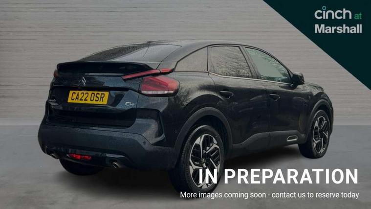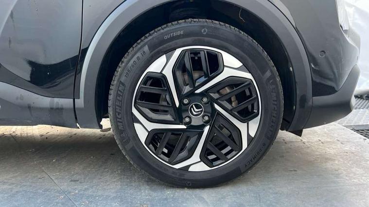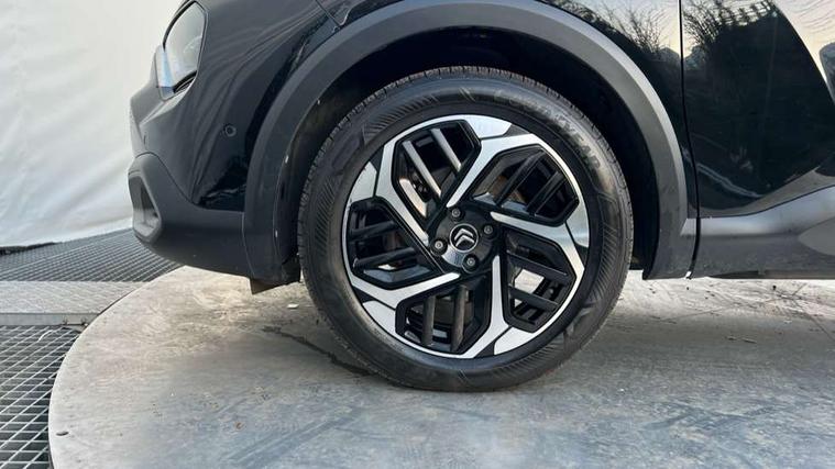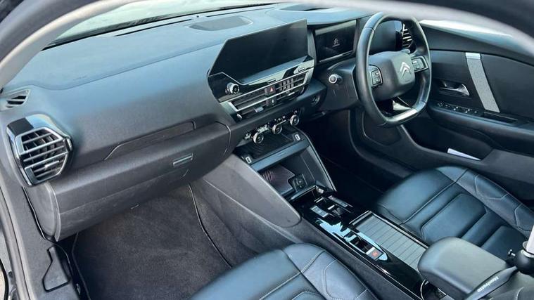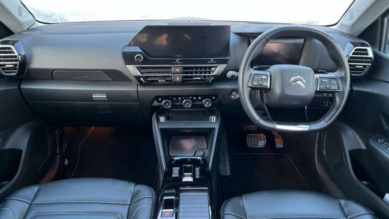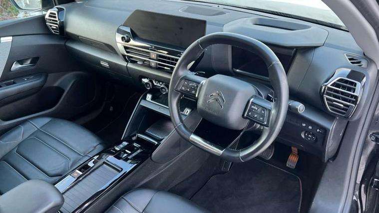 10" high resolution touchscreen user interface, controlling media, connectivity and vehicle settings, 5.5 inch backlit full TFT driver's instrument cluster with LED ambient lighting, Active blind spot detection, Apple car play and Android auto, Citroen connect box emergency and assistance system, Citroen connect nav with real time traffic and speedcam, Driver's head-up display, Electronic Power Steering (EPS), In-crash braking, Speed limiter, Tailgate, Voice commands, Wireless smartphone charging, Advanced comfort suspension - double hydraulic stops on front suspension and single on rear suspension, Auxiliary input socket, Bluetooth telephone and audio streaming, Citroen Hifi system with 1 speaker in dashboard centre, 4 woofers in doors, 2 tweeters in pillars and 1 subwoofer, DAB Digital radio, 3rd brake light, Body colour bumpers, Body colour door handles, Body colour painted external rear view mirrors, Body coloured door mirrors, Boot spoiler, Dark tinted rear windows and side windows with chrome detail, Electrically heated, folding and adjustable external rear view mirrors with courtesy lighting, Electrochrome interior rear-view mirror with automatic day-night switching, Front and rear electric windows, Gloss black rear skirt, Intelligent beam headlights, LED daytime running lights in V signature, LED front fog lamps with static cornering function, LED front headlamps, Rain sensing automatic front windscreen wipers, Rear side wing doors, Rear wiper, Roof aerial, Welcome and goodbye lighting, 12V power outlet, 1x USB Type-C socket & data connection, 1x USB Type-A socket at 1st row + 1x USB Type-A socket , 1x USB Type-C socket in 2nd row, 3 rear headrests, 3 seat bench in 2nd row, Boot light, Dashboard tray in front cabin, Deluxe leather steering wheel with two command blocks, Driver and passenger sunvisors with illuminated vanity mirrors, Dual zone automatic air conditioning, Electrically heated front seats, Fitted carpet mats, Front and rear LED interior lighting, Front head restraints, Height adjustable front passenger seat, Height and reach adjustable steering wheel, Map pockets in rear of front seats, Raised centre console with armrest and two cup holders, Rear central folding armrest with cupholders and ski hatch, Single front passenger seat, Split folding rear seats, Two position boot floor, High level acoustic insulation pack - C4/C4 X/e-C4 X, Hype black interior ambience with Siena leather and leather effect textile seats pack - C4 Shine plus/e-series, Safety plus pack with highway driver assist - C4/C4 X/e-C4 X, 3x3 point rear seatbelts, ABS, Driver and front passenger airbags, Electric parking brake, ESP, Front seatbelt pretensioners, Hill start assist, Manual child lock in second row, Manual deactivation of front passenger airbag, Post collision safety brake, Row 1 and 2 curtain airbags, Row 1 side thorax airbags, Seatbelt unfastened on the move warning, Tyre underinflation detection, Anti-theft alarm (volumetric protection), Immobiliser, Keyless entry and start, Remote locking with deadlocks, 18" Bi-tone diamond-cut aeroblade alloy wheels with anti-theft locking wheel nuts, Puncture repair kit with compressor,