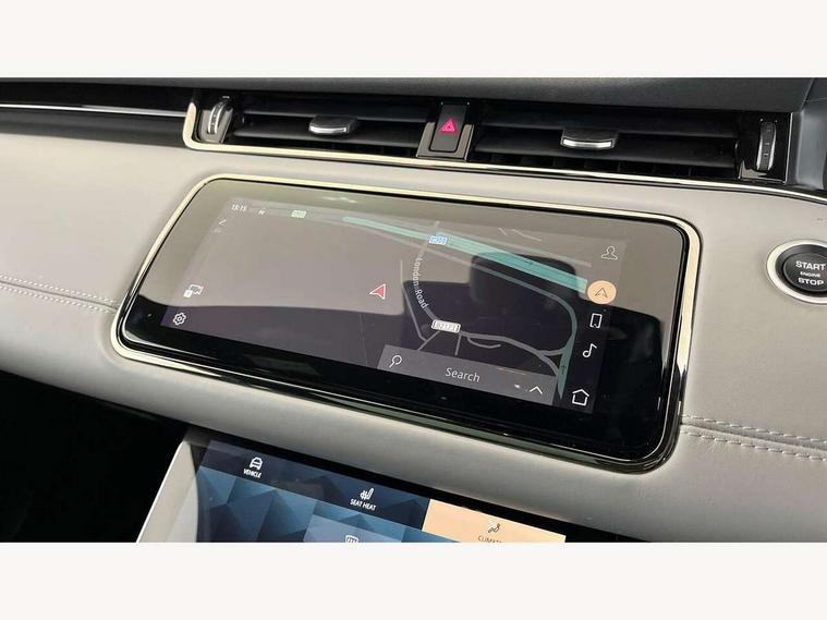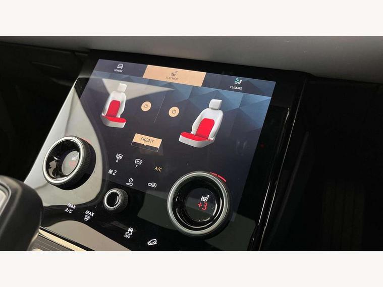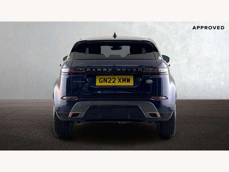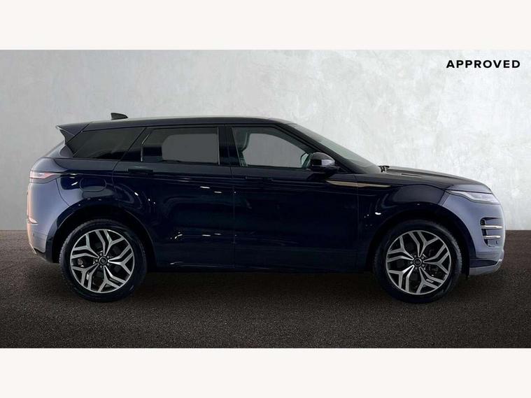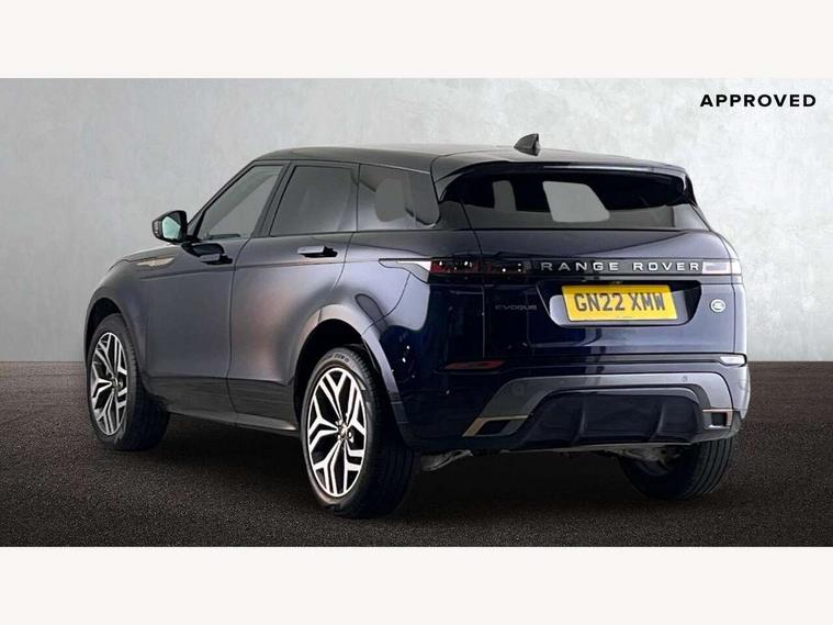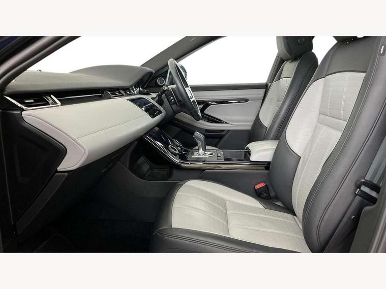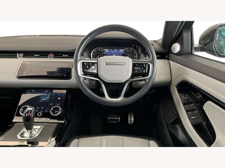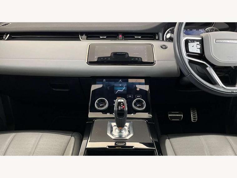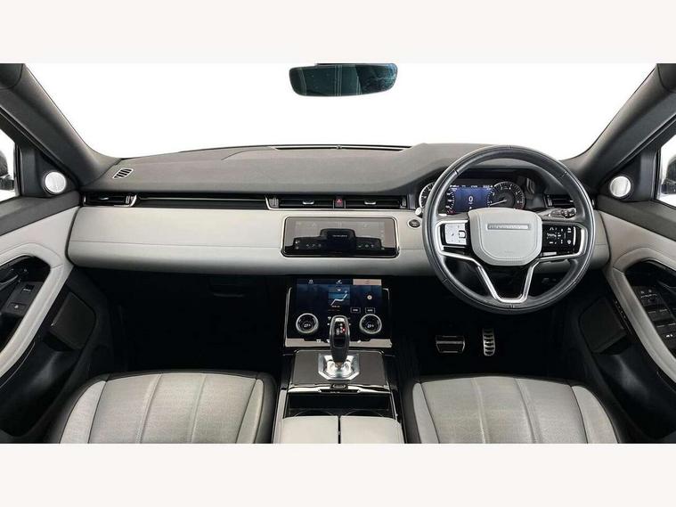 10" deployable touchscreen with lower touchscreen, Adaptive cruise control, Android Auto, Apple car play, Blind spot assist, Bluetooth connectivity, Brake pad wear indicator warning light, Clear exit monitor, Driver condition monitor, eCall emergency system, Electronic power assisted steering (EPAS), Front and rear parking aid, InControl remote, Land Rover InControl apps, Lane keep assist, Pivi pro connected includes upgraded infotainment, connected navigation pro, Nuance speech licence, Push button starter, Rear collision monitor, Rear traffic monitor, Traffic sign recognition with adaptive speed limiter, Voice control system, All terrain progress control, Configurable dynamics, Efficient Driveline, Large fuel tank, Passive suspension, Terrain Response 2 Auto, Digital Audio Broadcast radio-DAB, Meridian surround sound system with 650W subwoofer and 14 speakers, Steering wheel mounted controls, Auto headlights, Automatic headlight levelling, Electric windows with one touch open/close and anti trap, Evoque and R-Dynamic badge, Flush deployable exterior door handles, Heated rear window with timer, Heated washer jets, Heated windscreen, Power fold, auto-dimming, heated door mirrors with approach lights and auto dimming driver side, Rain sensing windscreen wipers, Rear fog lights, Rear side wing doors, Rear wiper, Tailgate spoiler, Third brake light, 40:20:40 split folding rear seats with centre headrest and armrest, Ambient interior lighting, Bright metal pedals, Heated steering wheel, Isofix system on outer rear seats, Overhead lighting console, Overhead stowage for sunglasses, Passive front head restraints, Perforated full leather steering wheel, Rear air vents, Rear centre headrest, Rear head restraints, Satin chrome gearshift paddles, Single passenger seat, Sunvisors with illuminated vanity mirrors, Twin sliding front centre armrest, 3 rear 3 point seatbelts, Anti-lock braking system (ABS), Customer configurable autolock, DSC - Dynamic Stability Control, Electronic brake force distribution, Electronic parking brake, Electronic traction control, Emergency braking, Front and rear seatbelt reminder, Hill descent control, Hill launch assist, Low traction launch, Power operated child locks, Roll stability control, Six airbags - Driver and passenger airbags/driver knee airbag/front side airbag and curtain airbags, Torque vectoring brake, Tyre pressure monitoring system, Alarm, Immobiliser, Intrusion sensor, Keyless entry, Locking wheel nuts,
