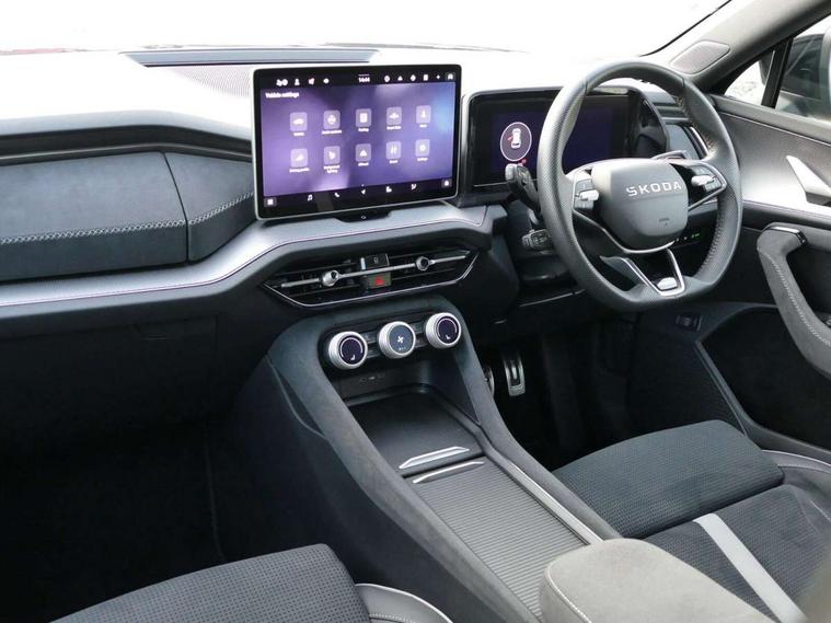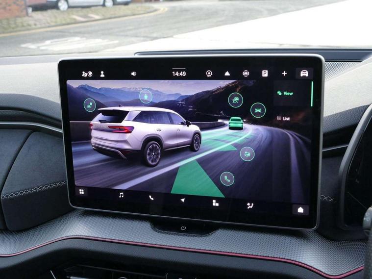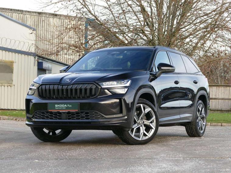 13" satellite navigation touchscreen display, Blind spot detection with door exit warning, Bluetooth system, ChatGPT functionality, Driver alert - Fatigue and drowsiness monitor, Dry display cleaner, Emergency call, Front and rear parking sensors, Front cross traffic assist, Lane assist, Off road modes, PAS, Rear traffic assist, Tailgate unlocking from outside, Traffic sign recognition, USB C Port x 2 in front centre console, Virtual Cockpit - 10.25" digital display, Voice control system, Wireless charging for two smartphones (15W) with cooling function, Wireless SmartLink for Apple CarPlay and Android Auto, Stop/start function, 2x USB-C in the rear, DAB Digital radio, Aero front windscreen wipers with intermittent function, Auto dimming rear view mirror, AWL (all weather lighting) and all weather light with cornering function, Black diffuser and decorative tailpipe with a unique dark chrome finish, Black roof rails, Black sports styling including front grille and window surrounds, Black wheel arch surrounds, Body colour door handles, Cornering light and poor weather light, Electric folding /adjustable/separted heated/folding door mirrors, auto dimming with boarding sports and memory function, Electric front and rear windows, Exterior black decorative trims, Front and rear sports bumpers including lower rear chrome strip, Gloss black door mirrors, Gloss black window frame and D pillar, Heat insulating glass in windshield, Heated rear window, Ice scraper in fuel tank cap, LED daytime running lights, LED third brake light in rear spoiler, Light assistant with automatic headlight control and coming home feature, Logo projection in door mirrors, Privacy glass, Rear roof spoiler, Rear side wing doors, Rear window wiper, Red decorative strip between rear LED lights, Safety reflectors on front and rear doors, Sportline badge on front fenders, Tailgate lettering in Black, Unique dark chrome design logo on alloy wheels, Window control switches with black trim, Windscreen wipers with rain sensor, Without engine designation, 1.5l bottle holder points in all door, 1x centre rear reading light, 2 seat bench in 3rd row, 3 configurable smart dials with 32mm coloured display, 3 seat bench in 2nd row, 4 foldable roof handles with rear coat hooks, Aluminium pedals, Ambient interior lighting - Dashboard, front-door stowage compartments, front and rear door panels and footwell lighting, Automatic gear selector on steering column, Chrome interior door handles, Driver/front passenger reading lights, Fabric headlining, Fixed bench 40:60:40 split folding backrests, Front and rear floor mats, Front centre armrest with jumbo box storage compartment, cup holder and 12V socket, Front sport seats, Height adjustable front headrests, Interior black decorative trims, Isofix child seat fittings in outer middle row rear seats and front passenger with top tether, Manually adjustable steering column, Pollen filter, Rear centre armrest with cupholders, Rear seat boot backrest release, Single front passenger seat, Skoda lettering on steering wheel, Storage pocket including mobile phone pockets on the backs of the front seats, Sunvisors with illuminated vanity mirrors, Three rear height adjustable headrests, Ticket holder on A Pillar, Tri zone climate control, Umbrella in door panel x1 made from sustainable materials, Upper and lower glovebox with card holder and coin compartment, USB C port by rear view mirror for charging only (15W), Acoustic package - Kodiaq, Performance package - Kodiaq, Sportline design selection pack - Kodiaq, Auto door release and activation of warning lights in the event of an accident, Driver and front passenger airbag with knee airbag and front passenger airbag deactivation, Electric child locks, Electronic parking brake, ESC (incl. ABS+EMD+MSR+ASR+EDL+HBA+DSR+RBS+ESBS+MCB+TSA+XDS), Front assist with braking reaction to vehicles, pedestrians and cyclists, Front disc brakes, Fuel cut off safety device, Height adjustable front 3 point seatbelts + pretensioners, Hill hold assist, Junction assist with automatic emergency braking, Rear disc brakes, Safety vest holder in door, Seat belt reminder for all seats, Three point rear seat belts, Two tone horn, Tyre pressure monitor, Alarm with interior monitoring and tilt sensor with safe function, Anti-theft wheel bolts, Immobiliser, Remote central locking with 2 keys, 20" Rila anthacite polished alloy wheel with black matte aero covers,
