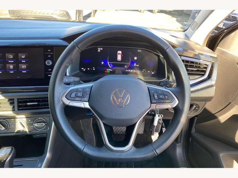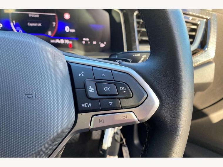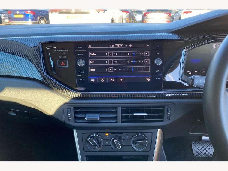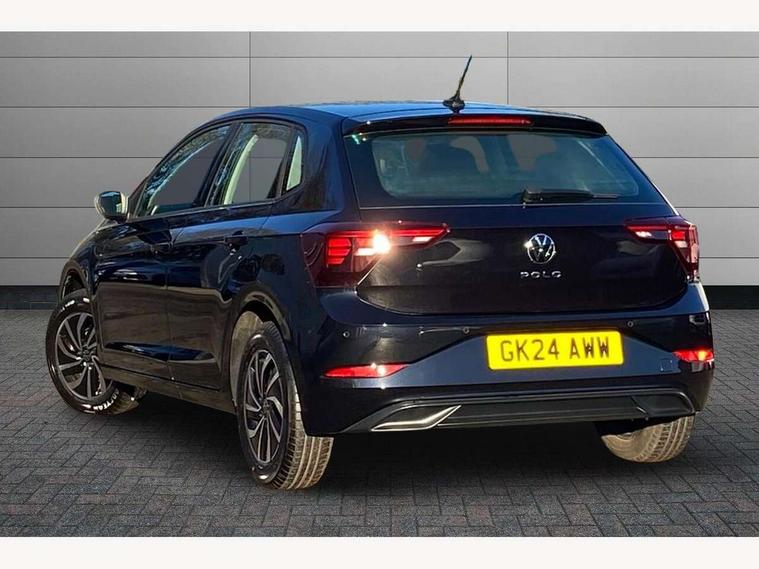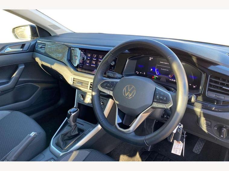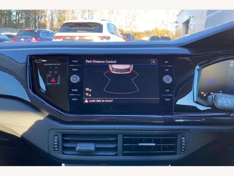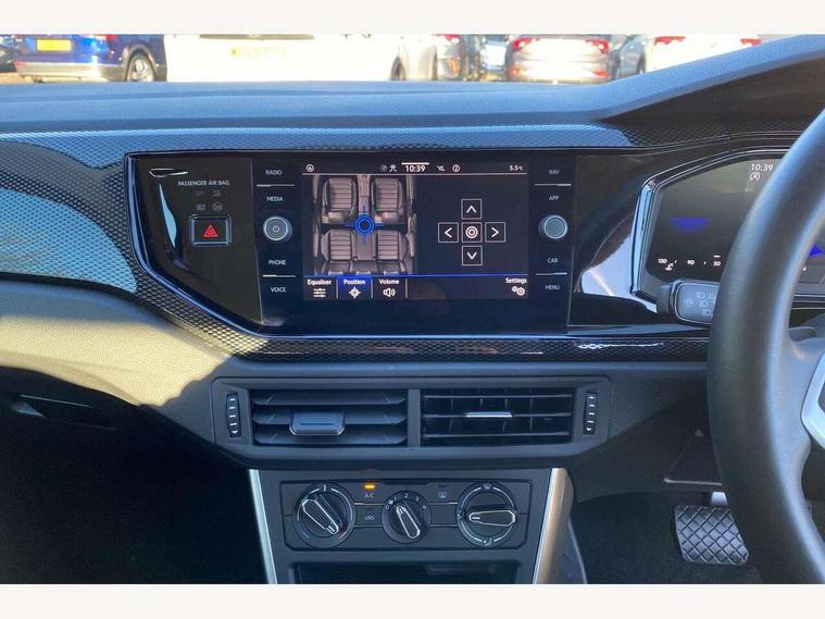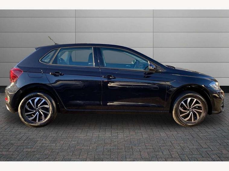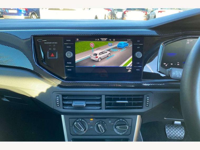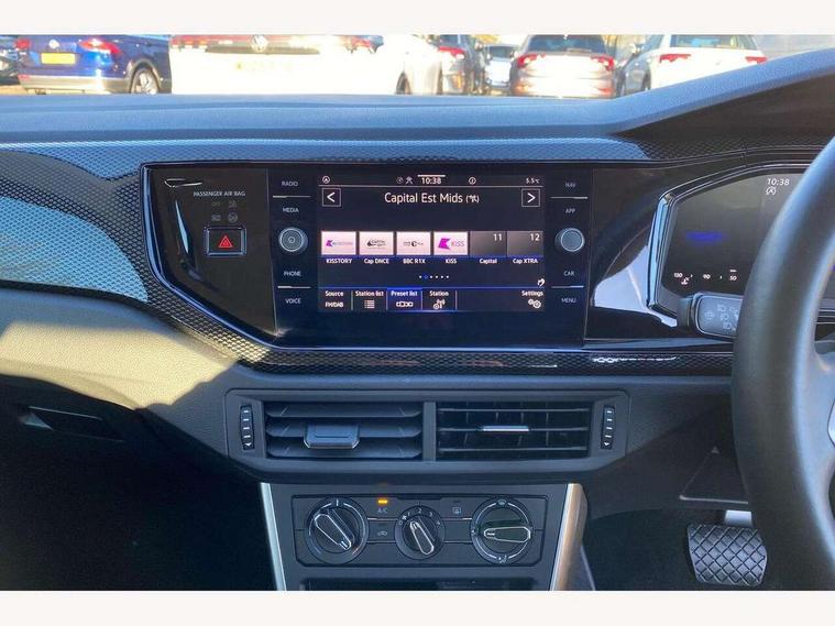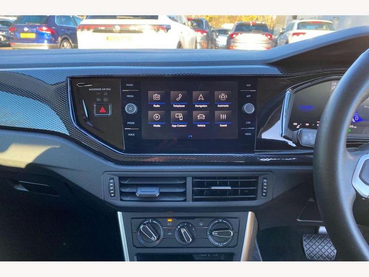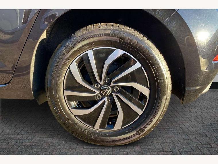 Adaptive cruise control with follow-to-stop and speed limiter, Advanced driver attention and drowsiness monitor, Bluetooth mobile phone interface, Dynamic road sign display, Emergency call service, Power assisted speed sensitive steering, Preparation for navigation system with media and internet package, Preparation for We connect and We connect plus, Speedo and rev counter, electronic odometer, trip, service interval display and exterior temperature gauge, Standard rear axle, Travel Assist - Lane keeping system and traffic jam assist, Travel assist including emergency assist, Trip computer, Warning signal and warning light for front and rear seatbelts not fastened, Washer fluid level indicator, Wireless app connect, Front wheel drive, Rear shock absorpion, Start-stop system with battery regeneration (recuperation - energy recovery during braking), DAB Digital radio, Diversity antenna for FM reception, Automatic dimming interior rear view mirror, Automatic headlight control with LED separate daytime running lights with coming/leaving home function, Body colour bumpers with chrome inserts, Body colour door handles, Body colour door mirrors, Electric front windows, Engine badge deletion, Headlight range adjustment, Heat insulating and laminated safety glass windshield, Heat insulating darkened glass in side and rear windows, Heat insulating glass windscreen, LED Headlights, LED rear combination lamps, Power folding adjustable/heated exterior mirrors and front passenger exterior mirror lowering function, Rain sensor, Rear electric windows, Rear fog light, Rear side wing doors, Rear windscreen washer and wiper with interval delay, Third brake light, 12V power socket in centre console, 2 front and 2 rear reading lights with switch off delay and dimmer, 2 USB-C ports in the front, 2 USB-C charging sockets on the center console in the rear, 3 rear head restraints, 60/40 split folding rear seat and rear seat bench not split, Ceramique roof lining, Chrome plated radiator grille inserts, air vent surrounds and light switch surrounds, Door and side trim panel, Driver and front passenger seat height adjustment, Driver/passenger sunvisors with illuminated vanity mirrors, Front centre armrest, Front seat backrest storage pockets, Front standard seats, Handbrake lever handle in leather, Hartley/Thomas cloth upholstery, Headliner in recycled material, Isofix child seat preparation easy-fit (for two outer rear seats, and front passenger seat) compatible with I-size, Leather trimmed gear knob, Luggage compartment cover, Luggage compartment lighting, Removable luggage compartment floor, Single front passenger seat, Standard climatic zones, Standard pedal cluster, Three spoke leather wrapped multifunction steering wheel with shifting paddles, Light and vision pack - Polo, 3 point height adj front seatbelts + pretensioners, 3x3 point rear seatbelts, ABS, Driver and front passenger airbag with front passenger airbag deactivation, Drivers and front passengers safety optimised head restraints, ESC (Electronic stability control) + EDL (Electronic Differntial lock) and ASR (Traction control), Extended and predictive pedestrian/ cyclist protection, Front assist with autonomous emergency braking (for Adaptive Cruise Control ACC up to 130 mph), Front curtain and side airbags with center airbag, Front disc brakes, Hill hold control, Manual child lock in rear doors, Rear drum brakes, Single tone horn, Tyre pressure loss indicator, Alarm with interior protection, Anti-theft alarm system with interior monitoring, backup horn, and towing protection, Anti-theft wheel bolts, Electronic engine immobiliser, Lava stone black gloss/matt decorative inserts in dash and front door panels, Low rolling resistance tyres,