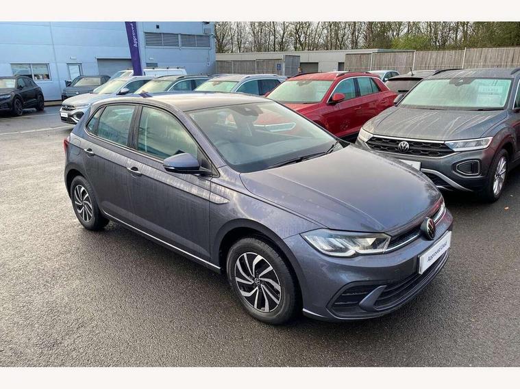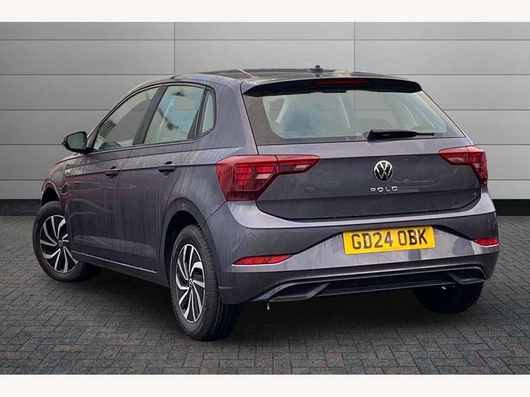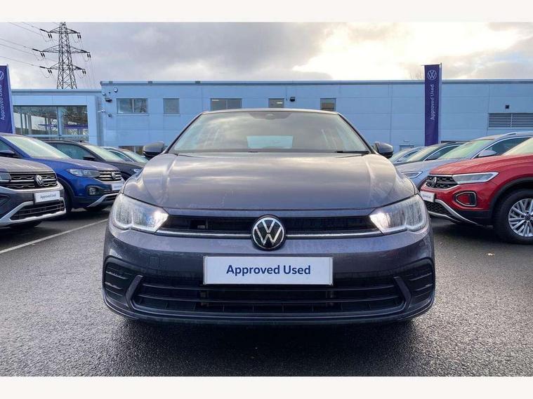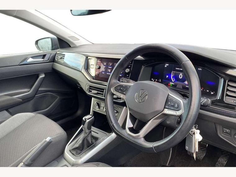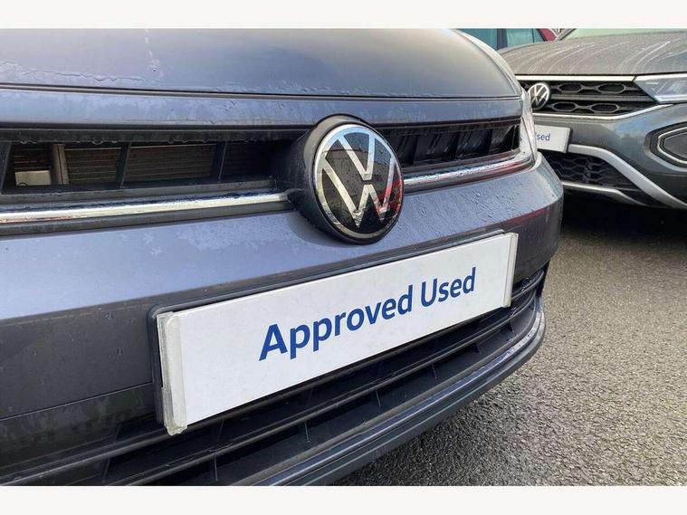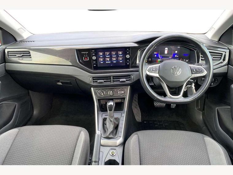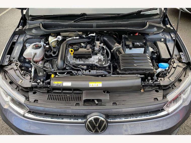 Adaptive cruise control with follow-to-stop and speed limiter, Advanced driver attention and drowsiness monitor, Bluetooth mobile phone interface, Dynamic road sign display, Emergency call service, Power assisted speed sensitive steering, Preparation for navigation system with media and internet package, Preparation for We connect and We connect plus, Speedo and rev counter, electronic odometer, trip, service interval display and exterior temperature gauge, Standard rear axle, Travel Assist - Lane keeping system and traffic jam assist, Travel assist including emergency assist, Trip computer, Warning signal and warning light for front and rear seatbelts not fastened, Washer fluid level indicator, Wireless app connect, Front wheel drive, Rear shock absorpion, Start-stop system with battery regeneration (recuperation - energy recovery during braking), DAB Digital radio, Diversity antenna for FM reception, Automatic dimming interior rear view mirror, Automatic headlight control with LED separate daytime running lights with coming/leaving home function, Body colour bumpers with chrome inserts, Body colour door handles, Body colour door mirrors, Electric front windows, Engine badge deletion, Headlight range adjustment, Heat insulating and laminated safety glass windshield, Heat insulating darkened glass in side and rear windows, Heat insulating glass windscreen, LED Headlights, LED rear combination lamps, Power folding adjustable/heated exterior mirrors and front passenger exterior mirror lowering function, Rain sensor, Rear electric windows, Rear fog light, Rear side wing doors, Rear windscreen washer and wiper with interval delay, Third brake light, 12V power socket in centre console, 2 front and 2 rear reading lights with switch off delay and dimmer, 2 USB-C ports in the front, 2 USB-C charging sockets on the center console in the rear, 3 rear head restraints, 60/40 split folding rear seat and rear seat bench not split, Ceramique roof lining, Chrome plated radiator grille inserts, air vent surrounds and light switch surrounds, Door and side trim panel, Driver and front passenger seat height adjustment, Driver/passenger sunvisors with illuminated vanity mirrors, Front centre armrest, Front seat backrest storage pockets, Front standard seats, Handbrake lever handle in leather, Hartley/Thomas cloth upholstery, Headliner in recycled material, Isofix child seat preparation easy-fit (for two outer rear seats, and front passenger seat) compatible with I-size, Leather trimmed gear knob, Luggage compartment cover, Luggage compartment lighting, Removable luggage compartment floor, Single front passenger seat, Standard climatic zones, Standard pedal cluster, Three spoke leather wrapped multifunction steering wheel with shifting paddles, Light and vision pack - Polo, 3 point height adj front seatbelts + pretensioners, 3x3 point rear seatbelts, ABS, Driver and front passenger airbag with front passenger airbag deactivation, Drivers and front passengers safety optimised head restraints, ESC (Electronic stability control) + EDL (Electronic Differntial lock) and ASR (Traction control), Extended and predictive pedestrian/ cyclist protection, Front assist with autonomous emergency braking (for Adaptive Cruise Control ACC up to 130 mph), Front curtain and side airbags with center airbag, Front disc brakes, Hill hold control, Manual child lock in rear doors, Rear drum brakes, Single tone horn, Tyre pressure loss indicator, Alarm with interior protection, Anti-theft alarm system with interior monitoring, backup horn, and towing protection, Anti-theft wheel bolts, Electronic engine immobiliser, Lava stone black gloss/matt decorative inserts in dash and front door panels, Low rolling resistance tyres,