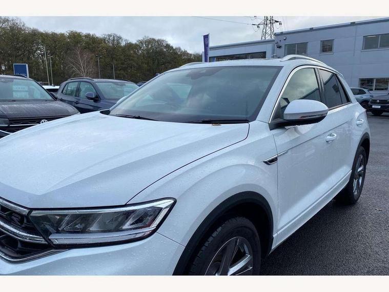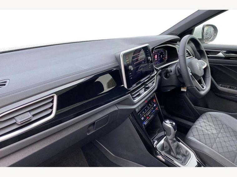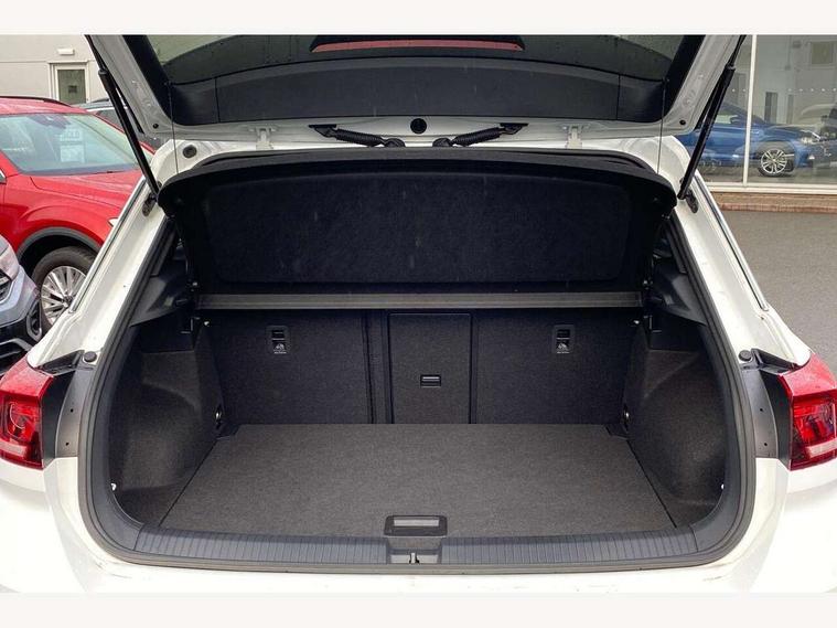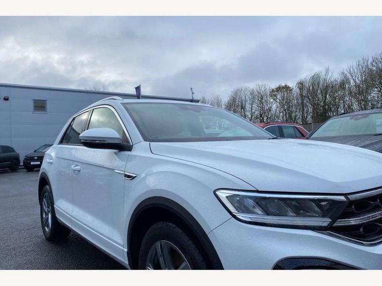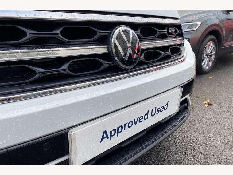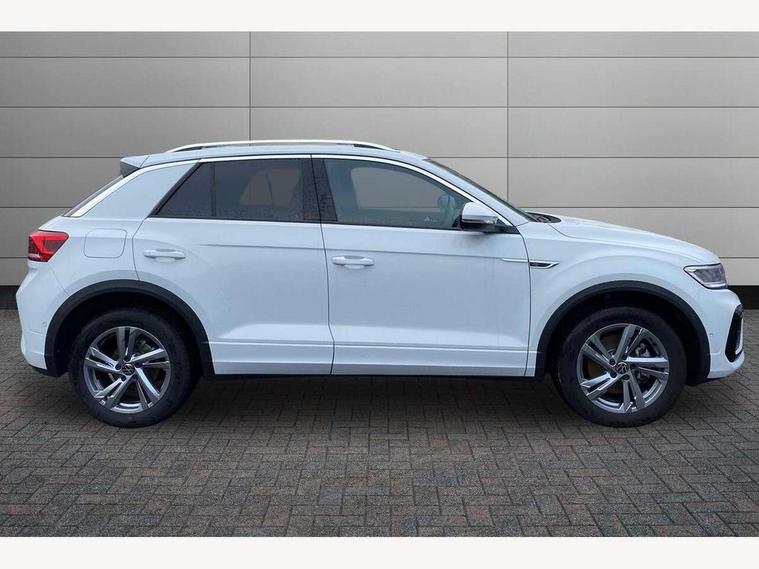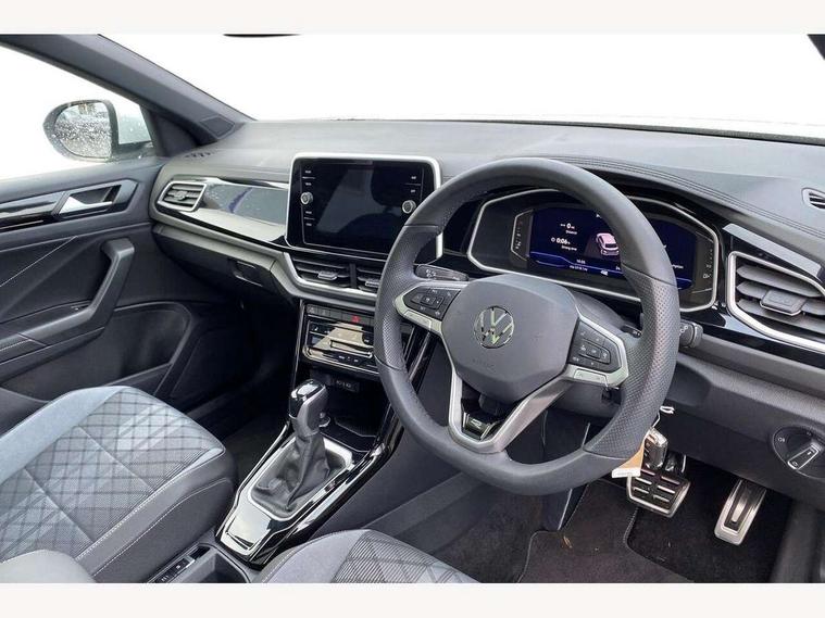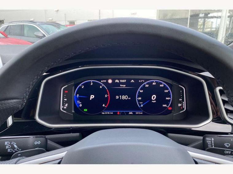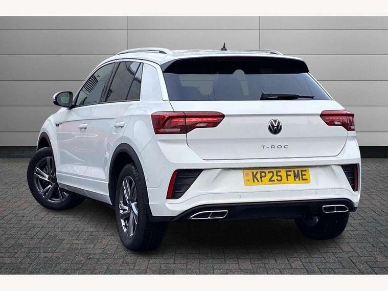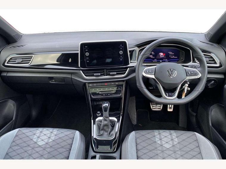 10.25" Digital cockpit pro, Advanced driver attention and drowsiness monitor, Dynamic road sign display, Emergency call service, Lane keeping system Lane Assist, Mobile phone interface, Modified key software - reduce switch off time for key status change to Long no motion, Online services, Park assist including front and rear parking sensors, Service interval indicator, Tailgate/trunk lid release from outside, Think blue trainer driver tips and journey analysis, Warning sound and light for front seatbelts unfastened, Wireless app connect, Battery regeneration during braking, Start/stop function with battery regeneration, DAB Digital radio, Diversity antenna for FM reception, Front and rear 6 speakers, Music playback - MP3, WMA and AAC files, Premium USB cable in choice of either Apple or Android smartphone compatibility, SD card slot, Simultaneous pairing of 2 compatible mobile devices, Title and cover art display, We Connect and We Connect Plus functionality, Auto dimming interior rear view mirror, Automatic hazard lights activation under emergency braking, Automatic headlight control with LED separate daytime running lights with coming/leaving home function, Body coloured exterior mirror housings and door handles, Electrically adjustable and heated door mirrors, Extended roof spoiler, Exterior mirrors aspherical on driver side, convex on front passenger side, External USB type C socket and charging sockets, Front windscreen wiper with intermittent wipe and 4 position delay, Heated rear window, LED 3rd brake light, LED rear combination lamps, LED rear number plate lights, Power windows with comfort operation and circuit breaker, Privacy glass for rear side windows and rear window, R-Line design body coloured bumpers, Rain sensor, Rear exhaust tailpipe, Rear fog light on one side and reversing lights on both sides, Rear side wing doors, Rear wash/wipe with intermittent wipe setting, Remote electrically foldable door mirrors, puddle lights and reverse activated passenger's door mirror, 12V power socket in centre console, 3 rear head restraints, 3 seat bench in 2nd row, 4 load lashing points in luggage compartment, Air care climatronic air conditoning system with active combination filter and 2-zone temperature control, Black roof lining, Chrome plated decorative trims, Chrome plated radiator grille inserts, air vent surrounds and light switch surrounds, Door and side trim panel with leatherette insert, Front + rear carpet mats, Front centre armrest, Front cupholders x 2, Front footwell illumination, Front reading light, Front scuff plates with R Line logo, Front seat back storage pockets, Glove compartment door with light, Instrument lighting, white adjustable panel illumination, Interior ambient lighting and surround lighting, Interior light delay, Isofix child seat preparation, Leather gearshift handle, Load-through provision with cup holder when folded down ('Unsplit rear seat bench, split folding backrest, with centre armrest), Luggage compartment lighting, Single front passenger seat, Stainless steel pedals, Storage compartment in left and right luggage area, Storage compartment in rear doors, Storage compartments in driver and front passenger doors, Sunvisors with illuminated vanity mirrors, Variable boot floor, height adjustable and removable, Driver assistance pack without proactive passenger protection - T-Roc, 3 point height adj front seatbelts + pretensioners, 3 point seatbelts in outer rear with ECE label, ABS, Child locks on rear doors, City emergency braking and pedestrian monitoring, Driver and front passenger airbag with front passenger airbag deactivation, Driver and front passenger safety-optimised head restraints, Drivers seatbelt reminder, Electronic parking brake, Electronic Stability Control (ESC) inc EDL (Electronic Differential Lock) and ASR (Traction Control), Front and rear passengers curtain airbag system including front side airbags, Hill start assist, Predictive pedestrian protection, Rear disc brakes, Two tone horn, Tyre pressure loss indicator, Volkswagen roadside assistance, Piano black decorative inserts in dashboard and front door trim panels, Trims for alloy wheels,