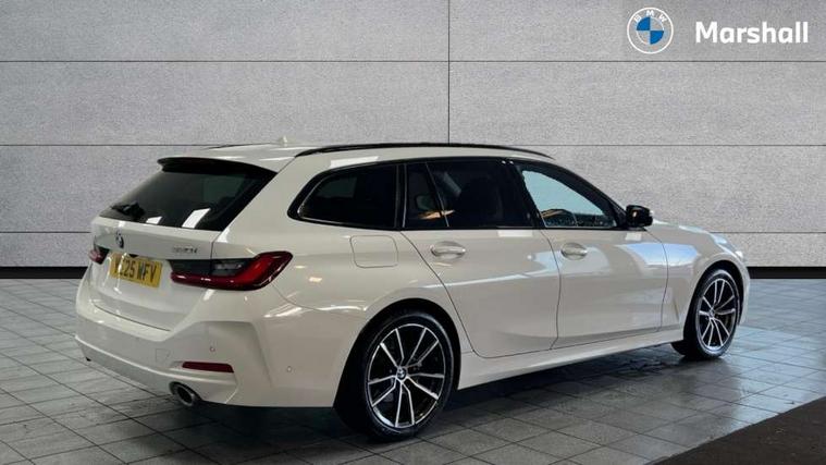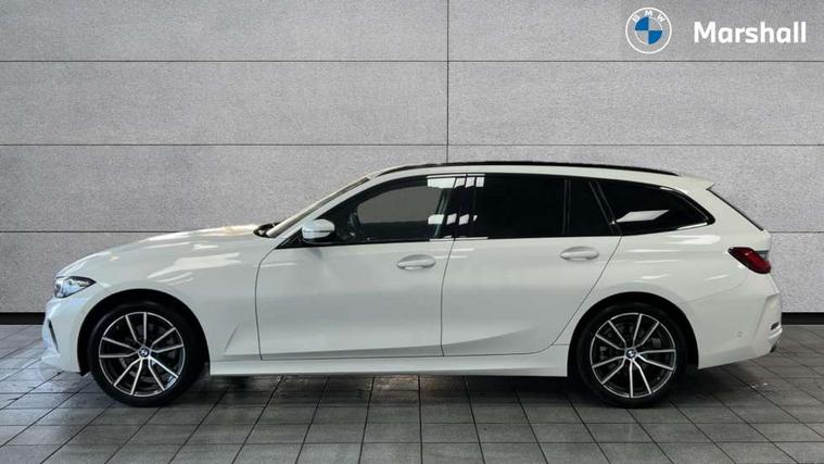 Active guard plus, Attentiveness assist, Automatic Start/stop button, Bluetooth Wi-Fi interface, BMW iDrive, BMW Teleservices, ConnectedDrive Services - last state call, Electric bootlid, Oil sensor for level and grade, PAS, Personal e-SIM, Shifting point display, Double joint spring strut front axle, Fuel tank breather system, Standard suspension, Steptronic Sport automatic transmission with steering wheel mounted gearshift paddles launch control and xtreme drive lever control, DAB tuner, 3rd brake light, Auto dimming rear view mirror, Automatic headlight beam throw control with load dependent regulating reaction, dynamic compensation of braking dive and acceleration squat, Bi-LED Low and high beam headlights, BMW emblem, engine compartment lid and tailgate, BMW radiator grille with mesh grille and end face of the nuggets in quartz silver matt, Body colour roof fin, Door sill strips, Electric windows - front and rear, with open/close fingertip control, anti-trap facility and comfort closing, Fading support, Follow me home headlight function, Front and rear bumper system with replaceable deformation elements, Front apron plastic in body colour, Fuel filler flap - right rear in body colour, Heat protection glazing on front windows and windscreen, Heated washer jets, High gloss shadow line roof rails, LED daytime running lights, LED rear lights, LED turn indicator, Licence plate panel integrated into front bumper and tailgate, M high gloss shadow line exterior trim, Matt black B-pillar finsher, Matt black window recess cover, One piece front bumper cover including towing eye cover in body colour, Radiator grille frame in chrome matt, Rain sensor with automatic headlight activation, Rear side wing doors, Rear wiper, Reversing lights, Side frame decorative moulding black matt, Trailer stabilisation logic, Visible exhaust tailpipe finisher, Welcome lights in interior and door handle area, 12V power socket in front storage compartment, 2 front cupholder in centre console with clamping elements and matt black inlay, 3 seat bench in 2nd row, 3 zone automatic air conditioning, 40:20:40 split folding rear seat with loading system, Armrest integrated in front and rear door trim + front centre console armrest, BMW ID, Cruise control operation in steering wheel, Driving experience mode switch, Folding rear centre armrest with 2 cupholders, Front and rear headrests, Front and rear velour floor mats, Front reading light, Heated front seats, Height adjustable mechanically and infinitely variable steering column, Illuminated armrest storage compartment, Illuminated glove compartment, Illuminated luggage compartment, Lashing eyelets in luggage compartment, Single front passenger seat, Sunvisors with illuminated vanity mirrors and ticket pocket, Three spoke multifunction sport leather steering wheel, Toolkit located in luggage compartment, Connected pack professional - 3 Series Saloon/Touring, Interior and exterior mirror pack - 3 Series Touring/Saloon, 3x3 point rear seatbelts, BMW emergency call, Child locks on rear doors, Crash sensor activating of airbags, Unlocking doors, hazard warning lights, interior light, safety battery terminal, Drive-off assistant, Driver and front passenger with seat occupancy detection for driver's and passenger side, Driver and passenger side airbags, body protection at side and airbags deploy from seat backrests, Dry braking, Dynamic brake control, Dynamic stability control + (DSC+) - Anti-lock Braking System (ABS) with brake assist and cornering brake control + Automatic Stability Control (ASC), Dynamic Traction Control - DTC, Electric parking brake including automatic hold function and automatic release of the parking brake when driving off, Electronic differential lock control (EDLC), Front airbag deactivation, Front airbags for driver and front passenger, Head airbags in 1st and 2nd row, head protection at side, curtain airbags open from headliner above 1st and 2nd row, Plastic fuel tank, Side impact protection, Tyre pressure sensors, Ventilated front and rear disc brakes, Warning triangle and first aid kit, Alarm system, Centre lock switch, Closing system with central locking, Electronic vehicle immobiliser, Locking wheel bolts,