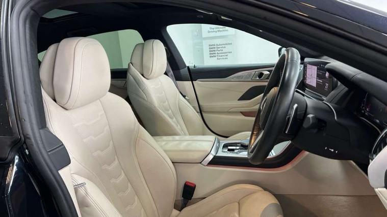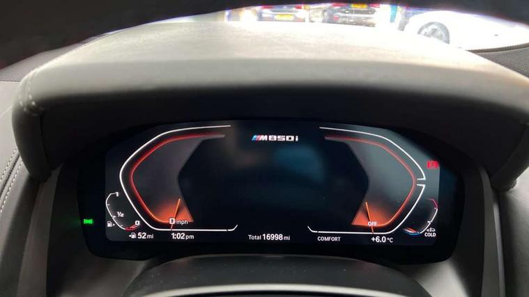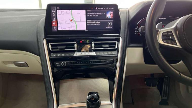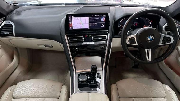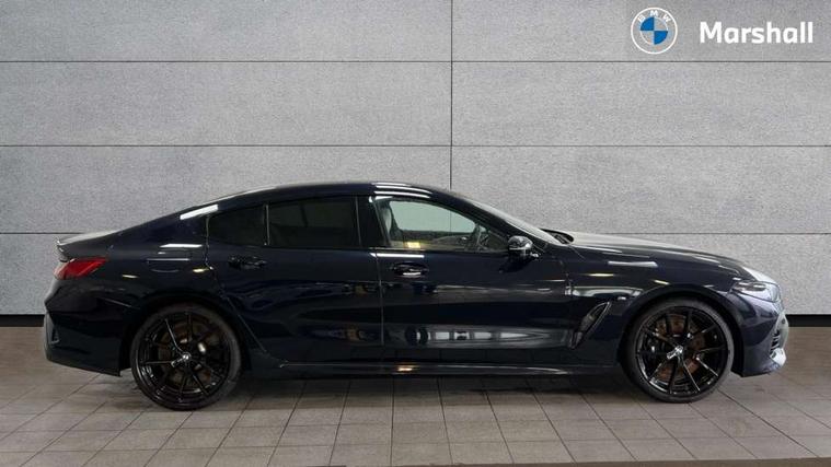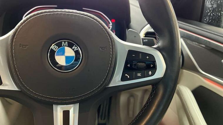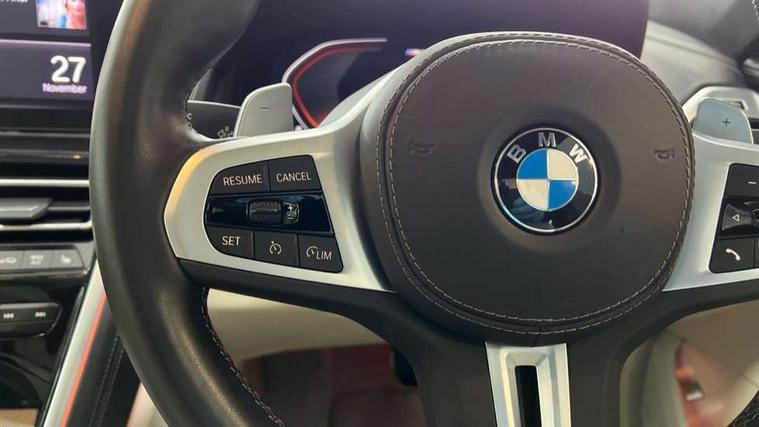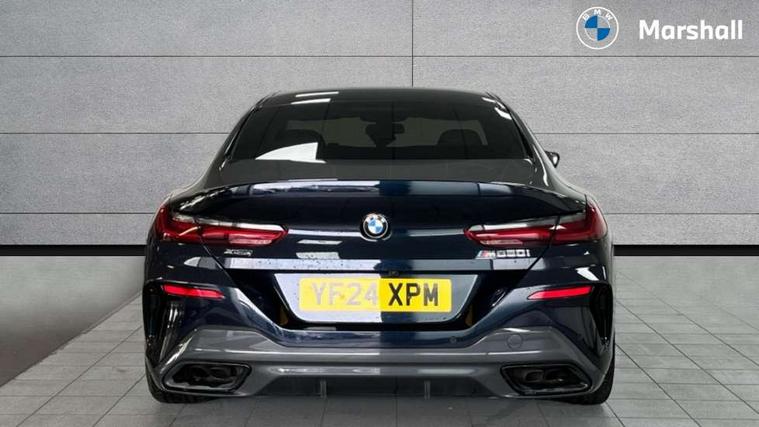 Automatic tailgate operation, remote opening with key, closing by tailgate button or remote control including tailgate in LED technology, Bluetooth hands free facility with USB audio interface, voice control and enhanced bluetooth + Wireless charging, BMW ConnectedDrive online services, BMW legal emergency call, BMW Teleservices, Brake pad wear indicator, Check control system, Condition based service, Drive experience control with Sport, Comfort, Eco Pro and Adaptive modes, Electric bootlid, Head up Display, iDrive controller with shortcut buttons, Instrument and upper door panel in walknappa leather, Integral active steering, Integrated owners handbook, Light on warning, Oil sensor for level and grade, On board computer, Outside temperature display, Run flat indicator, Service interval indicator, Servotronic system, Speed limiter, Wi-Fi hotspot, BMW xDrive system, Double wishbone front axle, Dynamic Damper Control, Eight speed sport automatic transmission, M Sport differential, Petrol Particulate Filter, Sport exhaust system, DAB Digital radio, Favourite buttons, Air breather inlay in pearl chrome, frame in black high gloss, Automatic windscreen wipers and automatic headlight, Carbon core, Climate comfort windscreen, Daytime driving lights front and rear active, Dynamic brake lights, Exterior mirrors - Floating design mirror, electric adjust/heated/folding, aspherical, Follow me home headlight function, Frameless interior mirror, Front and rear bumper system with replaceable deformation elements, Front electric windows, Front ornamental grille with kidney grille bars, Heat protection, sun protection glazing, Heated rear window, glass, Heated windscreen washer jets, High beam assistant, High gloss shadowline exterior, Illuminated door handles, Illuminated radiator grille iconic glow, LED rear lights, M emblem on front side panel in light chrome, Model logo on right tailgate, Radiator grille frame in pearl chrome, Rain sensor and automatic driving lights control, Rear boot, Rear side wing doors, Sun protection glass, Thermally insulated windscreen, Third LED technology brake light in rear window, Welcome lights in interior and door handle area, Window frame and mirror base in black high gloss, xDrive designation on left tailgate, 2 cup holders in front, 2 rear head restraints, 2 X front 12v power sockets, 3 spoke M sport leather multifunction steering wheel with shift paddle, 4 zone control automatic air conditioning, 5 seats, 50/50 split folding rear seat, Ambient light with dynamic interior light, BMW ID, Front and rear seat heating, Front centre armrest with light, 12V socket and USB and storage compartment, Front door pockets, Front entry lights doors, Front reading lights, Front sun visors with ticket holder and illuminated mirror, Interior lighting - Interior light front centre above interior mirror, luggage compartment light, automatic interior light system soft on/soft off, Lashing eyelets, Lockable glove compartment with light, Microfilter and active carbon filter, Steering column with adjustable height and length and activation via control on the steering column, Through loading function, BMW Live cockpit professional pack - 8 Series, Connected professional pack - 8 Series, Exterior items pack - 8 Series/xDrive, M Performance pack - 8 Series, M sport exterior styling aerodynamics pack - 8 Series, 3x3 point rear seatbelts, ABS/EBD, Active protection, Airbags - Driver and front passenger airbag with seat occupancy detection, knee, side and front passenger seat airbag deactivation, Brake discs, compound structure, Child locks on rear doors, Cornering brake control (CBC), Crash sensor activating central locking release, hazard warning lights, fuel cut off, interior lighting, safety battery terminal clamp and airbags, DSC - Dynamic Stability Control, Dynamic brake control, Dynamic Traction Control - DTC, Electromechanical parking brake with automatic drive away release and auto hold function, Front three point with pyrotechnical belt latch tensioner seat belts, belt force limiter and belt stopper, Head airbags for 1st and 2nd seat row, Hill start assist, Integrated brake system, ISOFIX child seat mounting for the two outer rear seats, Rear three point with pyrotechnical belt latch tensioner seat belts and belt force limiter, Side impact protection, Tyre pressure monitoring system (TPMS), Warning triangle and first aid kit, Alarm system (Thatcham 1) with electronic engine immobiliser, Centre lock switch, Closing system with central locking, Comfort access system, Keyless entry with start/stop button, Locking wheel bolts, Vehicle key with exclusive M designation,