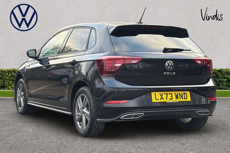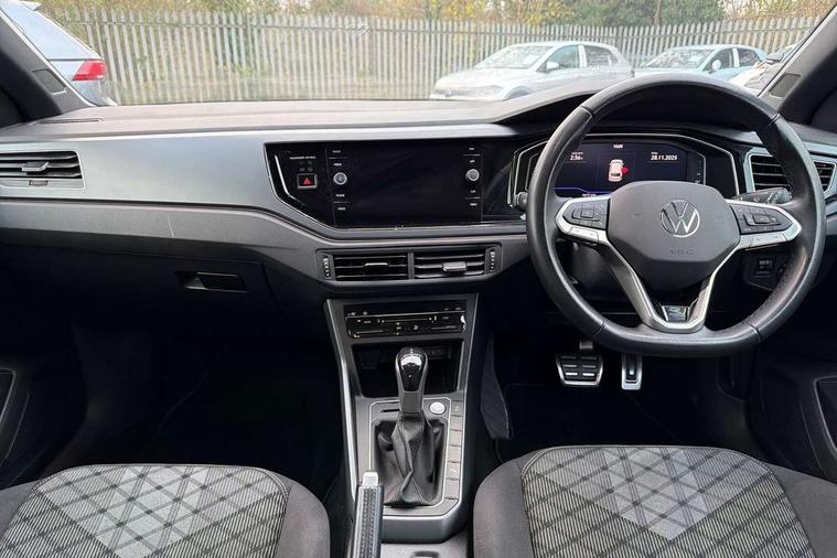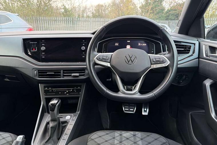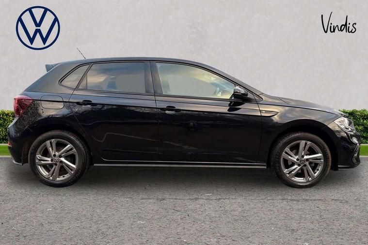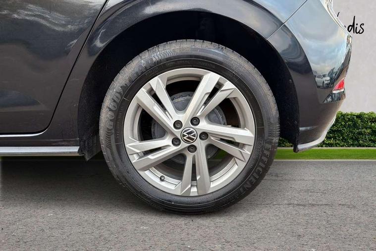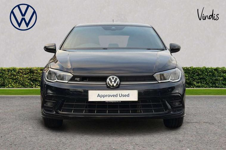 Adaptive cruise control with follow-to-stop and speed limiter, Bluetooth mobile phone interface, Digital Cockpit Pro with 10.25" Display, Driver alert system, Dynamic road sign display, Emergency call service, Power assisted speed sensitive steering, Preparation for We connect and We connect plus, Speedo and rev counter, electronic odometer, trip, service interval display and fuel gauge, Standard rear axle, Travel Assist - Lane keeping system and traffic jam assist, Travel assist including emergency assist, Trip computer, Warning signal and warning light for front and rear seatbelts not fastened, Washer fluid level indicator, Wireless app connect, Front wheel drive, Rear shock absorpion, Start-stop system with battery regeneration (recuperation - energy recovery during braking), DAB Digital radio, Diversity antenna for FM reception, Front and rear 6 speakers, Body colour bumpers, Body colour door handles, Body colour door mirrors, Electric front windows, Front scuff plates with R-Line logo, Heat insulating darkened glass in side and rear windows, Heat insulating glass windscreen, Power folding adjustable/heated exterior mirrors and front passenger exterior mirror lowering function, Rear electric windows, Rear fog light, Rear side wing doors, Rear tinted glass from B-pillar backwards approx 65% tinted, Rear windscreen washer and wiper with interval delay, Third brake light, 12V power socket in centre console, 2 USB-C ports in the front, 2 USB-C charging sockets on the center console in the rear, 3 rear head restraints, 60/40 split folding rear seat and rear seat bench not split, Air care climatronic air conditoning system with active combination filter and 2-zone temperature control, Black roof lining, Chrome plated radiator grille inserts, air vent surrounds and light switch surrounds, Door and side trim panel, Driver and front passenger seat height adjustment, Driver/passenger sunvisors with illuminated vanity mirrors, Front + rear carpet mats in recycled material, Front centre armrest, Front footwell illumination, Front seat backrest storage pockets, Front sports comfort seats, Handbrake lever handle in leather, Headliner in recycled material, Isofix child seat preparation easy-fit (for two outer rear seats, and front passenger seat) compatible with I-size, Karoso artvelours cloth upholstery, Leather trimmed gear knob, LED interior light with switch off delay and dimmer, 2 reading lights front and rear, Luggage compartment cover, Luggage compartment floor, Luggage compartment lighting, Lumbar adjustment for front seats, Single front passenger seat, Stainless steel pedals, Standard pedal cluster, Three spoke leather wrapped multifunction steering wheel with shifting paddles, Light and sight pack - Polo R-Line/Black Edition, 3 point height adj front seatbelts + pretensioners, 3x3 point rear seatbelts, ABS, Driver and front passenger airbag with front passenger airbag deactivation, Drivers and front passengers safety optimised head restraints, ESC (Electronic stability control) + EDL (Electronic Differntial lock) and ASR (Traction control), Extended and predictive pedestrian/ cyclist protection, Front curtain and side airbags with center airbag, Hill hold control, Manual child lock in rear doors, Single tone horn, Tyre pressure loss indicator, Alarm with interior protection, Anti-theft alarm system with interior monitoring, backup horn, and towing protection, Anti-theft wheel bolts, Electronic engine immobiliser, Chrome applications on rotary light, mirror adjustment, window regulator switches, outlet with frame in black, Dark grey anodised matt decorative inserts in dash and front door panels, Low rolling resistance tyres,