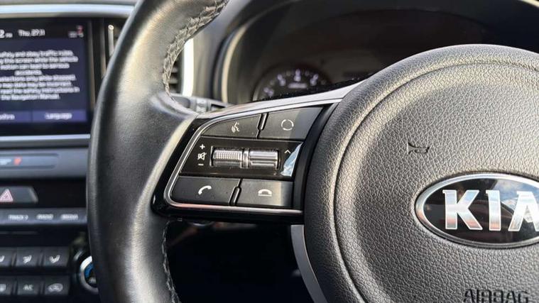 4.2" supervision colour cluster display, 8" touchscreen satellite navigation with European mapping and traffic messaging channel, Android auto with voice control, Apple car play with voice control, Blind spot collision warning, Cruise control + speed limiter, Driver attention warning, Emergency stop signalling system, Front parking sensor, Kia connected services featuring TomTom live, Lane keep assist, Rear parking sensor, Reversing camera, Speed limit information, Speed sensitive power steering, Telematics system with UVO connect services, Trip computer, Windscreen washer level indicator, Intelligent Stop and Go, 6 speaker audio system, Bluetooth audio streaming, DAB Radio with MP3, Rear USB port, Steering wheel mounted audio controls, USB/iPod/auxiliary input connections, All round electric windows with drivers auto up/down function, Auto dimming rear view mirror, Automatic lighting control, Automatic window defogger, Black wheel arch body mouldings and side sills with chrome insert, Body colour door handles with chrome inserts, Body colour door mirrors, Chrome front bumper insert, Chrome grille surround, Chrome window surround, Electric panoramic glass sunroof (Electric one touch with safety function), Electrically adjustable/heated/folding door mirrors with LED indicators, Front wiper de-icer, High beam assist, High gloss black diamond mesh radiator grille, LED Bi-Function headlights, LED daytime running lights, LED rear lights, Privacy glass - Rear windows and tailgate, Projection front fog lights with matt black surround, Rain sensing front wipers, Rear spoiler, Rear wiper, Roof rails, Shark fin antenna, Silver painted front and rear skid plates, Tinted glass, Trailer stability assist, Welcome and follow-me home light functionality, Wide view drivers door mirror, 10 way driver/8 way passenger electrically power adjustable seats, 12V power in front and rear centre console, 3 x passenger assist grips, 60/40 split folding rear seat, Air filter, All-round height adjustable headrests, Aluminium door scuff plates, Centre console storage box, Driver and front passenger side sunvisors with illuminated vanity mirrors, Drivers seat power lumbar support, Dual zone automatic air conditioning, Front and rear door storage, Front cabin LED map light with sunglasses case, Front door courtesy reflectors, Front seat and rear pockets, Front/rear centre armrests, Gear shift indicator, Glovebox illumination, Heated front and outer rear seats, Heated steering wheel, Interior door lock/unlock function, ISOFIX Child seat top tethers and anchor fixings, Leather steering wheel, Leather trimmed door armrests, Leather trimmed gearshift, Leather upholstery, Light grey headlining, Luggage area LED light, Luggage area load cover, Luggage net with hooks, Rear centre armrest with cupholder, Rear coat hooks, Satin chrome interior door handles, Side cabin LED lights, Tilt/telescopic adjustable steering wheel, Ventilation ducts to rear compartment, Active front headrests, All round 3-point seatbelts, Anti-lock braking system with electronic brakeforce distribution, Dual front side airbags, Electronic parking brake, Electronic stability control with downhill brake control, Front passenger airbag cut-off switch, Front seatbelt pretensioners + load limiters, Height adjustable front seatbelts, Hill start assist control (HAC), Impact sensing auto door unlocking, Rear door child safety locks, Traction control, Twin curtain airbags with roll over sensor, Twin front airbags, Tyre pressure monitoring system, Advanced anti-theft system including immobiliser and alarm, Door deadlocks, Engine Start/Stop Button with Smart Entry System, Locking wheel nuts, Speed sensitive auto door locking, Visible vehicle identification number, High gloss black centre fascia, 19" Alloy wheels, Tyre mobility kit,