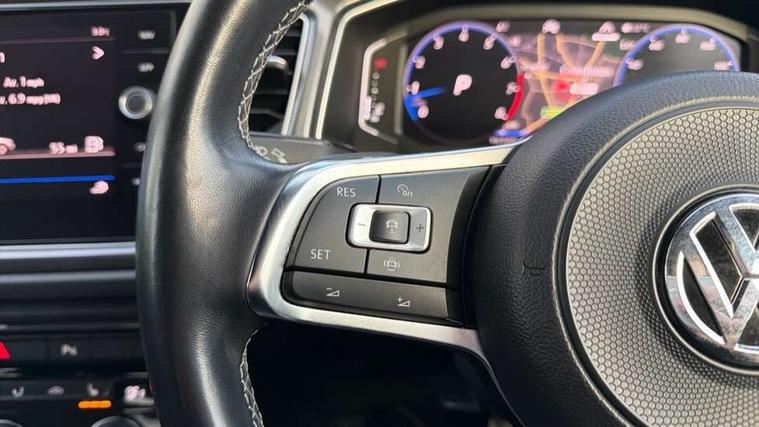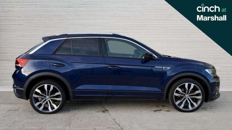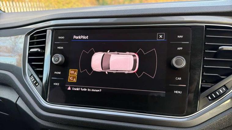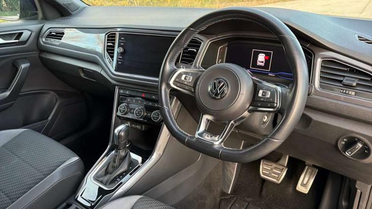 'Lights On' Reminder warning buzzer, 2 USB connection charging sockets, Active Info Display, 10.3" high resolution TFT dash display screen with customised information, Adaptive cruise control with front assist, radar sensor controlled distance monitoring, city emergency braking, App-Connect, Automatic start/stop system, Bluetooth telephone and audio connection for compatible devices, Car information display, Car-Net Security and Service, Discover navigation, 8" touch screen navigation/infotainment system with Car-Net, European map, CD/radio, 2D/3D map and speed limiter, Driver alert system with audible and visual fatigue detection system, Driver tips and journey analysis, Lane assist, Multifunction computer with visual gear change recommendation for fuel consumption, Service interval indicator, Think blue trainer driver tips and journey analysis, Voice activation, Warning sound and light for doors and tailgate open, Warning sound and light for front seatbelts unfastened, Battery regeneration during braking, DAB Digital radio, Dynamic navigation based on TMC+, Multi device interface (MDI) with USB connection, Music playback - MP3, WMA and AAC files, Premium USB cable in choice of either Apple or Android smartphone compatibility, SD card slot, Simultaneous pairing of 2 compatible mobile devices, SMS functionality - read, compose and send SMS messages using touch-screen display, Three route options - Fast, Short, Eco, Title and cover art display, Auto dimming interior rear view mirror, Black grained lower door protectors, Body colour door handles, Body colour rear roof spoiler, Chrome effect left and right trapezoid exhaust tailpipe fascia surround, Chrome trim on upper and lower radiator grille, Dusk sensor, Electrically foldable, adjustable and heated door mirrors with puddle lights and reverse activated kerb-view adjustment on passenger's door mirror, Front and rear electric windows, Front fog lights with static cornering function, Front windscreen wiper with intermittent wipe and 4 position delay, Fully galvanised body, Heated rear window, High level 3rd brake light, LED darkened rear light clusters, LED rear number plate lights, Manual coming/automatic leaving home lighting function, Rain sensor, Rear tinted glass from B-pillar backwards approx 65% tinted, Rear wash/wipe with intermittent wipe setting, 12V socket in centre console storage area, 2 Front and rear reading lights incorporating LED technology, 3 rear head restraints, 4 load lashing points in luggage compartment, Aluminium pedals, Ambient lighting in front footwell and light strips below trim in front doors, Black roof lining and sun visors, Branded points of interest, Carbon flag cloth upholstery, Climate control - 2 zone electronic air conditioning with automatic air recirculation and allergy filter, Drawer under drivers seat, Front and rear carpet mats with contrast stitching, Front centre armrest with storage compartment, longitudinal and height adjustable and two rear air vents, Front cupholders x 2, Front footwell illumination, Front seat back storage pockets, Front sports seats with R-Line logo on seat backrest, Glovebox, Height adjustable front seats, Height/reach adjust steering wheel, Illuminated vanity mirrors, Instrument lighting, white adjustable panel illumination, Interior light delay, Isofix easy fit child seat preparation for 2 outer rear seats, Load through provision with single cup holder when folded down, Luggage compartment cover, removable, Luggage compartment lighting, R Line badge, Split folding rear seat backrests with centre armrest, Storage compartment in left and right luggage area, Storage compartment in rear doors, Storage compartments in driver and front passenger doors, Three spoke multifunction leather trimmed steering wheel including gear knob and paddle shift with aluminium inserts contrast stitch and R Line logo, Unique R Line door sill protectors, R line styling pack - T-Roc, 3 rear three point seatbelts, ABS, Curtain airbags, Driver and front passenger safety-optimised head restraints, Drivers and front passengers airbags with passengers deactivation switch, Electronic parking brake with auto hold, Electronic stability control (ESC) includes ASR, EDL, EDTC and trailer stabilisation function, Front seat side impact airbags, Predictive pedestrian protection, Rigid safety cell with front and rear crumple zones, Three point height adjust front seatbelts + pretensioners, Tyre pressure loss indicator, Ventilated front and rear disc brakes, Volkswagen roadside assistance, Alarm with interior protection and deactivation via infotainment system, Electronic engine immobiliser, Remote central locking with 2 remote folding keys, Shadow steel decorative inserts in dash and door panel, 19" Suzuka alloy wheels with low rolling resistance tyres and anti wheel bolts, Space and weight saver spare wheel,