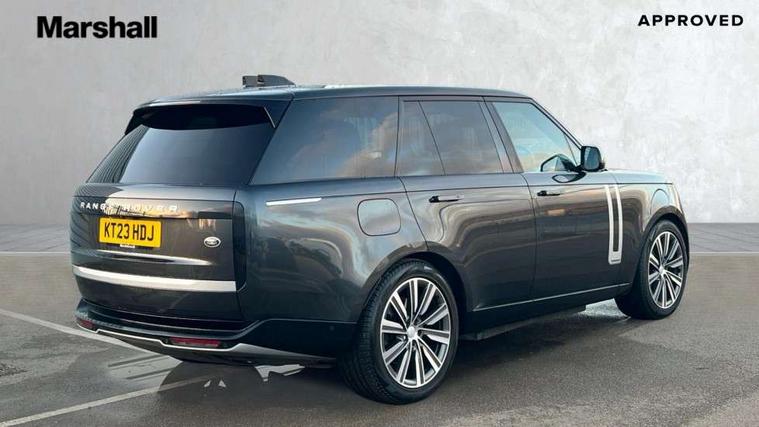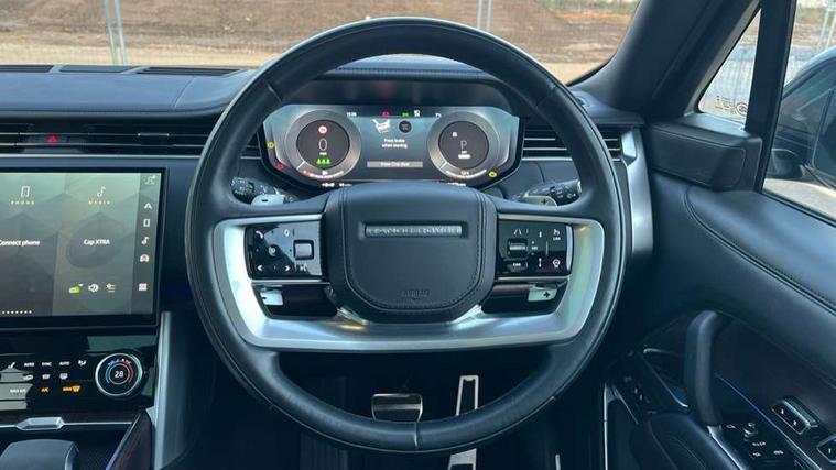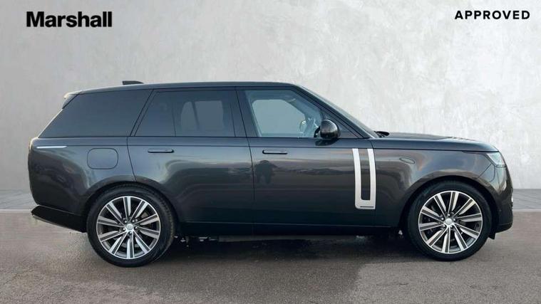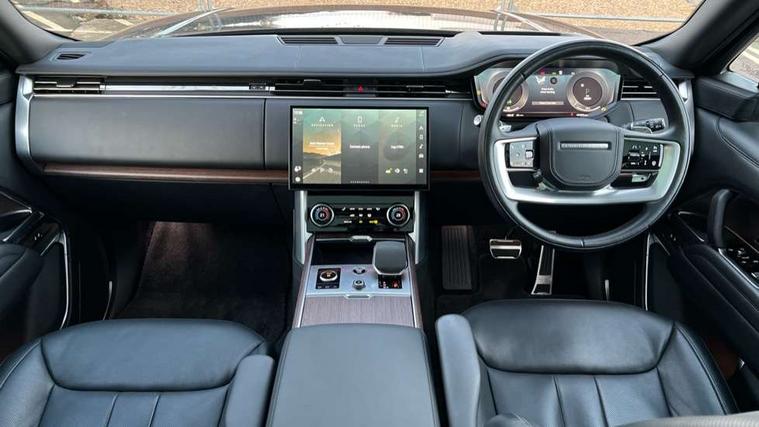 13.1" Touchscreen, 3D surround camera inc frwd traffic detection, vehicle clearance guidance, 3D view, clearsight ground view, manoevure light, 360 parking aid, wade sensing, Adaptive cruise control with steering assist, All Terrain Info Centre, All wheel steering, Android Auto, Apple car play, Blind spot assist, Bluetooth connectivity streaming, Configurable programs, Driver condition response, Eco mode, Electric power assisted steering (EPAS), Emergency call service, Head up Display, Interactive driver display, Lane keep assist, Powered gesture tailgate/boot lid, Rear collision monitor, Rear traffic monitor, Remote, Traffic sign recognition with adaptive speed limiter, Wi-Fi Enabled with data plan, Wireless device charging with phone signal booster, 7 kW onboard charger, 8 speed automatic transmission, Active damper technology system, Adaptive dynamics, All terrain progress control, All Wheel Drive (AWD), Automatic access height, Home charging cable 5m Mode 2 including plugs, Public charging cable 5m Mode 2 including plugs, Terrain Response 2 Auto, Twin speed transfer box, Digital Audio Broadcast radio-DAB, Pivi pro including smart settings, Connected navigation pro, nuance speech, USB socket, Acoustic laminated windscreen, Animated directional indicators, Automatic headlights, Automatic levelling headlights, Centre high mounted stop light, ClearSight interior rear view mirror, Electric windows with one touch open/close and anti trap, Flush deployable exterior door handles, Front and rear recovery eyes, Front fog lights, Headlamp power wash, Heated rear window, Heated washer jets, Illuminated metal treadplates with Autobiography script, Laminated front and rear side glass, LED tail lights, Power fold, auto-dimming, heated door mirrors with approach lights, Rain sensing windscreen wipers, Rear boot, Rear fog lights, Rear side wing doors, Rear wash/wipe, Side repeater indicators in mirror, Solar attenuating windscreen, Trailer stability assist, Winter wiper park position, 12V power sockets, 3 seat bench in 2nd row, Air quality sensor, Auto folding loadspace cover, Bright metal pedals, Cabin air purification pro, Cabin lighting, Customer configurable single point entry, Driver and passenger front seat armrests, Easy boot loading, Ebony Carpet, Electric rear side window sunblinds, Four zone climate control, Front and rear cupholders, Front and rear grab handles, Front head restraints, Gearshift paddles, Heated steering wheel, Hook in load space, Loadspace light, Luggage tie down in loadspace, Multifunction steering wheel, Rear centre armrest, Rear head restraints, Rear ISOFIX, Single front passenger seat, SV bespoke carpet mats, Twin blade sunvisors with Illuminated vanity mirrors, Upper and lower glovebox, Versatile loadspace floor in tailgate, Online pack with data plan - Range Rover, 3x3 point rear seat belts, Anti-lock braking system (ABS), Black brake calipers, Brake hold function, Cornering brake control (CBC), Customer configurable autolock, DSC - Dynamic Stability Control, Electronic brake force distribution, Electronic parking brake, Electronic traction control, Emergency brake assist, Emergency braking, Front airbags with passenger seat occupant detector, Front side airbags, Hill descent control, Hill launch assist, Illuminated seat belt buckles, Low traction launch, Occupant protection assist, Power operated child locks, Roll stability control, Tyre pressure monitoring system (TPMS), Immobiliser, Intrusion sensor and alarm, Keyless entry, Locking wheel nuts, Remote central locking, Noble chrome controls,