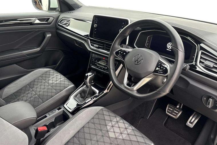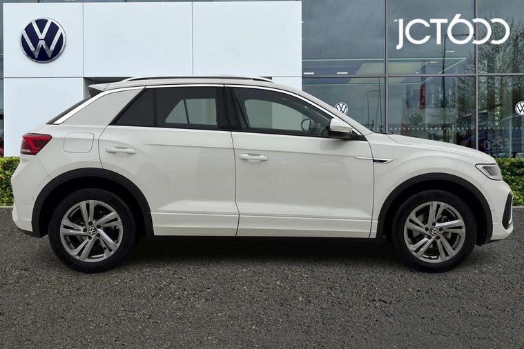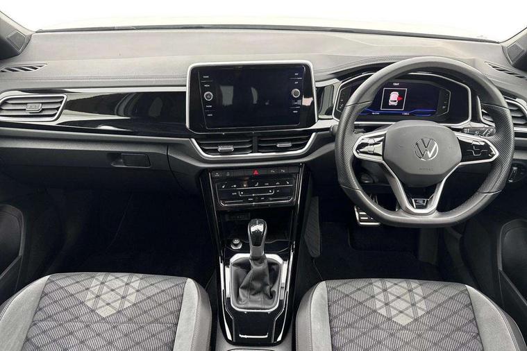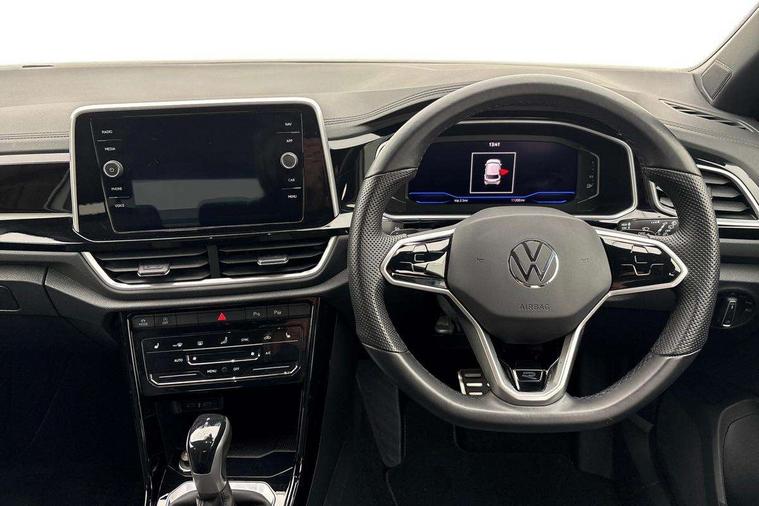 10.25" Digital cockpit pro, Bluetooth mobile phone interface, Driver alert system with fatigue detection, Driver tips and journey analysis, Emergency call service, Lane keeping system Lane Assist, Modified key software - reduce switch off time for key status change to Long no motion, Online services, Park assist including front and rear parking sensors, Service interval indicator, Tailgate/trunk lid release from outside, Think blue trainer driver tips and journey analysis, Warning sound and light for front seatbelts unfastened, Wireless app connect, Battery regeneration during braking, Start/stop function with battery regeneration, Diversity antenna for FM reception, Front and rear 6 speakers, Music playback - MP3, WMA and AAC files, Premium USB cable in choice of either Apple or Android smartphone compatibility, SD card slot, Simultaneous pairing of 2 compatible mobile devices, Title and cover art display, We Connect and We Connect Plus functionality, 3rd brake light, Auto dimming interior rear view mirror, Automatic hazard lights activation under emergency braking, Automatic headlight control with LED separate daytime running lights with coming/leaving home function, Extended roof spoiler, Exterior mirrors aspherical on driver side, convex on front passenger side, External USB type C socket and charging sockets, Front windscreen wiper with intermittent wipe and 4 position delay, Heated rear window, LED Plus headlamps, LED rear combination lamps, LED rear number plate lights, LED tail lamp rear comination lamps, Power windows with comfort operation and circuit breaker, R-Line design body coloured bumpers, Rain sensor, Rear exhaust tailpipe, Rear fog light on one side and reversing lights on both sides, Rear side wing doors, Rear wash/wipe with intermittent wipe setting, Remote electrically foldable door mirrors, puddle lights and reverse activated passenger's door mirror, 12V power socket in centre console, 3 rear head restraints, 3 seat bench in 2nd row, 4 load lashing points in luggage compartment, Air care climatronic air conditoning system with active combination filter and 2-zone temperature control, Black roof lining, Chrome plated radiator grille inserts, air vent surrounds and light switch surrounds, Door and side trim panel with leatherette insert, Drawer under drivers seat, Front + rear carpet mats, Front centre armrest, Front cupholders x 2, Front footwell illumination, Front reading light, Front scuff plates with R logo, Instrument lighting, white adjustable panel illumination, Interior ambient lighting and surround lighting, Interior light delay, Isofix child seat preparation, Leather gearshift handle, Load-through provision with cup holder when folded down ('Unsplit rear seat bench, split folding backrest, with centre armrest), Luggage compartment lighting, Single front passenger seat, Stainless steel pedals, Storage compartment in left and right luggage area, Storage compartment in rear doors, Storage compartments in driver and front passenger doors, Sunvisors with illuminated vanity mirrors, Variable boot floor, height adjustable and removable, Driver assistance pack without proactive passenger protection - T-Roc, 3 point height adj front seatbelts + pretensioners, 3 point seatbelts in outer rear with ECE label, ABS, Child locks on rear doors, Driver and front passenger airbag with front passenger airbag deactivation, Driver and front passenger safety-optimised head restraints, Drivers seatbelt reminder, Electronic parking brake, Electronic Stability Control (ESC) inc EDL (Electronic Differential Lock) and ASR (Traction Control), Front and rear passengers curtain airbag system including front side airbags, Front assist with city emergency braking and pedestrian monitoring, Front seat side impact airbags, Hill start assist, Predictive pedestrian protection, Rear disc brakes, Single tone horn, Tyre pressure loss indicator, Volkswagen roadside assistance, Alarm with interior protection, Anti-theft alarm system with interior monitoring, backup horn, and towing protection, Remote central locking with SAFELOCK, radio remote control with 2 remote control folding keys, Trims for alloy wheels,
