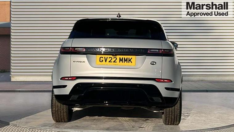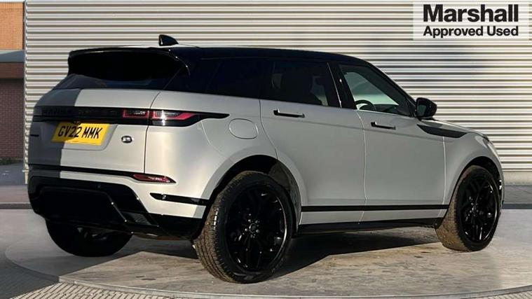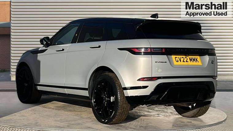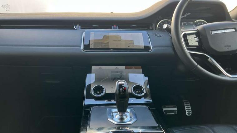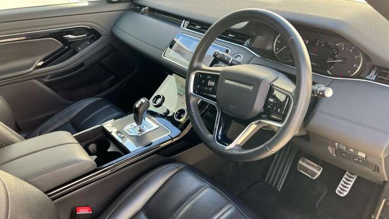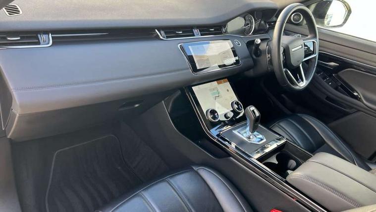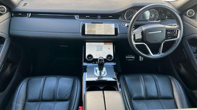 Adaptive cruise control, Android Auto, Apple car play, Blind spot assist, Bluetooth connectivity, Brake pad wear indicator warning light, Driver condition monitor, eCall emergency system, Electronic power assisted steering (EPAS), Front and rear parking aid, InControl remote, Land Rover InControl apps, Lane keep assist, Pivi pro connected includes upgraded infotainment, connected navigation pro, Nuance speech licence, Push button starter, Rear collision monitor, Rear traffic monitor, Traffic sign recognition with adaptive speed limiter, Voice control system, All terrain progress control, Efficient Driveline, Large fuel tank, Passive suspension, Terrain Response 2 Auto, Digital Audio Broadcast radio-DAB, Steering wheel mounted controls, Auto headlights, Automatic headlight levelling, Electric windows with one touch open/close and anti trap, Evoque and R-Dynamic badge, Flush deployable exterior door handles, Heated rear window with timer, Heated washer jets, Heated windscreen, Power fold, auto-dimming, heated door mirrors with approach lights and auto dimming driver side, Rain sensing windscreen wipers, Rear fog lights, Rear side wing doors, Rear wiper, Tailgate spoiler, Third brake light, 40:20:40 split folding rear seats with centre headrest and armrest, Ambient interior lighting, Bright metal pedals, Isofix system on outer rear seats, Overhead lighting console, Overhead stowage for sunglasses, Passive front head restraints, Rear air vents, Rear centre headrest, Rear head restraints, Satin chrome gearshift paddles, Single passenger seat, Sunvisors with illuminated vanity mirrors, Twin sliding front centre armrest, 3 rear 3 point seatbelts, Anti-lock braking system (ABS), Customer configurable autolock, DSC - Dynamic Stability Control, Electronic brake force distribution, Electronic parking brake, Electronic traction control, Emergency braking, Front and rear seatbelt reminder, Hill descent control, Hill launch assist, Low traction launch, Power operated child locks, Roll stability control, Six airbags - Driver and passenger airbags/driver knee airbag/front side airbag and curtain airbags, Torque vectoring brake, Tyre pressure monitoring system, Alarm, Immobiliser, Intrusion sensor, Keyless entry, Locking wheel nuts,