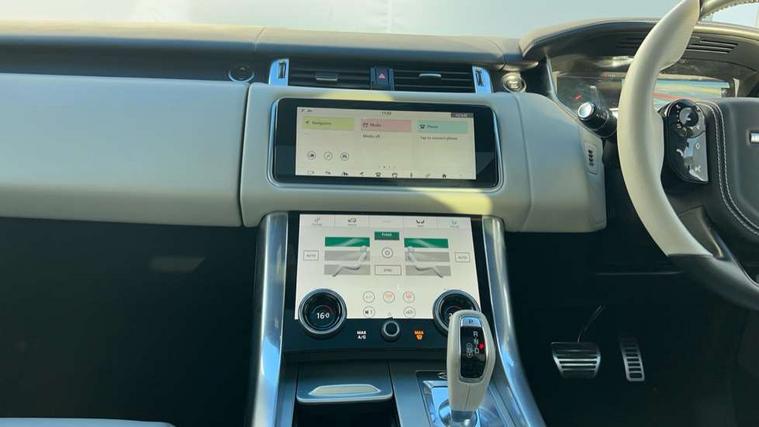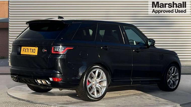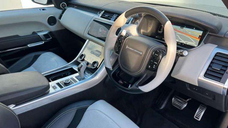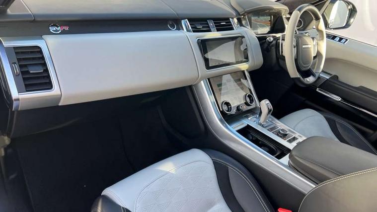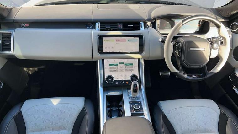 360 Parking aid, All Terrain Info Centre, Android Auto, Apple car play, Bluetooth connectivity, Clear exit monitor, Driver condition monitor, Electric power assisted steering (EPAS), Incontrol apps in vehicle touchscreen, Interactive Driver display instrument cluster, Mist sensor, Navigation pro system with 10" touch screen, app interface and media storage, Powered gesture tailgate/boot lid, Pro services and wifi hotspot, Push button start, Rear traffic monitor, Remote premium - Upgraded Incontrol remote app including remote climate control (engine dependent), remote lock + Unlock and remote beep + flash, Touch pro duo system, Traffic sign recognition with adaptive speed limiter, Trip computer, Adaptive dynamics, All terrain progress control, Configurable dynamics, Electronic active differential with brake torque vectoring, Gradient release control (GRC), SVR sports suspension with dynamic response (active roll control), Terrain Response 2 with dynamic program, Twin speed transfer box, Bluetooth audio streaming, DAB Radio (Digital Audio Broadcasting), Incontrol protect - SOS emergency call with automatic collision detection, optimised assistance call and Incontrol remote app essential, USB/aux input socket, Acoustic front and toughened rear side glass, Acoustic laminated front windows, Active exhaust system with integrated exhaust mounted quad tailpipes, Adaptive brake lights, Auto dimming interior rear view mirror, Automatic headlights, Body coloured side sills and bumpers corners, Centre high mounted stop light, Electric windows with one touch open/close and anti trap, Electrical towing preparation, Follow me home lighting, Front and rear recovery eyes, Headlight power wash, Heated rear window, Heated windscreen includes heated washer jets, Illuminated metal treadplates with brand name script, LED rear lamps, Power fold, auto-dimming, heated door mirrors with memory and approach lights, Rain sensing windscreen wipers, Rear fog lights, Rear side wing doors, Rear wash/wipe, Remote window closing, Side repeater indicators in mirror, SVR badge, SVR exterior styling, Switchable sports exhaust, Trailer stability assist, Unique light weight exhaust system, 16 way driver/passenger electrically adjustable SVR performance seats with memory, 2 way rear head restraints, 3 seat bench in 2nd row, 4 way lumbar support with memory function, 60/40 split folding rear seat, Aluminium gear shift paddles, Auto air recirculation, Bright metal foot pedals, Centre console with armrest, Climate control memory, Configurable Ambient interior lighting, Customer configurable single point entry, Driver's footrest, Extended leather upgrade includes door top rolls and leather instrument panel mid section, Front and rear cupholders, Front and rear premium carpet mats, Front door storage space, Front map lights, Front seat back map pockets, Front stowage pocket, Front/rear passenger grab handles, Heated steering wheel, Integrated front head restraints, Isofix child seat preparation, Loadspace light, Loadspace mounting provisions, Lockable glovebox, Multifunction steering wheel, Pollen filter, Power socket, Reach/rake electric adjustable steering column + entry/exit tilt away, Rear centre armrest, Rear ISOFIX, Roller blind loadspace cover, Single front passenger seat, Sports pedals, SVR leather steering wheel, SVR Performance seats, Three 12V accessory power outlets, Smartphone pack - Range Rover Sport, 3 point seatbelts on all seats, Anti-lock braking system (ABS), Brake pre-fill technology, Cornering brake control (CBC), Curtain airbags, Customer configurable autolock, DSC - Dynamic Stability Control, Dual stage driver/passenger airbags, EBD - Electronic brakeforce distribution, Electric parking brake, Electronic traction control, Emergency braking includes city, urban AEB and pedestrian, Front seatbelt pretensioners, Gradient acceleration control, Height adjustable front seatbelts, High speed emergency braking, Hill descent control, Hill launch assist, Low traction launch, Passenger seat occupant detector with front airbags, Power operated child locks, Roll stability control, Seatbelt warning, TPMS (Tyre pressure monitoring system), Immobiliser, Intrusion sensor, Keyless entry, Locking wheel nuts, Perimetric and volumetric anti theft alarm, Remote locking,