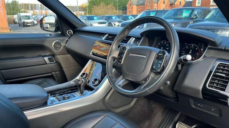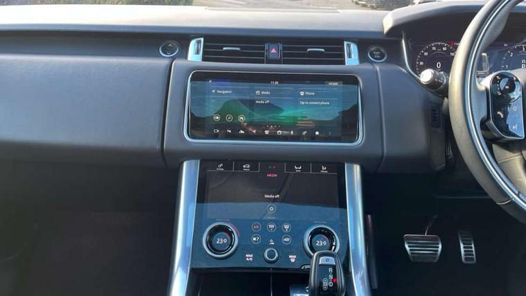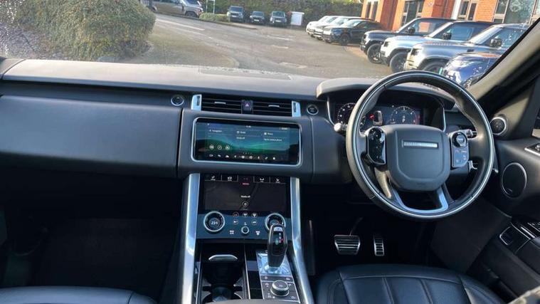 All Terrain Info Centre, Android Auto, Apple car play, Bluetooth connectivity, Electric power assisted steering (EPAS), Incontrol apps in vehicle touchscreen, Interactive Driver display instrument cluster, Mist sensor, Navigation pro system with 10" touch screen, app interface and media storage, Pro services and wifi hotspot, Push button start, Remote premium - Upgraded Incontrol remote app including remote climate control (engine dependent), remote lock + Unlock and remote beep + flash, TFT Virtual Instrument Panel, Touch pro duo system, Trip computer, Adaptive dynamics, All terrain progress control, Electronic active differential with brake torque vectoring, Electronic air suspension with dynamic response (active roll control), Gradient release control (GRC), Terrain Response 2 with dynamic program, Twin speed transfer box, Bluetooth audio streaming, DAB Radio (Digital Audio Broadcasting), Incontrol protect - SOS emergency call with automatic collision detection, optimised assistance call and Incontrol remote app essential, USB/aux input socket, Acoustic front and toughened rear side glass, Acoustic laminated front windows, Adaptive brake lights, Auto dimming interior rear view mirror, Automatic headlights, Body coloured side sills and bumpers corners, Centre high mounted stop light, Electric windows with one touch open/close and anti trap, Electrical towing preparation, Engine cover, Follow me home lighting, Front and rear recovery eyes, Front fog lights, Headlight power wash, Heated rear window, Heated windscreen includes heated washer jets, Illuminated metal treadplates with brand name script, LED rear lamps, Privacy glass (Tinted glass rear of B pillar), Rain sensing windscreen wipers, Rear fog lights, Rear side wing doors, Rear wash/wipe, Remote window closing, Side repeater indicators in mirror, Sport Badge in black, Standard bonnet, Trailer stability assist, Twin bright tailpipes, 2 way active front head restraints, 2 way rear head restraints, 3 seat bench in 2nd row, Auto air recirculation, Bright metal foot pedals, Centre console with armrest, Climate control memory, Customer configurable single point entry, Driver's footrest, Extended leather upgrade includes door top rolls and leather instrument panel mid section, Front and rear cupholders, Front door storage space, Front map lights, Front seat back map pockets, Front stowage pocket, Front/rear passenger grab handles, Heated steering wheel, Isofix child seat preparation, Leather steering wheel with Atlas inserts, Loadspace light, Loadspace mounting provisions, Lockable glovebox, Multifunction steering wheel, Perforated Windsor leather upholstery, Pollen filter, Power socket, Reach/rake electric adjustable steering column + entry/exit tilt away, Rear centre armrest, Rear ISOFIX, Roller blind loadspace cover, Satin chrome gearshift paddles, Single front passenger seat, Sports pedals, Three 12V accessory power outlets, Black Exterior pack - Range Rover Sport Dynamic, Smartphone pack - Range Rover Sport, 3 point seatbelts on all seats, Anti-lock braking system (ABS), Brake pre-fill technology, Cornering brake control (CBC), Curtain airbags, Customer configurable autolock, DSC - Dynamic Stability Control, Dual stage driver/passenger airbags, EBD - Electronic brakeforce distribution, Electric parking brake, Electronic traction control, Emergency braking includes city, urban AEB and pedestrian, Front seatbelt pretensioners, Gradient acceleration control, Grey anodised brake calipers, Height adjustable front seatbelts, Hill descent control, Hill launch assist, Low traction launch, Passenger seat occupant detector with front airbags, Power operated child locks, Roll stability control, Seatbelt warning, TPMS (Tyre pressure monitoring system), Immobiliser, Intrusion sensor, Keyless entry, Locking wheel nuts, Perimetric and volumetric anti theft alarm, Remote locking, Grand black veneer,