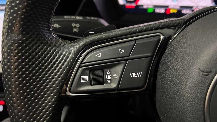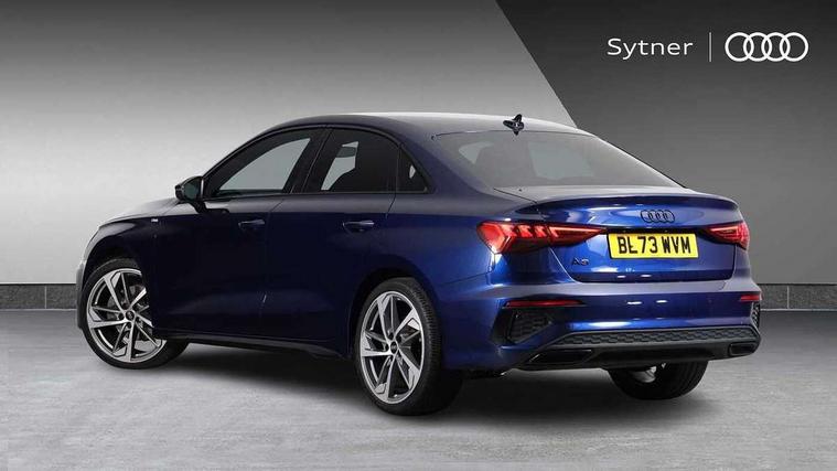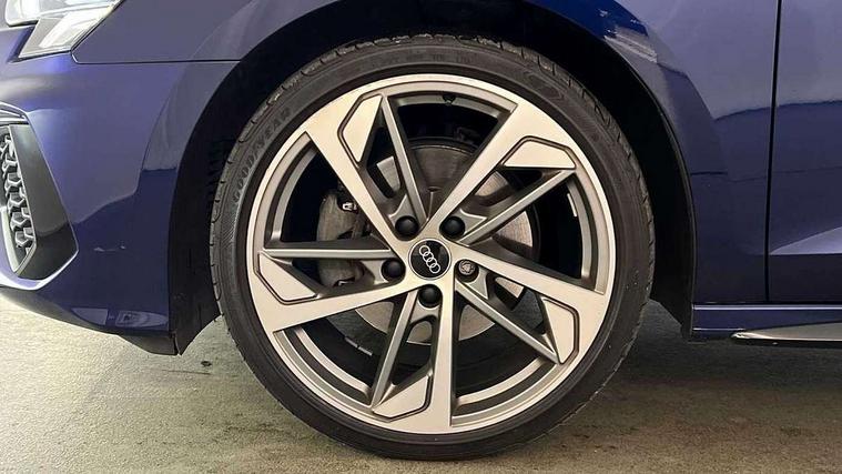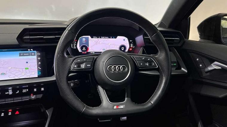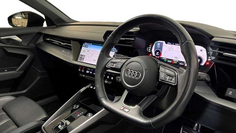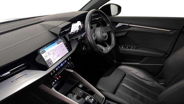 Audi drive select (Auto, Comfort, Dynamic, Efficiency and Individual), Audi smartphone interface, Audi Virtual Cockpit - 10.25" digital and colour instrument cluster, Automatic start/stop system with recuperation, Bluetooth interface, Camera based traffic sign recognition, Collision avoidance assistant, e-Call (emergency call), Electromechanical power speed sensitive steering, Lane departure warning system, MMI Navigation Plus with high resolution 10.1" colour touch screen display, Service indicator, Trip computer, Voice control system with natural language interaction, Sports suspension, 2xUSB-C connection with data and charging functions, 6 passive loudspeakers, CD player, DAB Digital radio, 3rd brake light, Acoustic glass windscreen, Audi beam uses LEDs to project the Audi logo onto the ground as you exit your A3, Auto dimming frameless rear view mirror, Electrically adjustable/heated/folding/auto dimming door mirrors with integrated LED indications + kerb view function for passenger side, Front electric windows, Illuminated door sills with aluminium inserts at the front with S logo, LED daytime running lights, LED headlights with LED rear lights and dynamic rear indicators, Light and rain sensors, Model and engine designation badges at rear, Privacy glass - dark tinted rear window, rear door and side windows, Rear boot, Rear electric windows, Rear side wing doors, S roof spoiler, 12V socket and storage compartment in front centre console, 3 seat bench in 2nd row, 3 spoke flat bottomed leather multifunction sport steering wheel with gear shift paddles, 4 way electrically adjustable lumbar support for driver and front passenger, 60/40 split folding rear seat bench, Black cloth headlining, Dual zone electronic climate control, Front and rear centre armrest in artificial leather, Front and rear headrests, Front/rear floor mats, Height and reach adjustable steering wheel, Interior lighting - glove compartment light and right hand side, Luggage compartment floor covering, Manual boot compartment lid, Single front passenger seat, Stainless steel pedals and front footrest in black, Twin leather upholstery with front sports seats S embossed logo, Aluminium interior elements pack - A3, Black styling pack - A3 Saloon/Black edition, LED interior lighting pack - A3 Saloon, 3x3 point rear seat belts, Driver and front passenger airbag with passenger airbag deactivation, Electronic Stabilisation Control (ESC) including ABS, ASR and EDL, First aid kit with warning triangle and 2 safety vests, Front side airbags with head airbags and interaction airbag, Pre-sense front with pedestrian and cyclist detection, Seatbelt monitoring, Tyre pressure loss indicator, Anti theft alarm, Anti-theft wheel bolts, Electronically operated child locks, Immobiliser, Remote control central locking, Aluminium air vent surrounds, Dark spectrum aluminium inlays, accent surfaces in the dashboard and centre console in platinum grey silk effect paint finish, 19" 5 arm trapezoid design alloy wheels in matt grey with diamond cut finish,