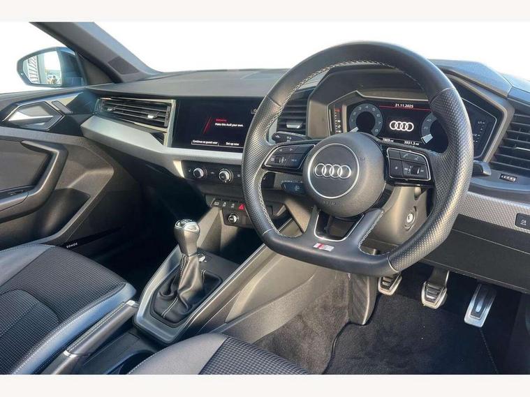 10.25" Digital instrument cluster display classis style instrument dials + speed, odometer, time, outside temperature, telephone menu + fuel level warning, Audi connect safety emergency and service including E-call, Audi drive select - power steering assistance + engine, Audi smartphone interface with connect compatible smartphone via USB directly MMI display + Nav, music, third party apps controlled via MMI controller, Automatic start/stop system, Bluetooth interface, Cruise control, Driver's information system, Electromechanical power steering, Emergency services call system, Lane departure warning system, Service interval indicator, Speed limiter, Voice control system, Washer fluid level indicator, Sports suspension, 1 x SDXC card reader, 2 x USB type C connection points, DAB Digital radio, MMI radio plus with 8.8" colour MMI display screen and MMI touch, Auto dimming rear view mirror, Black door mirrors, Black side skirts, Body coloured bumpers, Door sill trims with aluminium inlays and logo, Electric front and rear windows, Electrically adjustable, heated, folding door mirrors with integrated LED side indicator, Front side air inlets in grained matt black and C frame in titanium black, Heat insulating glass windscreen and side windows, Heated rear windscreen, High level LED brake light, LED headlights with LED rear lights + dynamic rear indicators + headlight adjustment and high beam, turning light + LED daytime running lights, Radiator protective grille frame in matt aluminium silver, Rain and light sensors, Rear diffuser strip in matt titanium black, Rear fog lights, Rear side wing doors, Rear wing door, Rear wiper, Side front spoiler lips in grained matt black, 12V socket in centre console with two cup holders, 3 rear seats with headrests, 3 seat bench in 2nd row, 3 spoke flat bottomed multi-function plus leather steering wheel with S badging, grips in preforated leather and contrast stitching, 40:60 Split folding rear seat or folded fully, Black cloth headlining, Driver and passenger seat with manual height adjust with forward and backwards adjustment, Front and rear black floor mats with contrast stitching in fine silver, Front head restraints, Front passenger seat, Height and reach adjustable steering wheel, ISOFIX child seat mounting for front passenger and outer rear seats including top tether attachment point of outer rear seats, Leather gear knob with aluminium trim, Luggage compartment light with front and rear reading lights, Manually adjustable lumbar support in front seats, Stainless steel pedals, Black styling pack - A1 Sportback Black Edition, LED interior lighting pack - A1, Luggage compartment pack - A1, 3x3 point rear seatbelts, Audi pre-sense front with pedestrain and cyclist recognition, Brake assist function, Driver and front passenger airbag with front side and head airbags, Electronic Stability Control including ABS, EBD, ASR and EDL, Front passenger airbag deactivation switch, Hill hold assist, Manual rear child locks, Seatbelt height adjustment for front seats, Seatbelt monitoring, Tyre pressure warning light, Warning triangle and first aid kit, Anti theft alarm, Anti theft wheel bolts and loose wheel warning, Immobiliser, Remote central locking with 2 foldaway keys, Aluminium trim for control switches, air vents and digital instrument cluster, Silver grey inlays polygon structure in diamond paint finish, Structured grey accent areas including air vents, door handle recesses and centre console in quartz paint finish, 18" 7 spoke rotor design alloy wheels in gloss anthracite black, diamond cut finish,