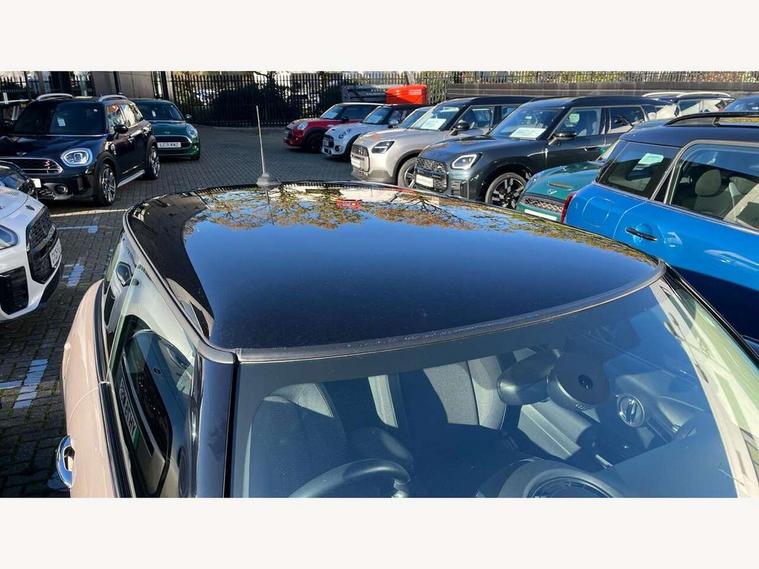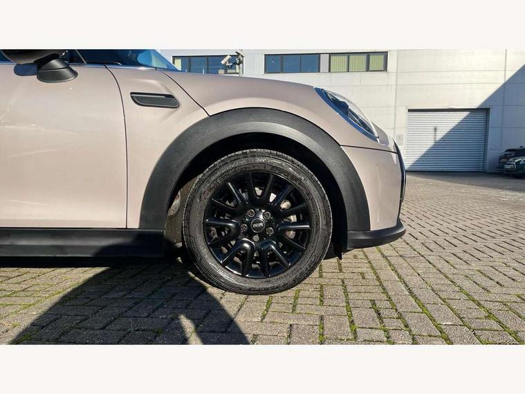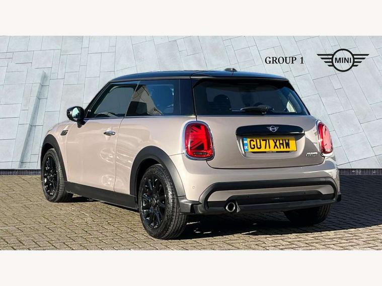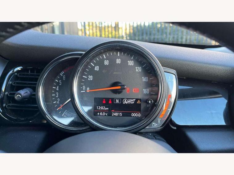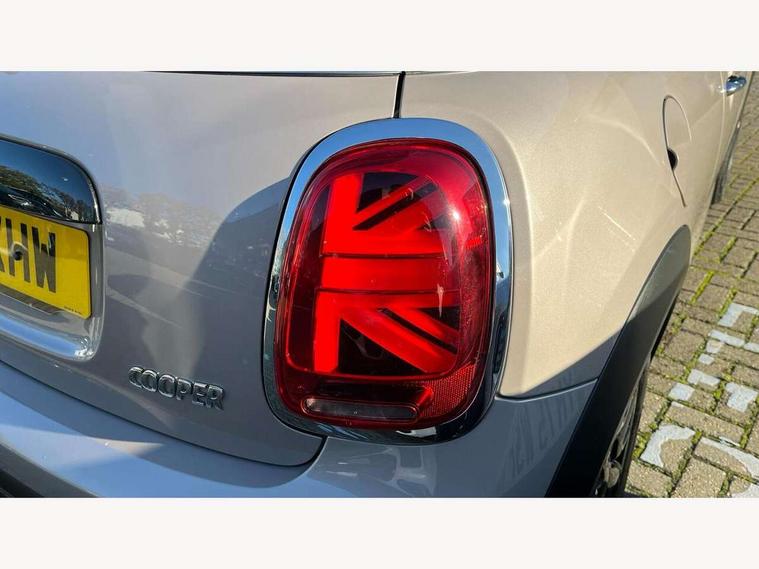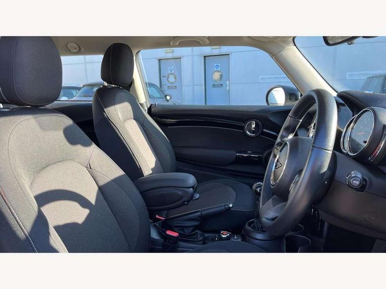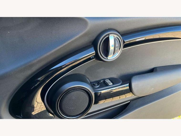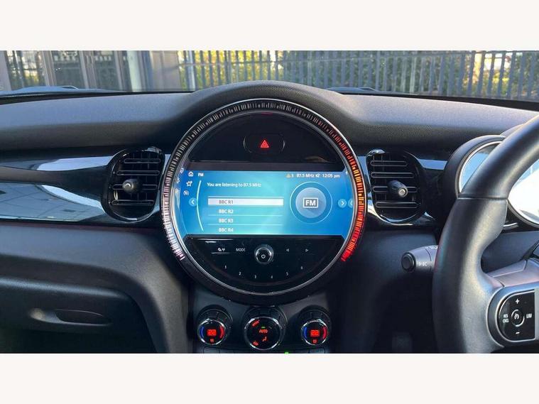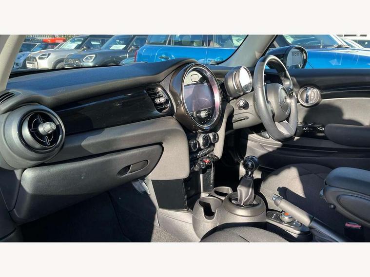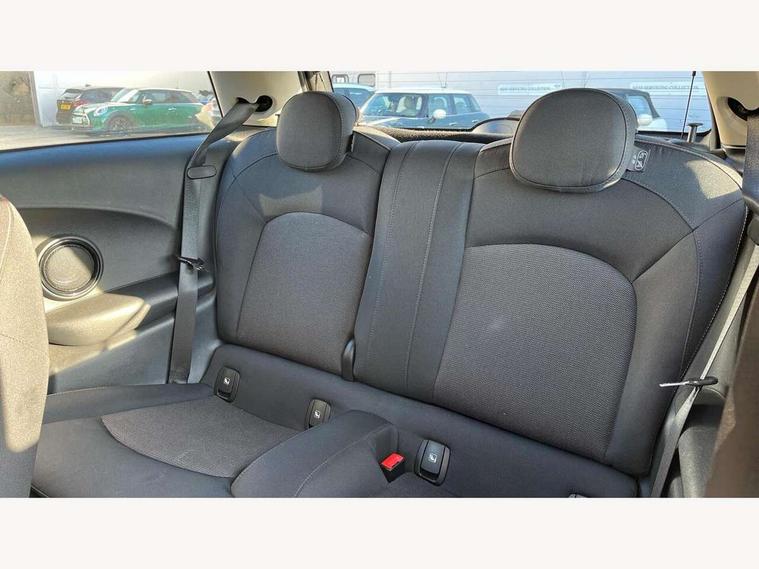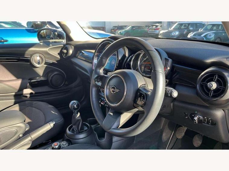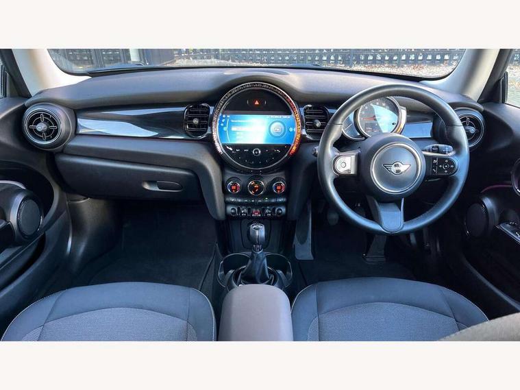 Automatic start/stop function with brake energy recuperation, Compatible mobile phone bluetooth with audio streaming, Cruise control with brake assist, Electro-mechanical speed dependant steering assistance, Flexible car sharing preparation, Instrument cluster, Mini E-call, MINI TeleServices, On board computer, Service interval indicator, 6 Speed manual transmission including gear change indicator display, Double Vanos system, Fully variable valve control, High precision injection, Performance Control, 4 speakers in front door trims and underneath front seats, 8.8" touchscreen with LED ring, FM tuner and DAB digital radio, Automatic headlight activation switch, Body colour fuel filler cap, Chrome border high gloss black slats radiator grille, Dynamic brake lights, Electric front windows, Exhaust tailpipe on left with chrome finisher, Heated rear window, Heated windscreen washer jets, LED headlight with closed ring and daytime driving lights, Metal door sill strips with MINI imprint, Model logo Cooper on right of tailgate, Rain sensor window wipers, Rear fog lights, Rear LED lights with union jack design, Rear window wiper, Side scuttle panel with integrated indicator, Sun/heat protection glass, White indicator lenses, 12V Accessory socket in centre console, 4 lashing eyes in luggage compartment, 60/40 split folding rear seat, Ambient lighting, Carbon black colour line - Knee roll and door armrest, Chrome interior highlights, Cupholders, Front and rear head restraints, Front and rear isofix with front passenger airbag deactivation, Glove compartment, Height and length steering column adjustment, Interior lighting with 12 different colours across the dashboard, underneath door bezel with illuminated laser-engraved design on central display, Leatherette gearshift lever and handbrake gaiters, LED reading lights, vanity mirror lights, front foot well light and spotlight on front seats, Manual air conditioning, Mechanical seat adjustment - forward/back & backrest for front seats and driver seat height adjust, Multifunction steering wheel, Passenger seat height adjuster, Satellite grey headlining including grab handles and clothes hooks, Sport leather steering wheel with speed limiter and audio/communication controls, Storage compartments in doors, Sunvisors with vanity mirrors, Velour floor mats, 3 point seatbelts on all four seats, 6 Airbags - front, side, head and seat belt tensioners, Anti-lock braking system (ABS), DSC - Dynamic Stability Control, Front and rear disc brakes, Single tone fanfare horn, Tyre pressure monitoring system, Alarm system with tilt sensor, monitoring doors, bonnet interior and tailgate, Electronic vehicle immobiliser, Start/stop toggle with keyless go, Piano black interior trim, Tool kit, Tyre repair kit,