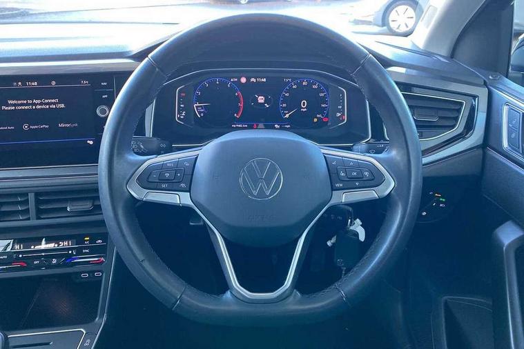 Adaptive cruise control without follow-to-stop and speed limiter, Bluetooth mobile phone interface, Digital Cockpit Pro with 10.25" Display, Driver alert system, Dynamic road sign display, Emergency call service, Power assisted speed sensitive steering, Preparation for We connect and We connect plus, Speedo and rev counter, electronic odometer, trip, service interval display and fuel gauge, Standard rear axle, Travel Assist - Lane keeping system and traffic jam assist, Travel assist including emergency assist, Trip computer, Warning signal and warning light for front and rear seatbelts not fastened, Washer fluid level indicator, Wireless app connect, Front wheel drive, Rear shock absorpion, Start-stop system with battery regeneration (recuperation - energy recovery during braking), DAB Digital radio, Diversity antenna for FM reception, Front and rear 6 speakers, Automatic dimming interior rear view mirror, Automatic headlights, Body colour door handles, Body coloured bumpers and radiator grille with chrome trims, Electric front windows, Heat insulating darkened glass in side and rear windows, Heat insulating glass windscreen, LED separate daytime running lights with coming/leaving home function, Power folding adjustable/heated exterior mirrors and front passenger exterior mirror lowering function, Rain sensor, Rear electric windows, Rear fog light, Rear side wing doors, Rear windscreen washer and wiper with interval delay, Third brake light, 12V power socket in centre console, 2 USB-C ports in the front, 2 USB-C charging sockets on the center console in the rear, 3 rear head restraints, 60/40 split folding rear seat and rear seat bench not split, Air care climatronic air conditoning system with active combination filter and 2-zone temperature control, Ambient lighting, Ceramique headliner, Chrome plated radiator grille inserts, air vent surrounds and light switch surrounds, Door and side trim panel, Driver and front passenger seat height adjustment, Driver/passenger sunvisors with illuminated vanity mirrors, Front + rear carpet mats, Front centre armrest, Front footwell illumination, Front seat backrest storage pockets, Front sports comfort seats, Handbrake lever handle in leather, Isofix child seat preparation easy-fit (for two outer rear seats, and front passenger seat) compatible with I-size, Leather trimmed gear knob, LED interior light with switch off delay and dimmer, 2 reading lights front and rear, Luggage compartment cover, Luggage compartment floor, Luggage compartment lighting, Lumbar adjustment for front seats, Multifunction steering wheel, Single front passenger seat, Standard pedal cluster, IQ LED matrix headlights pack - Polo, Light and vision pack - Polo, 3 point height adj front seatbelts + pretensioners, 3x3 point rear seatbelts, ABS, Driver and front passenger airbag with front passenger airbag deactivation, Drivers and front passengers safety optimised head restraints, ESC (Electronic stability control) + EDL (Electronic Differntial lock) and ASR (Traction control), Extended and predictive pedestrian/ cyclist protection, Front curtain and side airbags with center airbag, Front disc brakes, Hill hold control, Manual child lock in rear doors, Rear drum brakes, Single tone horn, Tyre pressure loss indicator, Alarm with interior protection, Anti-theft alarm system with interior monitoring, backup horn, and towing protection, Anti-theft wheel bolts, Electronic engine immobiliser, Chrome applications on rotary light, mirror adjustment, window regulator switches, outlet with frame in black, Deep iron gloss decorative inserts in dash and front door panels, Low rolling resistance tyres,