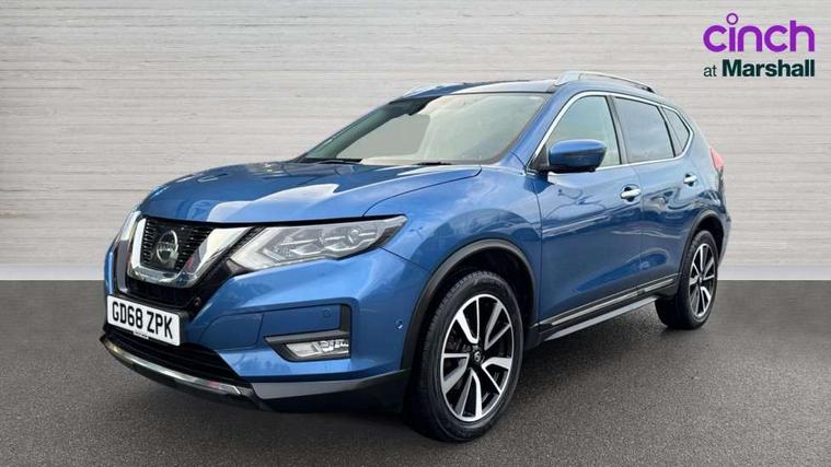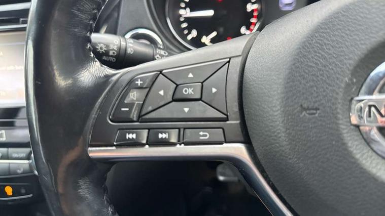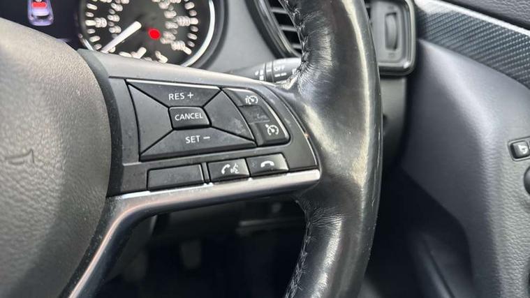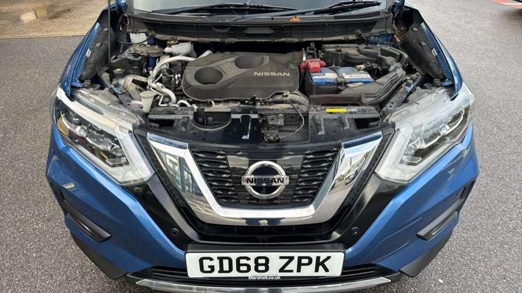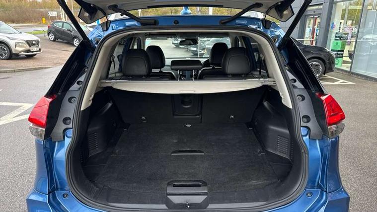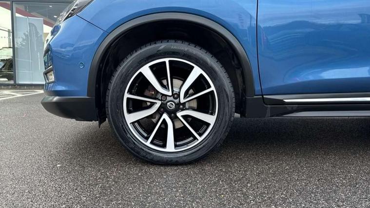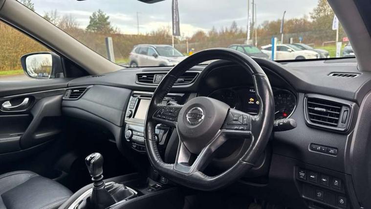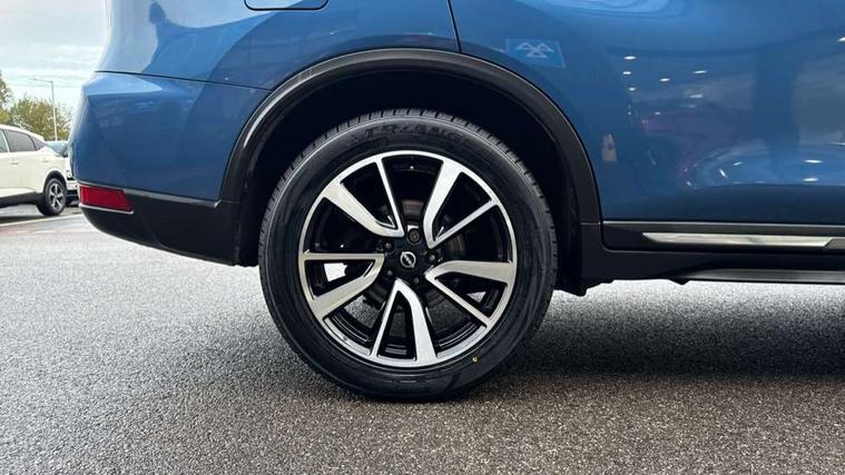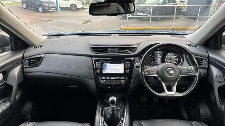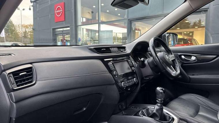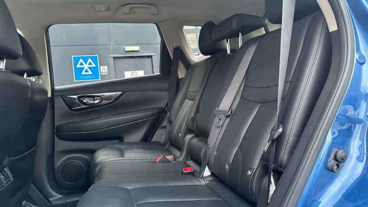 Full size spare wheel, Alarm, Immobiliser, Intelligent Key, Remote central locking, Audio remote control in steering wheel, Bose premium 8 speaker system, DAB Digital radio, Radio/CD, Smartphone apps, USB/aux input socket, 3 point seatbelts on all seats, ABS, Child locks on rear doors, Driver and passenger airbags, EBD + Brake Assist, Electronic parking brake, ESP + traction control, First aid kit, Front and rear curtain airbags, Hill hold assist, Intelligent emergency braking with pedestrian recognition, Seatbelt warning, Tyre pressure monitoring system, Warning triangle, Adaptive front lighting system, Auto dimming rear view mirror, Automatic headlights, Automatic rain sensing wipers, Black honeycomb front grille, Body colour door mirrors, Chrome door handles, Chrome side mouldings, Chrome window surround, Electric folding door mirrors, Electric heated door mirrors, Front and rear power windows, Front fog lights, High beam assist, LED daytime running lights, LED Headlights, Panoramic sunroof, Rear privacy glass, Satin silver roof rails, Shark fin roof aerial, 3 rear headrests, 60/40 split rear bench seat, Centre console storage box/armrest, Configurable luggage board system, Dual zone climate control, Electric adjustable front seats including height adjust, Front and rear door pockets with bottle holders, Front cupholders, Heated front seats, Heated rear seats, Heated steering wheel, Height adjustable front headrests, Individual rear reading lights, Isofix child seat attachment, Leather steering wheel and gear knob, Lumbar support, Pollen filter, Rake/reach adjustable steering wheel, Rear armrest, Synthetic leather instrumental panel inserts, Synthetic leather knee pad, 5" TFT driver information centre, Around View Monitor, Attention assist, Automatic tailgate opening, Blind spot monitoring, Bluetooth phone integration system, Cruise control + speed limiter, Engine start button, Front and rear parking sensors, Intelligent parking assist, Lane departure warning system, Moving object detection, Nissan connect sat nav system, PAS, Rear cross traffic alert, Traffic sign recognition, Trip computer,