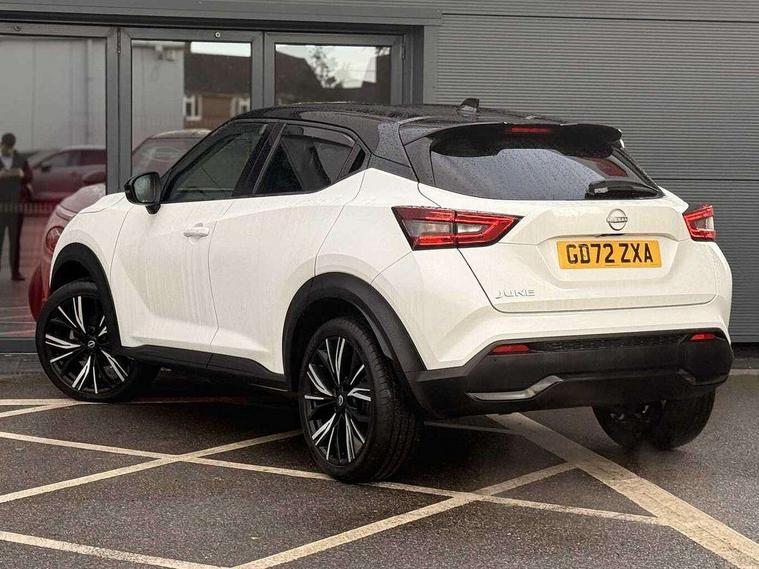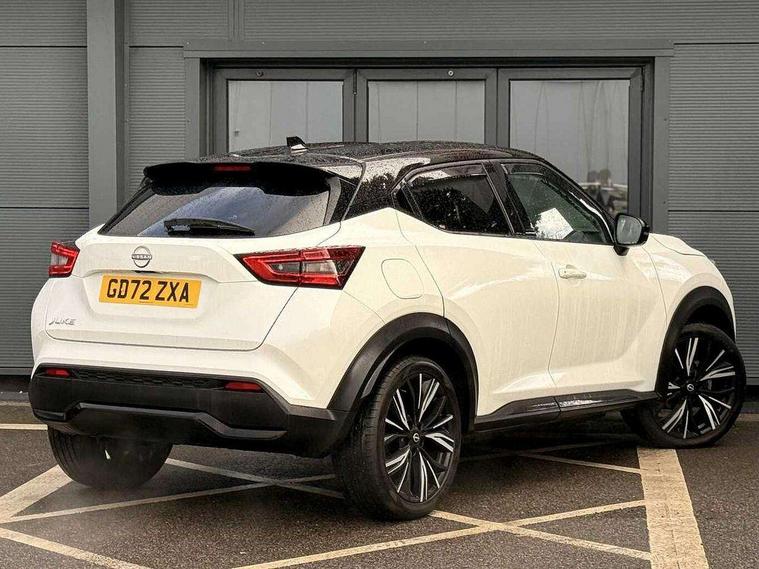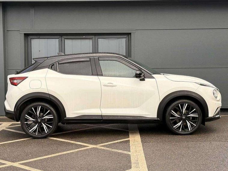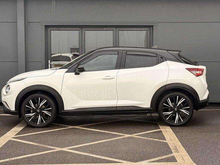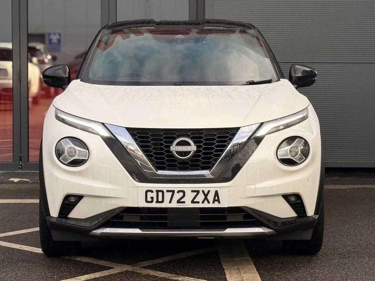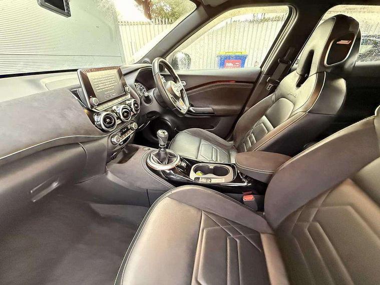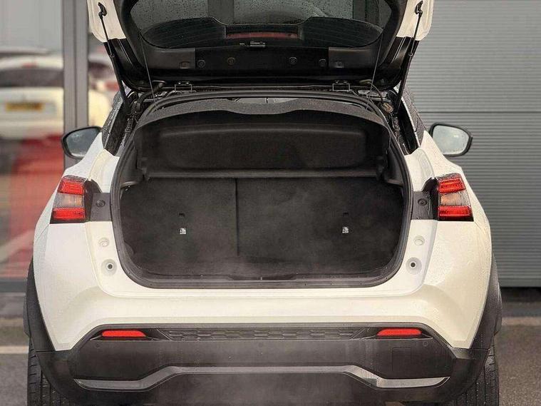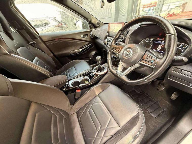 7" full colour TFT screen combimeter, Apple CarPlay and Google Android auto, Drive modes select (Eco, normal and sport), Emergency and breakdown call, Front parking sensor, Idle start/stop system, Intelligent lane intervention, Lane departure warning system, Nissan connect 8" touch screen entertainment system, Nissan connect nav with TomTom traffic, Nissan connect services and Wifi connection, Outside temperature sensor, Power Steering, Rear parking sensor, Traffic sign recognition, Trip computer, Voice recognition, Gasoline particulate filter, 10 Bose speakers 6 speakers and 2 headrest speakers for driver/passenger seats, Bluetooth system, USB, Aux-in and 12V socket, Bose personal sound stage control, DAB Digital radio, Rear console USB port, Auto dimming interior rear view mirror, Auto headlights, Automatic hazard signal with emergency stop signal, Body colour bumpers, Body colour door handles, Electrically adjustable door mirrors with integrated indicators, Follow me home headlights, Front and rear electric window with one touch driver window, Heated and auto folding door mirrors, High beam assist, LED daytime running lights, LED front fog lights, LED headlamps, LED rear fog lamp, LED rear lamps, Rain sensor windscreen wipers, Rear privacy glass, Rear side wing doors, Rear wiper, Satin silver front bumper finisher, Thermaclear heated windscreen, Three blink turn signal, 3 height adjustable rear headrests, 3 seat bench in 2nd row, 60/40 split folding rear seat, Automatic climate control, Card holder on driver sunvisor, Door ambient lighting, Driver and passenger sliding and reclining seats, Driver seat back pocket, Driver side rear coat hanger, Driver/passenger sunvisors and vanity mirrors, Front and rear cabin lights, Front armrest, Front door pockets with bottle holders, Front head restraints, Front passenger isofix child seat anchorage point, Front/rear passenger grab handles, Gear console ambient circle lighting, Grey synthetic leather kneepad, Heated front seats, Height adjustable driver's seat, Height adjustable passenger seat, Internal chrome door handles, Leather gearshift knob, Leather steering wheel, Luggage board, Luggage space lighting, Monoform sporty seats, Multifunction steering wheel, Passenger seat back pocket, Rear door bottle holders, Single front passenger seat, Telescopic steering wheel adjustment, Two cupholders in front centre console, Two rear isofix child seat anchorage points with top tether, Welcome light and console tray ambient lighting, Advanced safety shield pack - Juke, ABS with EBD and brake assist, Active ride control, Active Trace Control, Driver and passenger airbags, Driver and passenger side airbags, Electric handbrake with auto hold function, Electronic Stability Programme (ESP), Front and rear curtain airbags, Height adjustable seatbelts, Hill start assist, Intelligent emergency braking with pedestrian and cyclist recognition, Rear door child safety locks, Seatbelt reminder for driver/front passenger and rear seats, Single tone horn, Three 3 point rear seatbelts, Traction control, Tyre pressure monitoring system, VDC Dynamic Vehicle Control, Ventilated rear brake discs, Alarm, Immobiliser, Intelligent key and start push button with walk away lock and approach unlock functions, Remote central locking, 19" Akari alloy wheels,