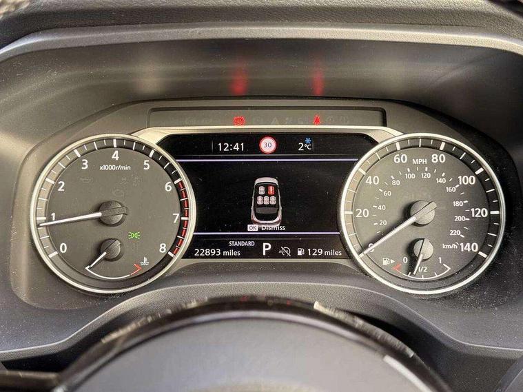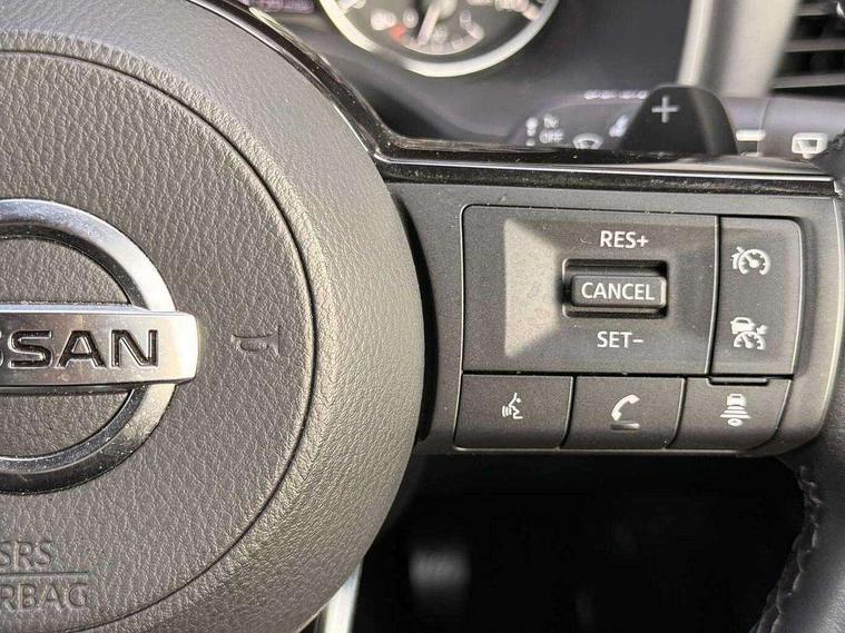 Android auto/Apple CarPlay (Wired), Blind spot warning, Drive modes (sport, normal, eco), Electric speed sensitive power steering, Emergency and breakdown call, Full Digital 12.3" TFT Digital Combimeter, Google maps services - search, weather, 3D maps and Google street view, Idle stop/start system, Intelligent around view monitor, Intelligent Cruise control (ICC), Intelligent driver alert system, Intelligent forward collision warning, Intelligent lane intervention, Lane departure prevention, Lane departure warning system, Maximum speed limiter, Moving object detection, Nissan connect 12.3 inch touchscreen infotainment system, Nissan connect navigation, Push button starter, Rear cross traffic alert, Rear parking sensors, Rear view camera, Remote control services - door locks, lights, horn and car locator, Telematics - notifications and connectivity services, TomTom live traffic services, Traffic sign recognition with legal speed adjustment, Trip computer, Virtual personal assistant and firmware over the air capability, Wireless apple carplay, 6 speakers, AM/FM audio system with DAB, Bluetooth audio streaming, Front USB connections (Type-A and Type-C), Rear USB charging only ports (Type-A and Type-C), Auto dimming rear view mirror, Auto rear wiper when reversing, Automatic hazard signal with emergency stop signal, Body colour mirror caps, Body coloured door handles, Bodyside mouldings, Chrome side window finisher, Door handle with button, Dusk sensor, Electric auto folding door mirrors, Electrically adjustable and heated door mirrors with LED turn indicator, Follow me home headlights, High beam assist, Intelligent auto headlights, LED daytime running lights, LED Headlights, LED rear lights, One touch front and rear electric windows with remote opening and closing, Partially body coloured bumpers, Privacy glass, Rear bumper with graphite insert, Rear reversing light (bulb lighting), Rear roof spoiler, Rear side wing doors, Rear styling plate, Shark fin antenna, Splash free rain sensing wipers, Super UV and infrared cut glass, Three blink turn signal, 12v power socket in dashboard and luggage, 2 way electrical driver lumbar adjustment, 2x Rear coat hooks, 3 bench rear seats in 2nd row, 3 rear headrests, 4 folding assist grip, 6 Luggage hooks - 4 on floor, 2 on side, 6-way manually adjustable driver's seat, 60/40 split folding rear seat bench, Ambient lighting around centre console, Centre console storage tray, Chrome interior door handles, Cloth monoform upholstery, Driver and front passenger sunvisors with illuminated vanity mirrors, Driver seat back pocket, Dual zone automatic climate control with pollen filter, Front and rear door storage, Front centre console and armrest, Front cupholders x 2, Front door with bottle holders, Glovebox with light, Hard trunk cover, Height adjustable front headrests, Height adjustable passenger seat, Leather steering wheel, Luggage board system, Luggage space lighting, Manually adjustable passenger (slide recline + lifter), Multifunction steering wheel, Passenger seat back pocket, Rear armrest with 2 cupholders, Rear door bottle holders, Single front passenger seat, Soft PVC kneepad, Steering wheel gearshift paddles, Steering wheel switches, Sunglasses holder, Tilt/telescopic adjustable steering wheel, Two rear isofix child seat anchorage points with top tether, Welcome light and console tray ambient lighting, 3x3 point rear seatbelt pretensioners + load limiters, ABS with EBD and brake assist, Active brake limited slip, Auto hold function, Child locks on rear doors, Curtain and front side, far side airbags, Driver and passenger airbags, Driver, passenger and 2nd row rear seat belt reminder, Electronic parking brake, Front seatbelt pretensioners + load limiters, Height adjustable front seatbelts, Hill start assist, Intelligent blind spot intervention, Intelligent front emergency braking with pedestrian, cyclist recognition and junction assist, Intelligent rear automatic braking, Tyre pressure monitoring system, Vehicle dynamic control, Capless fuel filler, Engine immobiliser, Nissan i-key, Remote central door locking with deadlocking, Thatcham Cat.1 alarm, Interior instrumental panel B finisher, 18" Diamond cut alloy wheels, Tyre puncture repair kit,