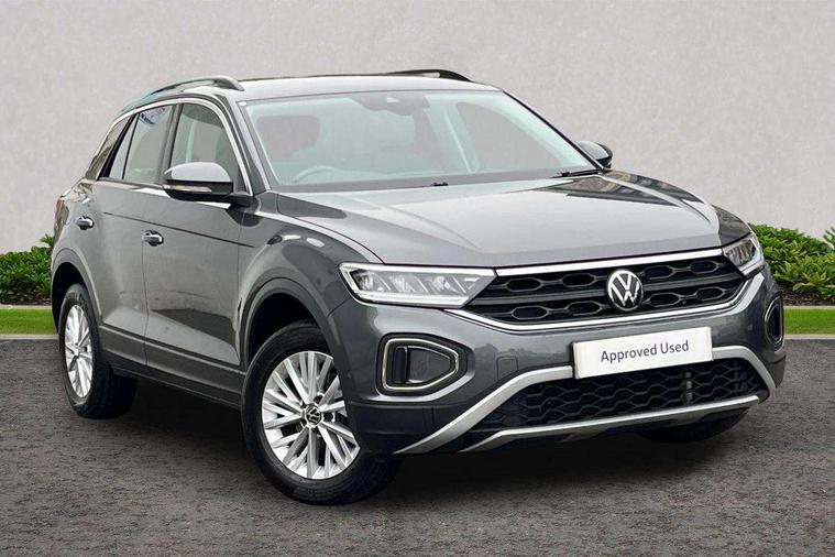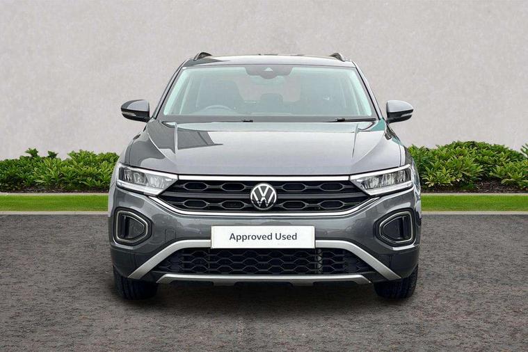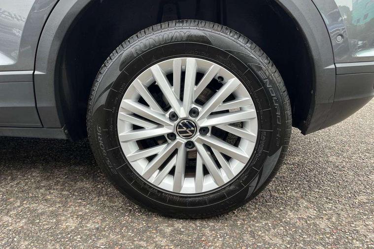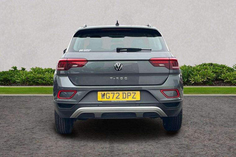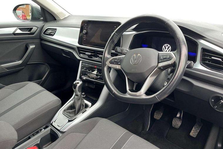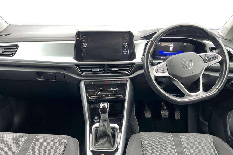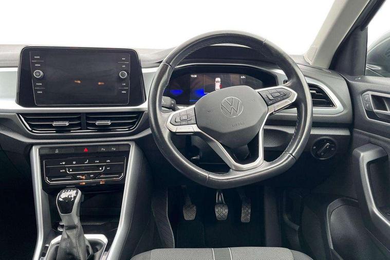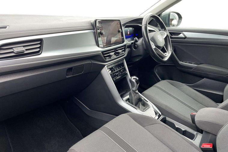 Bluetooth mobile phone interface, Driver alert system with fatigue detection, Driver tips and journey analysis, Emergency call service, Lane keeping system Lane Assist, Modified key software - reduce switch off time for key status change to Long no motion, Online services, Park assist including front and rear parking sensors, Power assisted speed sensitive steering, Service interval indicator, Tailgate/trunk lid release from outside, Think blue trainer driver tips and journey analysis, Warning sound and light for front seatbelts unfastened, Wireless app connect, Battery regeneration during braking, Front shock absorption, Rear shock absorption chassis with increased ride height, Start/stop function with battery regeneration, DAB Digital radio, Diversity antenna for FM reception, Front and rear 6 speakers, Music playback - MP3, WMA and AAC files, Premium USB cable in choice of either Apple or Android smartphone compatibility, SD card slot, Simultaneous pairing of 2 compatible mobile devices, Title and cover art display, We Connect and We Connect Plus functionality, 3rd brake light, Auto dimming interior rear view mirror, Automatic hazard lights activation under emergency braking, Automatic headlight control with LED separate daytime running lights with coming/leaving home function, Black roof rails, Body coloured bumpers and radiator grille with chrome trim and front fog lamps with chrome bezel, Body coloured exterior mirror housings and door handles, Extended roof spoiler, Exterior mirrors aspherical on driver side, convex on front passenger side, External USB type C socket and charging sockets, Front windscreen wiper with intermittent wipe and 4 position delay, Heated rear window, LED Headlights, LED rear combination lamps, LED rear number plate lights, LED tail lamp rear comination lamps, Power windows with comfort operation and circuit breaker, Rain sensor, Rear exhaust tailpipe, Rear fog light on one side and reversing lights on both sides, Rear side wing doors, Rear wash/wipe with intermittent wipe setting, Remote electrically foldable door mirrors, puddle lights and reverse activated passenger's door mirror, 12V power socket in centre console, 3 rear head restraints, 3 seat bench in 2nd row, 4 load lashing points in luggage compartment, Air care climatronic air conditoning system with active combination filter and 2-zone temperature control, Ambient lighting with mirror logo projection, Cloth upholstery, Door and side trim panel in cloth, Drawer under drivers seat, Driver/front passenger seat height adjustment, Front centre armrest, Front comfort sports seats, Front cupholders x 2, Front reading light, Instrument lighting, white adjustable panel illumination, Interior light delay, Isofix child seat preparation, Leather gearshift handle, Load-through provision with cup holder when folded down ('Unsplit rear seat bench, split folding backrest, with centre armrest), Luggage compartment lighting, Lumbar support for driver's and front passengers seat, Non-folding front passenger seat backrest, Single front passenger seat, Storage compartment in left and right luggage area, Storage compartment in rear doors, Storage compartments in driver and front passenger doors, Sunvisors with illuminated vanity mirrors, Variable boot floor, height adjustable and removable, Driver assistance pack without proactive passenger protection - T-Roc, 3 point height adj front seatbelts + pretensioners, 3 point seatbelts in outer rear with ECE label, ABS, Child locks on rear doors, Driver and front passenger airbag with front passenger airbag deactivation, Driver and front passenger safety-optimised head restraints, Drivers seatbelt reminder, Electronic parking brake, Electronic Stability Control (ESC) inc EDL (Electronic Differential Lock) and ASR (Traction Control), Front and rear passengers curtain airbag system including front side airbags, Front assist with city emergency braking and pedestrian monitoring, Front disc brakes, Front seat side impact airbags, Hill start assist, Predictive pedestrian protection, Rear disc brakes, Single tone horn, Tyre pressure loss indicator, Volkswagen roadside assistance, Alarm with interior protection, Anti-theft alarm system with interior monitoring, backup horn, and towing protection, Remote central locking with SAFELOCK, radio remote control with 2 remote control folding keys, Pewter matt decorative inserts for intrument panel, centre console and door panels at the front, Trims for alloy wheels,