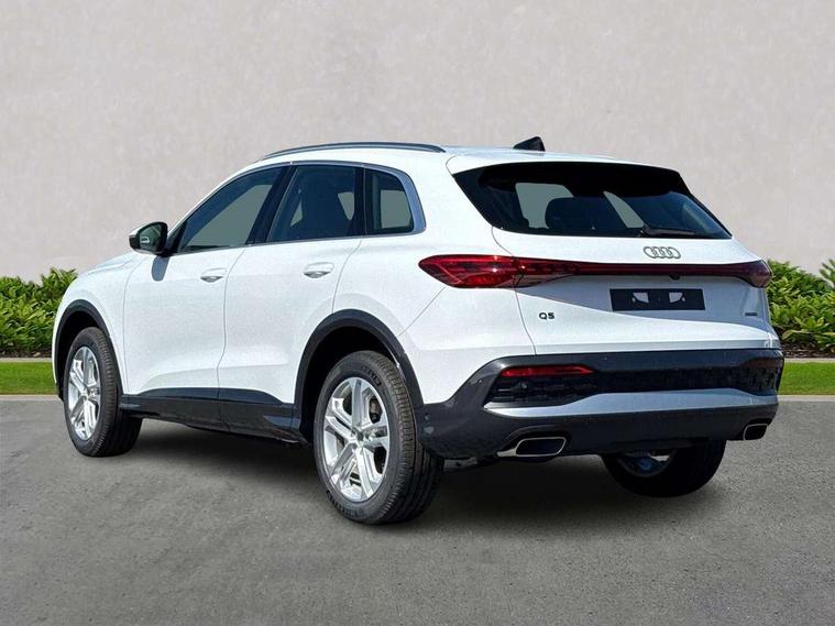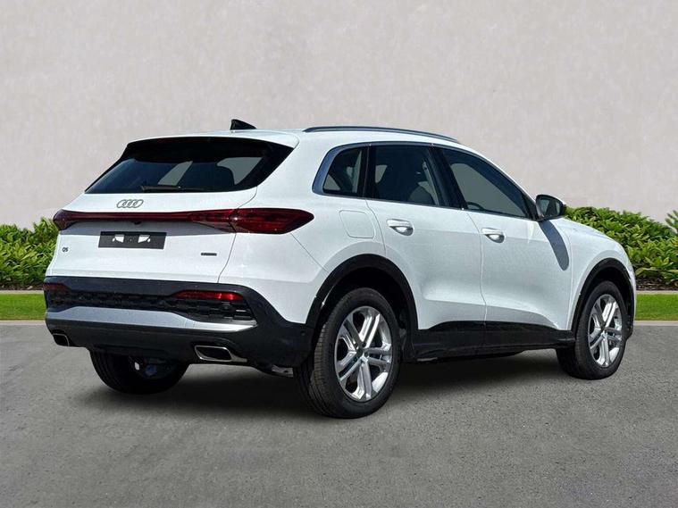 Adaptive cruise control, Advanced driver attention alert, Audi application store, Audi connect emergency call and service, Audi drive select, Audi smartphone interface, Audi virtual cockpit plus with 11.9" OLED colour display, Camera based traffic sign recognition, Fatigue monitor, Front cross traffic intersection assist, Lane departure warning system, MMI navigation plus with high resolution 14.5" OLED touchscreen colour display, Park assist plus, Parking system plus with 360 display, PAS, Reversing camera, Swerve assist and turn assist, Traffic sign based speed limiter, Comfort suspension, 2 USB-C ports in both the front and rear, Audi sound system impressive sound with 10 loudspeakers including centre speaker and subwoofer, 6-channel amplifier with a total output of 180 watts, DAB Digital radio, Smartphone compartment with wireless charging, Aluminium roof rails, Auto dimming rear view mirror, Body coloured door mirrors, Coming/leaving home lighting function, Contrast bumpers in Volcano grey metallic paint finish, Electrically adjustable heated and folding + automatically dimming exterior mirrors, Front and rear electric windows, Front door sill trims with aluminium inlays, illuminated, Headlight cleaning system, Heated rear window, High beam assist, High gloss window surrounds, LED headlights plus incl. digital DRL, dynamic coming and leaving home function with turning/all weather/motorway/manouevring and intersection lights, LED rear lights pro incl. dynamic rear indicators and illuminated light strip with animated coming and leaving home function, LED third brake light, Logo projection light in exterior mirrors, Rear and side windows with heat insulating glass, Rear side wing doors, Rear wash/wipe, Towbar preparation, Windscreen with acoustic glazing, 3 rear head restraints, 3 seat bench in 2nd row, 40:20:40 split folding rear seat bench with centre armrest and cup holders, Comfort centre armrest, Deluxe 3 zone electronic climate control, Front and rear floor mats, Front seats with manual adjustment for position and 4-way electric lumbar support, Front sport seats with integrated head reastrains, Heated front seats, i-Size child seat mounting on the front passenger side and i-Size and top tether on the outer rear seats, Interior trim in aluminium look, Luggage compartment lid, electrically opening and closing, Manual steering column adjustment, Rock grey cloth headlining, Single front passenger seat, Softwrap in leatherette, Twin leather upholstery, Twin spoke leather steering wheel with multi-function buttons with touch control, shift paddles and trim in chrome look, Ambient lighting package plus - Q5, ABS, Acoustic vehicle alerting system, Driver and front passenger airbag with passenger airbag deactivation, Electric child safety locks, First aid kit with warning triangle and high visibility vests, Front emergency brake assist, Front side airbags with head airbag system and front interaction airbag, Hill hold assist, Rear seat occupant reminder, Tyre pressure loss indicator, Anti theft alarm, Anti-theft wheel bolts, Remote control key with SAFELOCK and keyless go, Accent surfaces and control buttons in gloss black, Black dashboard with contrast stitching, Matt brushed aluminium inlays, Steel grey seat stitching, Upper and lower interior elements in artificial leather, Tyre repair kit,