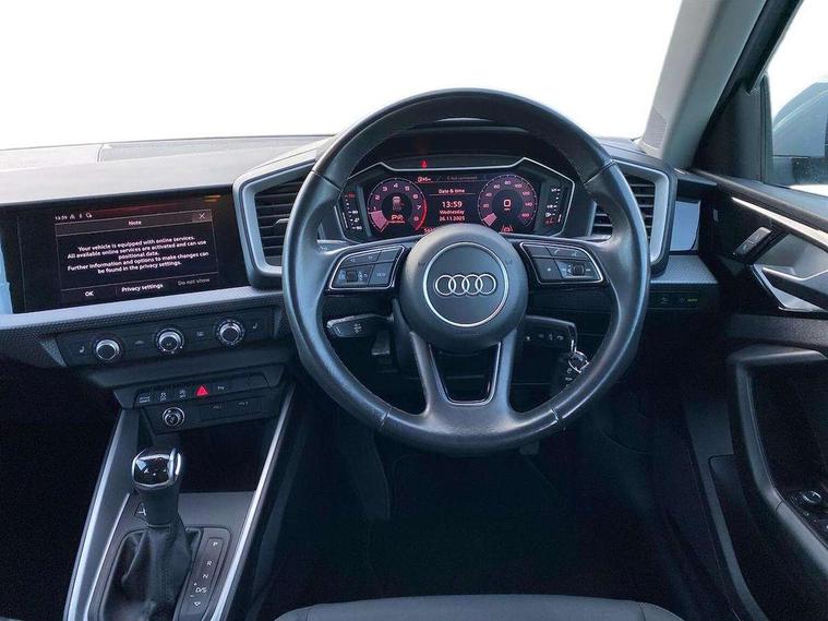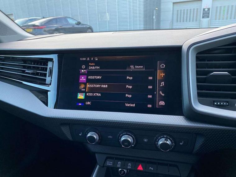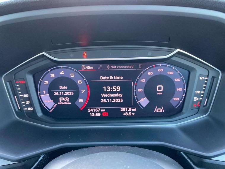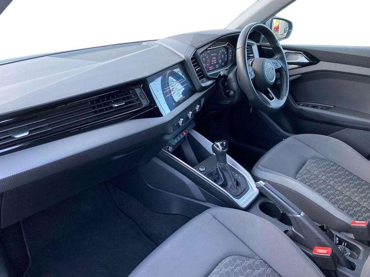 10.25" Digital instrument cluster display classis style instrument dials + speed, odometer, time, outside temperature, telephone menu + fuel level warning, Audi connect safety emergency and service including E-call, Audi drive select - power steering assistance + engine + gear shift 3 preset modes (auto, dynamic, efficiency and an Individual mode), Audi smartphone interface with connect compatible smartphone via USB directly MMI display + Nav, music, third party apps controlled via MMI controller, Automatic start/stop system, Bluetooth interface, Cruise control, Driver's information system, Electromechanical power steering, Lane departure warning system, Service interval indicator, Speed limiter, Voice control system, Washer fluid level indicator, Dynamic suspension, 1 x SDXC card reader, 2 x USB type C connection points, DAB Digital radio, MMI radio plus with 8.8" colour MMI display screen and MMI touch, Auto dimming rear view mirror, Body coloured bumpers, Body coloured door mirrors, Electric front and rear windows, Electrically adjustable, heated, folding door mirrors with integrated LED side indicator, Front side air inlets in grained matt black and C frame in titanium black, Heat insulating glass windscreen and side windows, Heated rear windscreen, LED headlights with LED rear lights + dynamic rear indicators + headlight adjustment and high beam, turning light + LED daytime running lights, Radiator grille and rear diffuser in matt titanium black, Radiator protective grille frame in matt aluminium silver, Rain and light sensors, Rear fog lights, Rear wiper, Scandium grey tailpipe trim, Side front spoiler lips in grained matt black, 12V socket in centre console with two cup holders, 3 rear seats with headrests, 40:60 Split folding rear seat or folded fully, Door sill trims with aluminium inlay, Driver and passenger seat with manual height adjust with forward and backwards adjustment, Front head restraints, Front/rear floor mats, Height and reach adjustable steering wheel, ISOFIX child seat mounting for front passenger and outer rear seats including top tether attachment point of outer rear seats, Leather gear knob with aluminium trim, Leatherette handbrake grip, Luggage compartment light with front and rear reading lights, Manually adjustable lumbar support in front seats, Novum cloth upholstery with front sport seats, Titanium grey cloth headlining, Luggage compartment pack - A1, 3x3 point rear seatbelts, Audi pre-sense front with pedestrain and cyclist recognition, Brake assist function, Driver and front passenger airbag with front side and head airbags, Electronic Stability Control including ABS, EBD, ASR and EDL, Front passenger airbag deactivation switch, Hill hold assist, Seatbelt height adjustment for front seats, Seatbelt monitoring, Tyre pressure warning light, Warning triangle and first aid kit, Anti theft alarm, Anti theft wheel bolts and loose wheel warning, Immobiliser, Remote central locking with 2 foldaway keys, Aluminium trim for control switches, air vents and digital instrument cluster, Silver grey accent areas including air vents, door handle recesses and centre console in diamond paint finish, Slate grey inlays polygon structure in fine paint finish,
