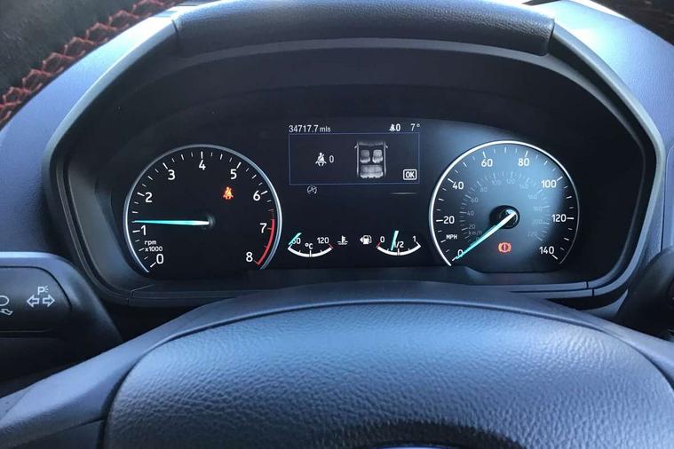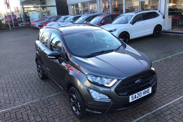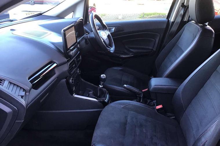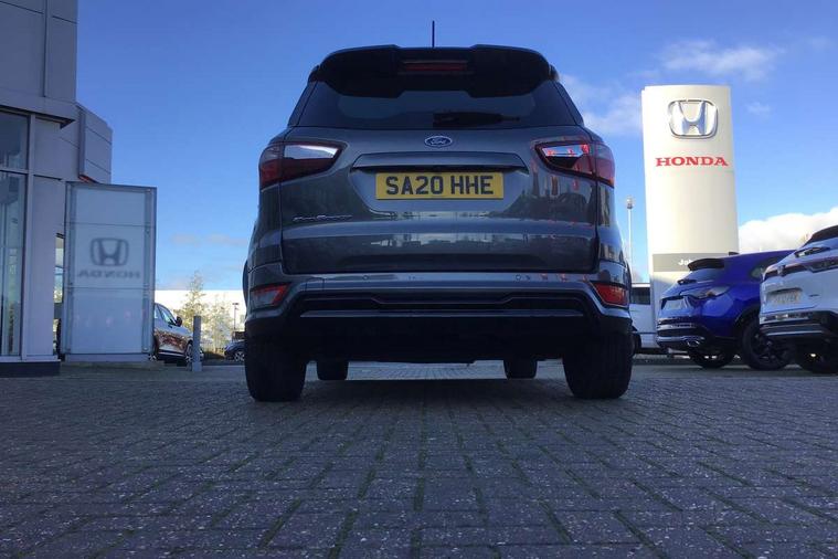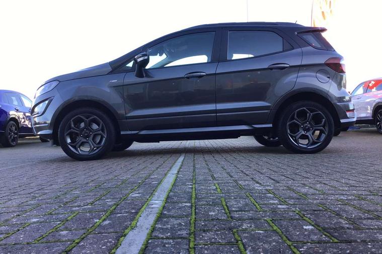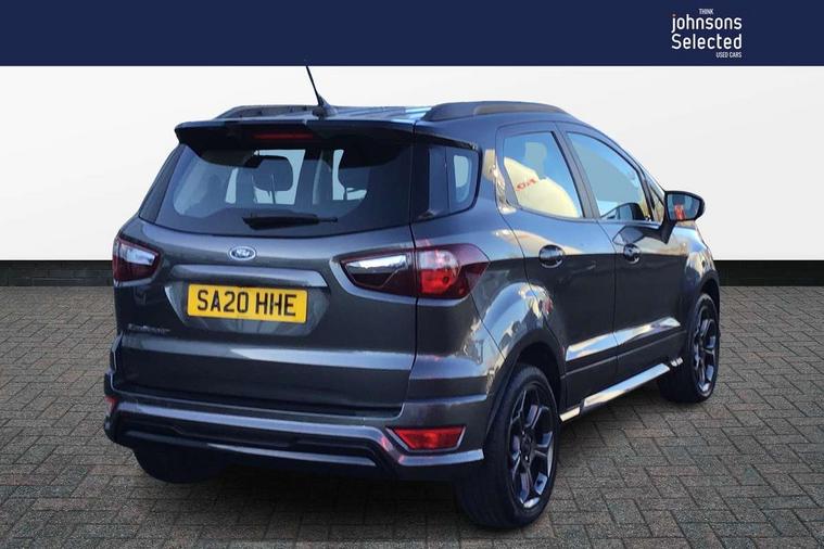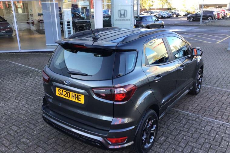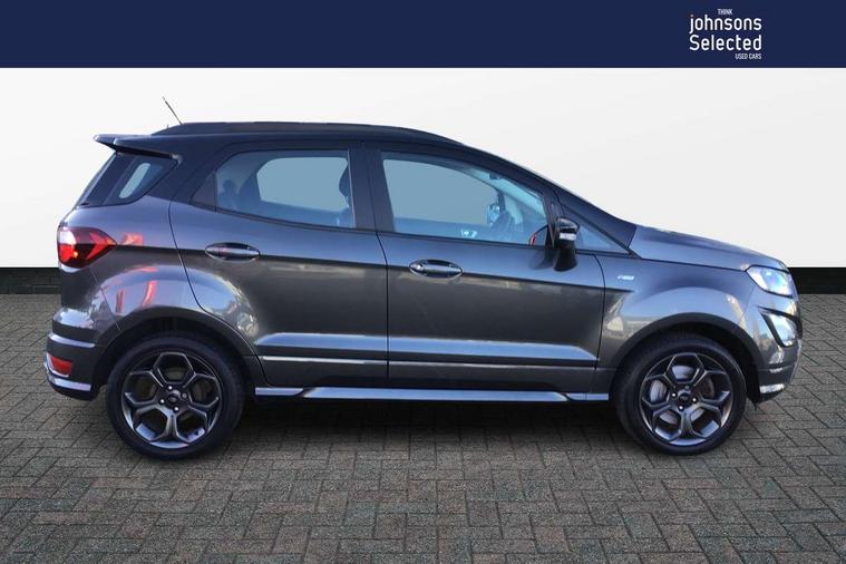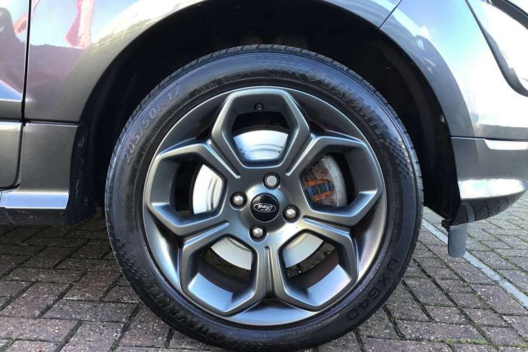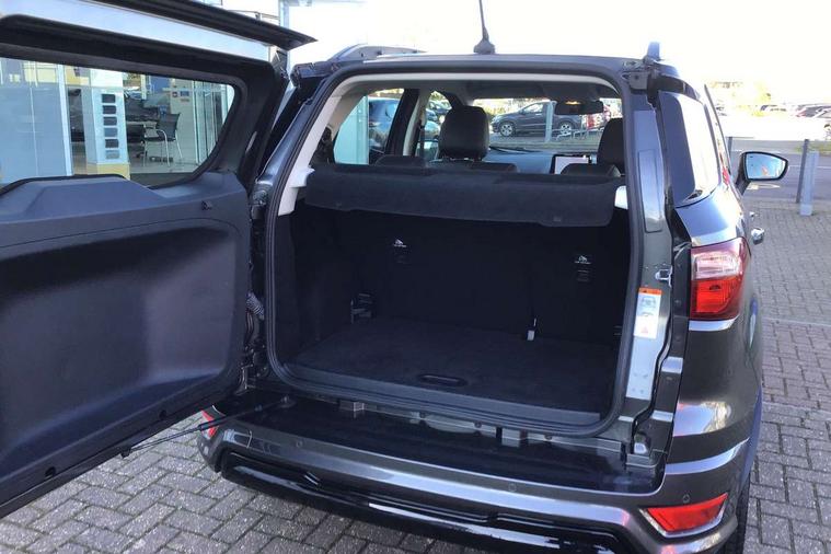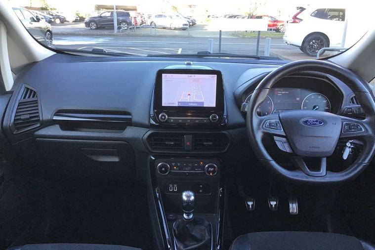 Cruise control with Intelligent speed assist, Easy fuel capless refuelling system, Ford pass connect embedded modem, PAS, Rear parking sensors and rear view camera, SYNC 3 nav system with DAB radio, 8" screen, voice control, emergency assistance, Apple car play/Android auto, 2x USB, Ford pass connect, Traffic sign recognition, Trip computer, Sports suspension, 7 speakers, Steering wheel mounted audio controls, 'Quickclear' heated windscreen/heated washer jets, Auto dimming rear view mirror, Automatic headlights, Black roof rails, Body colour door handles, Body coloured bumpers, Electrically adjustable and heated door mirrors, Front door threshold plates with ST-Line logo, Front fog lights, Headlight levelling control, Large rear spoiler, Power front and rear windows with global opening/closing, Rain sensing front wipers, Rear wiper, ST-Line body styling kit, ST-Line front grille, 12V socket in front and rear, 60/40 split rear seats, 7 shade adjustable ambient lighting, Centre console with sliding front armrest, Cooled glovebox, Courtesy lights with map reading light, Driver seat height/lumbar adjust, Driver's side glovebox, Driver/passenger sunvisors and lidded vanity mirrors, EATC - Electronic Auto Temperature control, Folding grab handles, Front head restraints, Front seat back map pockets, Front/rear floor mats, Illuminated glovebox, Illuminated luggage compartment, Isofix system on outer rear seats, Luggage compartment carpet, Overhead console with sunglasses holder, Partial leather upholstery, Rake adjustable rear seats, Reach + rake adjustable steering column, Rear headrests, Sensico trimmed steering wheel, handbrake and gearshift gaiter with red stitching, Stainless steel sports pedals, Storage drawers under front seats, Tie down hooks, Variable boot floor, 3x3 point rear seatbelts, ABS, Autonomous emergency braking, Child locks on rear doors, Curtain airbags, Driver airbag, Drivers knee airbag, Electronic Stability Programme with hill launch assist, Front passenger airbag deactivation, Front side airbags, Passenger airbag, Pre collision assist system, Seatbelt reminder for driver and front passenger, Traction control, Tyre pressure monitoring system, Immobiliser, MyKey system, Remote central locking, Thatcham 1 volume sensing alarm, Low rolling resistance tyres, Tyre inflation kit,