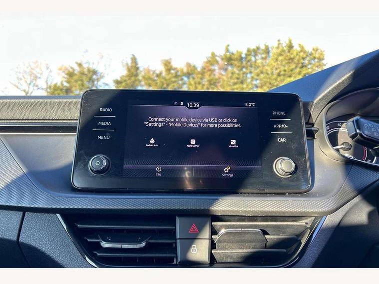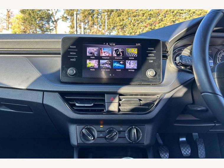 Bluetooth system, E-call, Front assist system, PAS, Service indicator, Speed limiter, Wireless Smartlink for Apple CarPlay (wired for Android Auto), 8 Speakers, Auxiliary input socket, DAB Digital radio, Body colour bumpers, Body colour door mirrors and handles, Chrome grille surround, Dimming rear view mirror with black surround, Electrically adjustable and heated door mirrors, Front and rear electric windows, Headlight range control, Heated rear window, LED rear lights - low functionality, LED third brake light, Light sensors, Rain sensor, Rear fog lights, Rear side wing doors, Rear wiper, 12V Accessory socket in centre console, 3 seat bench in 2nd row, Chrome inner door handles, Cloth upholstery, Front head restraints, Glove compartment with illumination, Ice scraper, Isofix child seat fittings on outer rear seats, ISOFIX on front passenger seat, Manual lumbar support for front seats, Rake/reach adjustable steering wheel, Reading lights, Single front passenger seat, Sun visors with illumination on front passenger, Textile floor mats, Third rear headrest, Top tether for front passenger seat, Umbrella in driver's door, 3x3 point rear seatbelts, Airbags - driver and front passenger, ESP, Front passenger airbag deactivation switch, Front side airbags with curtain airbags, Hill hold control, Manual parking brake, Manual rear child locks, One tone horn, Rear disc brakes, Seatbelt reminder for driver an co-driver, Traction control, Tyre pressure monitor, Anti-theft alarm system with interior monitoring, backup horn, towing protection and remote central locking with SAFE system, Anti-theft wheel bolts, Electronic engine immobilizer,