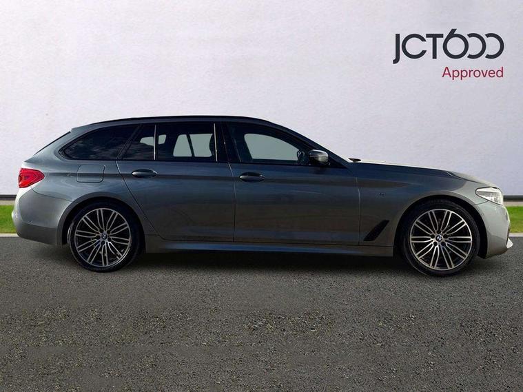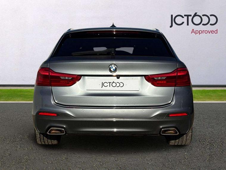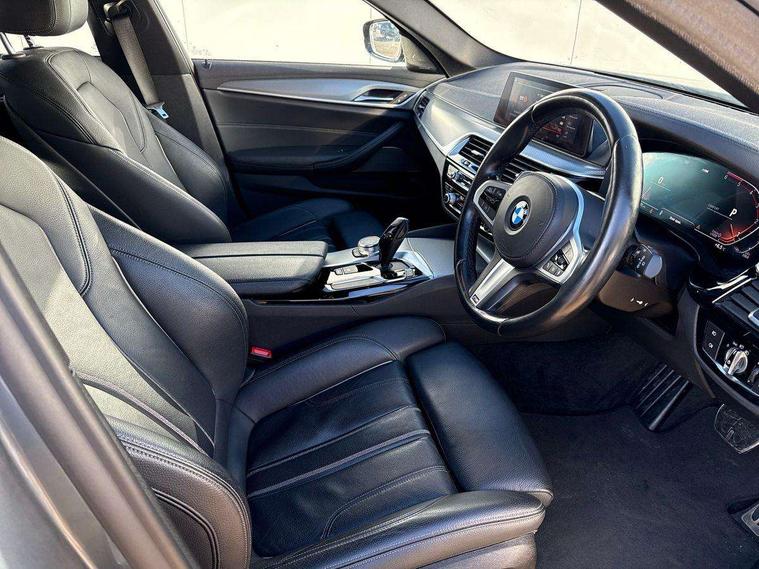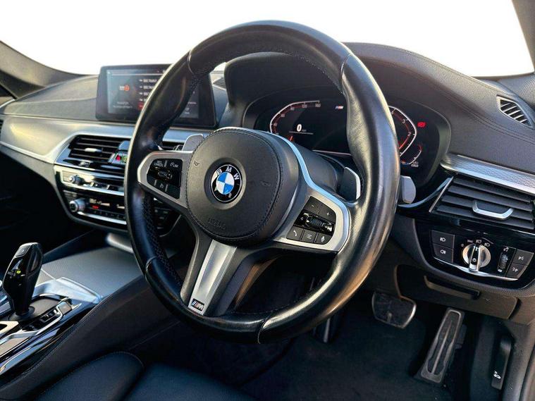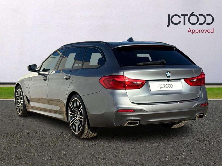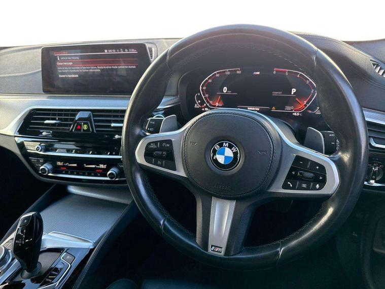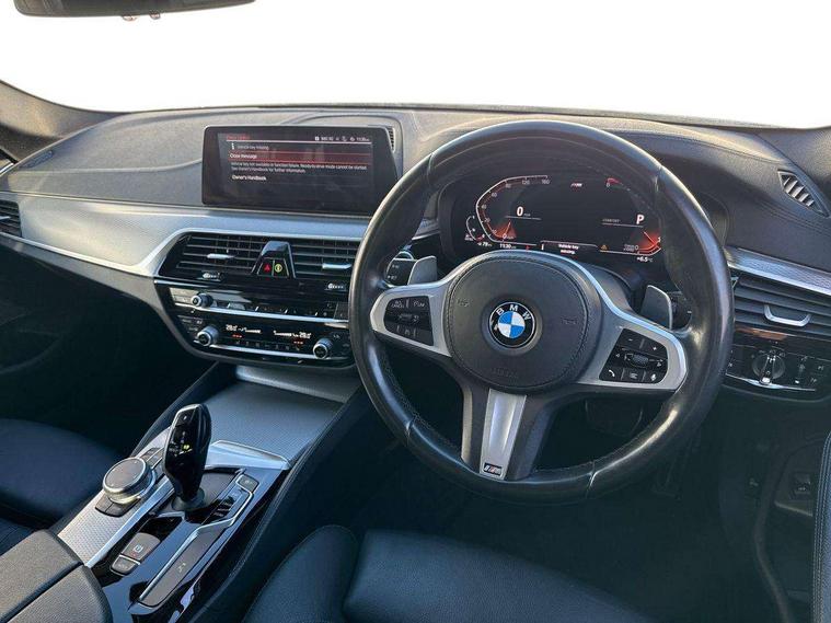 20GB hard disc drive (HDD) memory, BMW Live Cockpit Professional sat nav system including 10.25" high resolution display and Intelligent Voice Assistant, BMW Online services, BMW Teleservices, Brake force display, Control display - 10.25" colour touch sensitive display screen, iDrive touch controller with shortcut buttons, Navigation System Professional Multimedia, Oil sensor for level and grade, On board computer inc. average speed, fuel consumption, liquid crystal Info display, journey computer, outside temperature display, personal profile, Powered tailgate operation, Recovery braking system, Service interval indicator, Voice control system, 48V Mild hybrid technology, Anti roll bar front and rear, Automatic transmission with gearshift paddles, Diesel particulate filter, Drive performance control with ECO PRO comfort + sport mode, M sport suspension, Auxiliary input socket, Bluetooth audio streaming, BMW professional radio with MP3 + DVD playback capability, DAB Digital radio, Favourite buttons, Acoustic glazing, Active air stream kidney grille, All round anti-corrosion system, Auto dimming rear view mirror, Body colour door handles, Body coloured bumpers, Body coloured door mirrors, Body coloured side sills, Door handle illumination, Dynamic brake lights with LED technology, Electric front and rear windows with fingertip open/close + anti-trap facility and comfort closing function, Electrically adjustable and heated exterior mirrors includes integrated direction indicators, Follow me home headlights, Heated windscreen washer jets, Independent opening for tailgate window, Interior rear view electrochromatic mirror with automatic anti dazzle function, LED daytime running lights, LED fog lights, Left and right single chrome quadrilateral exhaust tailpipes, M aerodynamic bodystyling, Rain sensor with automatic headlight activation, 12V socket in luggage compartment, 3 Spoke M sports leather steering wheel, 40/20/40 split folding rear seats with additional mechanism in luggage compartment, Ambient interior lighting with 6 selectable light designs, Anthracite headlining, Automatically retracting and lowering load cover, Battery in luggage with jump start facility, Door sill finishers with BMW designation, Front and rear armrests integrated in door trim + centre console includes storage compartment and rear centre armrest includes 2 cupholders, Front and rear cupholders x 2, Front and rear door sill inlays with illuminated BMW M designation, Front and rear footwell lights, Height and length adjustable steering column and activation via lateral lever on the steering column, Lockable glove compartment with light, M specific floor mats, M specific key, M specific pedals, M specific steering wheel, Multi-function controls for steering wheel, Rear headrests, Retractable luggage compartment dividing net, Through load system, Connected package professional - 5 Series, 3x3 point rear seatbelts, Anti-lock braking system (ABS), Automatic Stability Control (ASC), BMW emergency call, Brake assist function, Brake energy regeneration, CBC - (Cornering brake control), Child seat ISOFIX attachment rear outer seats, Crash Sensor - activation of central locking release, hazard warning light and interior lighting, Deformation zones front and rear with door reinforcements and bumpers that regenerate, Driver/front passenger, rear and side airbags, Driver/Passenger airbags (Impact dependent), DSC - Dynamic Stability Control, Dynamic brake control, Dynamic Traction Control - DTC, Electromechanical parking brake with automatic drive away release and auto hold function, Electronic brake force distribution, Engine drag torque control, Front head restraints with anti-whiplash, Front passenger airbag deactivation, Head airbags for first and second row seats, Hill start assist, Seat belts front inertia reel with pyrotechnical belt latch tensioner, belt force limiter and belt restrainer, Side impact protection, Three inertia reel rear seatbelts, Two tone horn, Tyre pressure monitoring system, Warning triangle and first aid kit, Alarm system with remote control and engine immobiliser, Locking wheel bolts, Remote central locking,