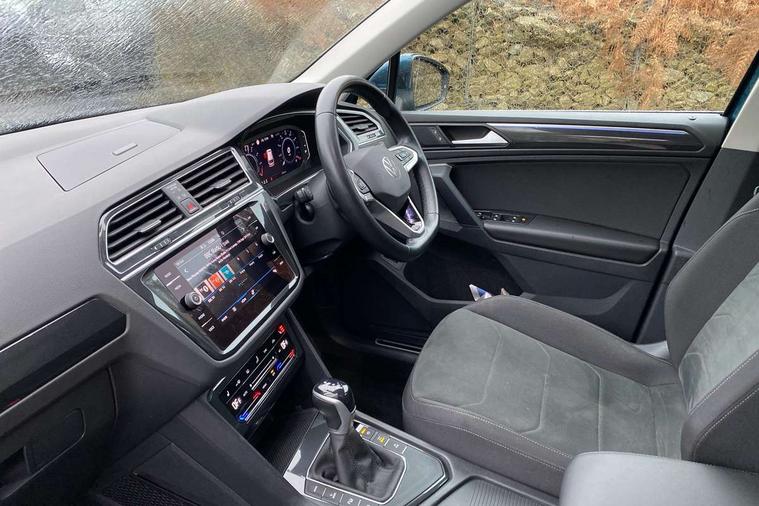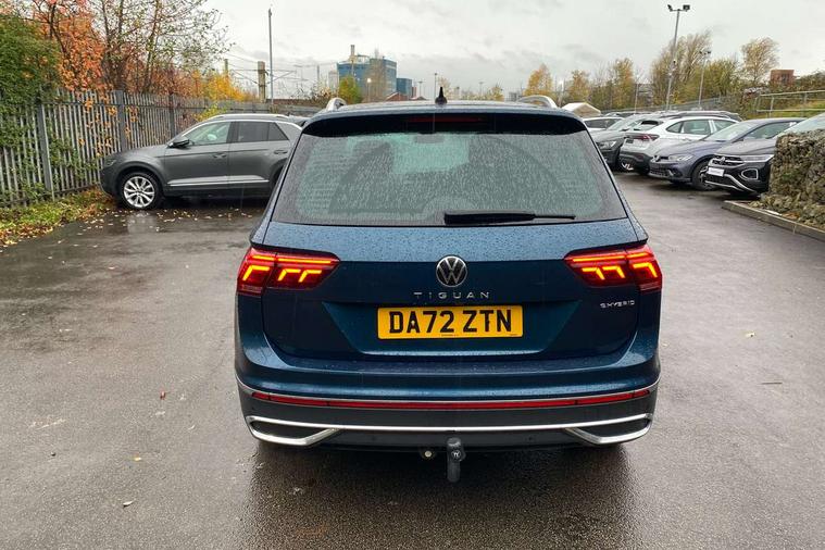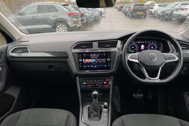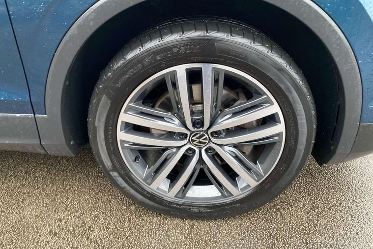 Adaptive cruise control ACC stop and go including speed limiter, App-Connect incl. App-Connect Wireless for Apple CarPlay and Android Auto, Bluetooth phone integration system, Distance control assist, Driver alert system, Driver profile selection, Dynamic road sign display, eCall emergency call system, Electromechanical speed sensitive power steering, Engine start/stop button, Lane keeping system Lane Assist, Lights on warning, Motorised electric tailgate operated via key fob, drivers door and foot movement under tailgate, Multifunction front facing camera, Outside temperature display, Premium multifunction display with multi colour display, Remote control boot opening, Rev counter, Revision / skills operating concept travel assistant, Service interval indicator, Speed limit display, Start/stop system with regenerative braking, Tailgate/trunk lid unlocking from outside, Trip computer, Warning sound and light for doors and tailgate open, Battery regeneration during braking, Charging cable Mode 3 Type 2 / 3 (16A), XDS electronic differential lock for improved traction and handling, 4 X 20 watt output, 8 Speakers, Diversity antenna for FM reception, Radio, SD card slot, Simultaneous pairing of 2 compatible mobile devices, SMS functionality - read, compose and send SMS messages using touch-screen display, Title and cover art display, USB C ports, Aluminium door sill protectors, Auto dimming interior rear view mirror, Automatic headlight control system, Body colour door handles, Body coloured bumpers, Body coloured door mirrors with integrated indicators, Coming/leaving home lighting function, Dynamic headlight range control, Front and rear electric windows, Heated rear window, High level 3rd brake light, IQ light-Adv high beam, Dynamic light assist for LED matrix headlamp+LED separate DRL+DCL, dark red rear LED tech, Poor weather light+ cornering light, Laminated safety glass windshield, heat and sound insulating, LED rear number plate lights, Privacy glass for rear side windows and rear window, Rain sensor windscreen wipers, Rear exhaust tailpipe, Rear fog lamp, Rear side wing doors, Rear windscreen washer and wiper with interval delay, Side and rear windows in heat insulating glass, Tilting and sliding panoramic sunroof with rear panoramic sunroof, Trailer Stability Programme, Windscreen wipers/ intermittent wipe + 4 position delay, 12V outlet in center console rear and in luggage compartment, 12V outlet in front and tray, 2 cup holders in front, 2 LED front reading lights, 2 LED rear reading lights, 3 bench rear seats in 2nd row, 3 rear headrests, 4 load lashing points, 40:20:40 split folding rear seats, Air Care Climatronic 3 zone automatic climate control with enhanced air filter and controls in the rear, Backrest release for left front seat, Climate control unit rear with touch function, Door and side trim panel in foam film and woven fabric, Front centre armrest, Front footwell illumination, Front seats head restraints (x-adjustment), Height adjustable front seats, Height/reach adjust steering wheel, Instrument lighting white adjustable panel illumination, Interior light with delay, Isofix Preparation 2 Rear child seats, Leather gear knob, Lockable cooled glovebox, Luggage compartment lighting, Luggage net, Rear bench seat asymetrically split folding, longitudinally movable and folding with load-through hatch and center armrest, Remote unlocking for rear seat backrest, Removable luggage cover, Removable rear headrests, Safety optimised front head restraints, Single front passenger seat, Sliding/reclining rear seats, Standard rear seat release, Storage compartment in driver's door, Storage compartment in passenger's door, Storage compartment in rear doors, Storage compartments in luggage area left and right, Storage tray on dashboard, Sun visors with illuminated vanity mirrors, Top front comfort seats, Variable boot floor, height adjustable and removable, Easy open and close pack with safelock - Tiguan, Park assist pack - Tiguan, 3 point seat belt for centre rear seats, 3 point seat belts with seat belt pretensioners for the outer rear seats, Active bonnet, Curtain airbags for front and rear passengers, Driver/Front Passenger airbags, Drivers knee airbag, Electronic parking brake with auto hold, Electronic Stability Control with driver steering recommendation, ABS, ASR, EDL, EDTC and trailer stabilization, Front assist with autonomous emergency braking (for Adaptive Cruise Control ACC up to 130 mph), Front disc brakes, Front passenger airbag deactivation, Front side airbags, Height adjustable front 3 point seatbelts + pretensioners, Hill hold control, Manual child proof rear door locks, Pedestrian monitoring system, Power assisted brakes, Proactive passenger protection system in combination with front assist, Rear disc brakes, Rigid safety cell with front and rear crumple zones, Two tone horn, Tyre pressure loss indicator, Warning sound and light for front seat belts if unfastened, Anti theft alarm system with interior monitoring, backup horn and towing protection, Anti theft wheel bolts, Central locking system with safelock radio remote control and 2 remote control folding keys, Electronic engine immobiliser, Tool kit, Tyre mobility kit Includes 12V compressor and tyre sealant,
