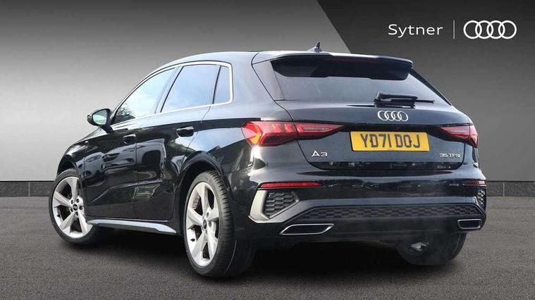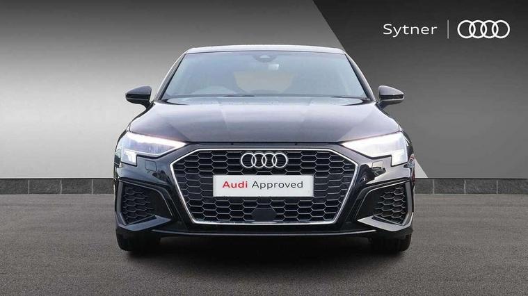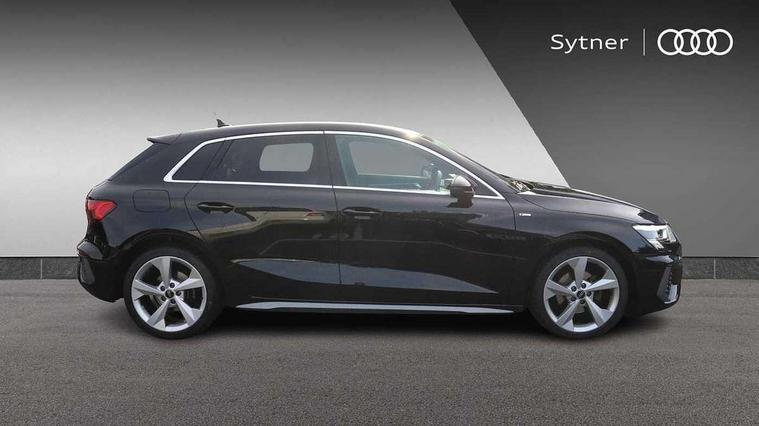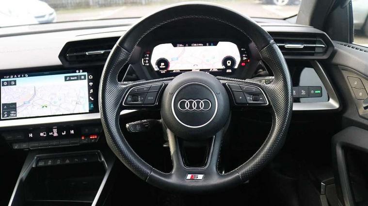 Audi connect emergency call and service, Audi drive select (Auto, Comfort, Dynamic, Efficiency and Individual), Audi smartphone interface, Audi Virtual Cockpit - 10.25" digital and colour instrument cluster, Automatic start/stop system with recuperation, Bluetooth interface, Collision avoidance assistant, Electromechanical power speed sensitive steering, Lane departure warning system, MMI Navigation Plus with high resolution 10.1" colour touch screen display, Service indicator, Trip computer, Voice control system with natural language interaction, 2xUSB-C connection with data and charging functions, 6 passive loudspeakers, DAB Digital radio, 3rd brake light, Acoustic glass windscreen, Aluminium window trim, Auto dimming frameless rear view mirror, Electrically adjustable/heated/folding/auto dimming door mirrors with integrated LED indications + kerb view function for passenger side, Front electric windows, Illuminated aluminium inserts front door sills with S logo, LED daytime running lights, LED headlights with LED rear lights and dynamic rear indicators, Light and rain sensors, Privacy glass - dark tinted rear window, rear door and side windows, Rear electric windows, Rear side air outlets in grained matt black, Rear wiper, S line bumpers, S roof spoiler, 12V socket and storage compartment in front centre console, 40/20/40 split folding rear seat bench with cupholder, Black cloth headlining, Dual zone electronic climate control, Front and rear centre armrest in leather, Front and rear headrests, Front/rear floor mats, Height and reach adjustable steering wheel, Interior lighting - glove compartment light and right hand side, Luggage compartment floor covering, Manual boot compartment lid, Manually adjustable front seats, Seat side bolsters, Stainless steel pedals and front footrest, Twin leather upholstery with front sports seats S embossed logo, Aluminium interior elements pack - A3 Sportback, S line styling pack - A3 Sportback, 3x3 point rear seat belts, Driver and front passenger airbag with passenger airbag deactivation, Electronic Stabilisation Control (ESC) including ABS, ASR and EDL, First aid kit with warning triangle and 2 safety vests, Front side airbags with head airbags and interaction airbag, Hill hold assist, Pre-sense front with pedestrian and cyclist detection, Seatbelt monitoring, Tyre pressure loss indicator, Anti theft alarm, Anti-theft wheel bolts, Electronically operated child lock, Immobiliser, Remote control central locking, Accent surfaces in the dashboard and centre console in platinum grey silk effect paint finish, Dark spectrum aluminium inlays,