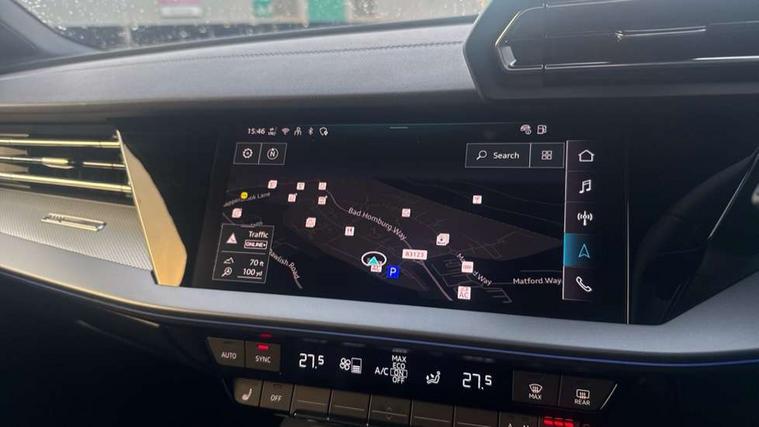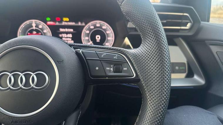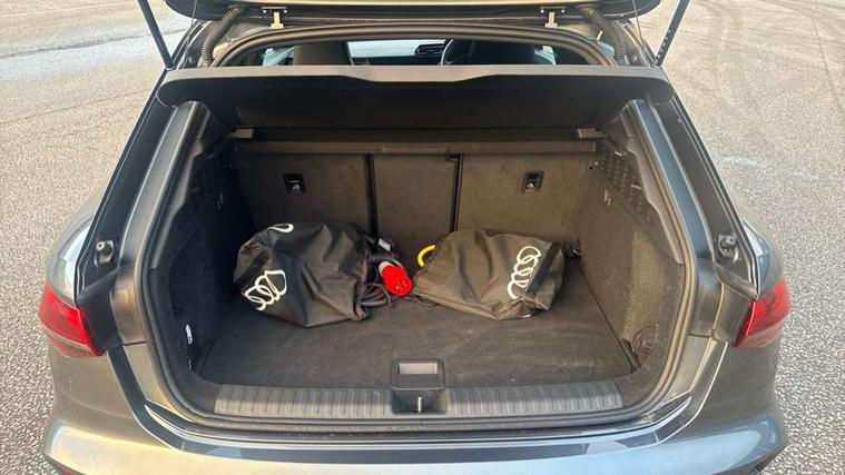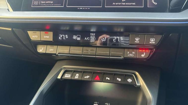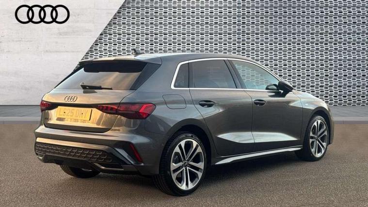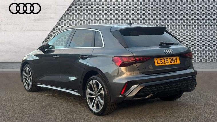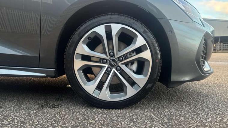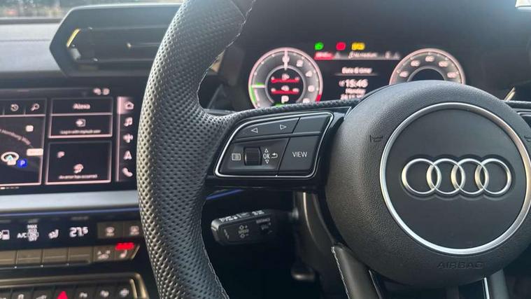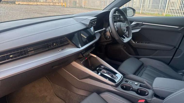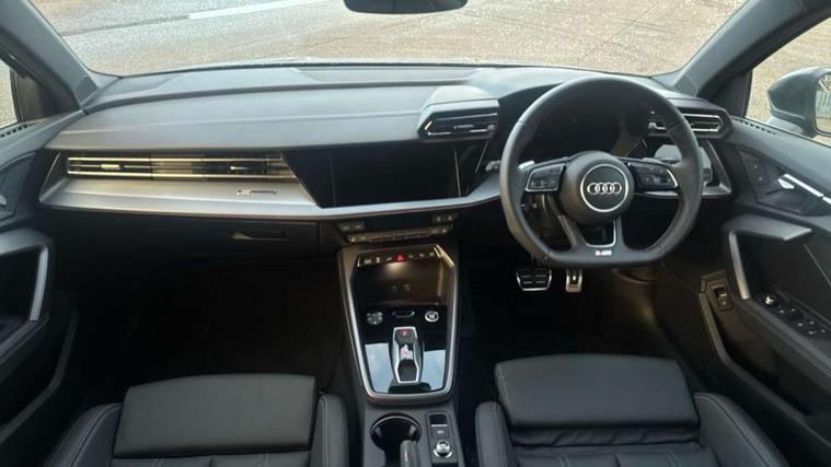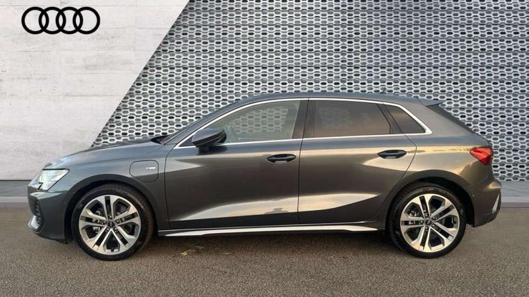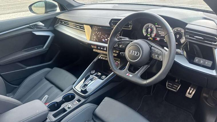 Adjustable speed limiter, Audi drive select, Audi smartphone interface with app store includes wireless Apple carplay, Android auto and Amazon alexa integration, Audi virtual cockpit plus - 12.3" full HD resolution dynamic digital instrument cluster, Automatic start/stop system with recuperation, Bluetooth interface, Camera based traffic sign recognition, Collision avoidance assistant, Cruise control, Distraction and Fatigue warning, e-Call (emergency call), Electromechanical power speed sensitive steering, Lane departure warning system, MMI Navigation Plus with high resolution 10.1" colour touch screen display, Park Assist with parking system Plus, Service indicator, Trip computer, Voice control system with natural language interaction, 3 pin 10 amp domestic charging cable, CCS socket for DC charging, Charging cable for public charging, mode 3 (type 2), up to 22 kW (AC), Compact charging system, Industrial connector CEE 32 A, 230 V, length 1.6 m, Standard suspension, Type 2 socket for AC charging, Audi Phonebox light with wireless charging, Audi sound system - 10 loudspeakers including centre loudspeaker and subwoofer, DAB Digital radio, USB ports with charging function in the rear, Acoustic glass windscreen, Aluminium window trim, Auto dimming frameless rear view mirror, Body colour exterior mirrors, Chrome exhaust tailpipes, Electrically adjustable/heated/folding/auto dimming door mirrors with integrated LED indications + kerb view function for passenger side, Exterior model badging, Front and rear side air inlets in grained matt black with dark liquid chrome frame, Front electric windows, Front radiator grill in high gloss dark chrome, Heat insulating glass windscreen, Illuminated door sills with aluminium inserts at the front with S logo, LED 3rd brake light, LED daytime running lights, LED headlights with LED rear lights and dynamic rear indicators, Light and rain sensors, Privacy glass - dark tinted rear window, rear door and side windows, Rear diffuser and grill in grained matt black with inlay in dark liquid chrome, Rear electric windows, Rear side wing doors, Rear wiper, S line bumpers, S roof spoiler, Side S line emblems on front wings, Side sill trim in dark liquid chrome, 12V socket and storage compartment in front centre console, 3 seat bench in 2nd row, 3 spoke flat bottomed leather multifunction sport steering wheel with gear shift paddles, 3-zone deluxe automatic air conditioning, 4 way electrically adjustable lumbar support for driver and front passenger, 40/20/40 split folding rear seat bench, Black cloth headlining, Convenience auxiliary air conditioning, Front and rear centre armrest in artificial leather, Front and rear centre armrest in artificial leather with contrasting stitching on armrests and instrument panel, Front and rear headrests, Front/rear floor mats, Heated front seats, Height and reach adjustable steering wheel, Manual boot compartment lid, Manually adjustable front seats, Rear cup holders, S badging on the steering wheel, Seat side bolsters, Single front passenger seat, Stainless steel pedals and front footrest in black, Twin leather upholstery with front sports seats S embossed logo, Aluminium interior elements pack - A3 Sportback, Multi-coloured LED interior lighting package - A3, 3x3 point rear seat belts, Acoustic vehicle alerting system, Driver and front passenger airbag with passenger airbag deactivation, Electronic Stabilisation Control (ESC) including ABS, ASR and EDL, First aid kit with warning triangle and 2 safety vests, Front side airbags with head airbags and interaction airbag, Hill hold assist, Pre-sense front with pedestrian and cyclist detection, Seatbelt monitoring, Tyre pressure loss indicator, Anti theft alarm, Anti-theft wheel bolts, Electronically operated child locks, Immobiliser, Remote central locking with safelock, Dash & door Inlay in dark aluminium Spectrum, Tyre repair kit,