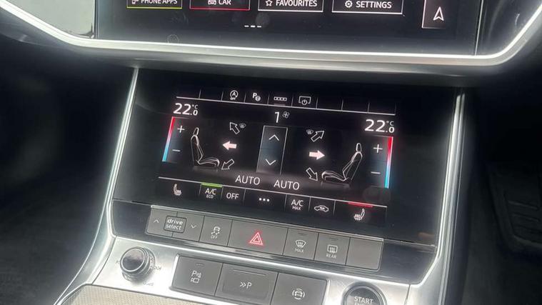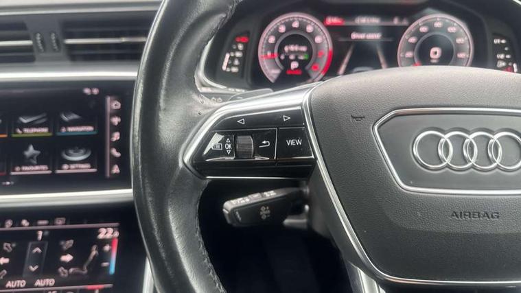 7" high resolution colour driver information display system, Audi connect safety and service (e-call), Audi drive select, Audi parking system plus - acoustic and visual park assist system for front and rear, Audi smartphone interface, Automatic start/stop system with coasting functionality, Bluetooth interface, Cruise control + speed limiter, Electric boot lid release, Lane departure warning system, MMI navigation with MMI touch + twin touch screens 8.8" and 8.6" with haptic and acoustic feedback, Progressive steering, Rear view camera, Service interval indicator, Voice control system, 12V Mild hybrid, Quattro on demand, Standard suspension, Audi music interface, Audi sound system, Auxiliary input socket, DAB Digital radio, USB connection, All weather LED headlights, Body colour bumpers, Body coloured door mirrors, Electric front/rear windows, Frameless auto dimming interior rear view mirror, Heat insulating darkened glass in side and rear windows, Heat insulating glass in windshield, LED rear lights, Matt black rear diffuser with diffuser strip and tailpipes in chrome, Matt black side air intake grille with inlay in matt aluminium, Radiator grille in titanium black matt, single frame in chrome and horizontal struts in matt aluminium silver, Rain and light sensors, 2 zone deluxe electronic climate control, 3 spoke high multi-function leather steering wheel with shift paddles, 4 way electric lumbar support for driver and front passenger, 40/20/40 split folding 3 rear seat bench in 3 parts with rear centre armrest, Centre armrest matches seat colour, Door sill trims with aluminium inlay, Front centre armrest, Front head restraints, Front/rear floor mats, Heated front seats, Height/reach adjust steering wheel, Illuminated sun visors with vanity mirrors, ISOFIX child seat mounting and Top Tether with front passenger airbag deactivation, Leather gear knob, Lunar silver cloth headlining, Manually adjustable front seats, Rear headrests, Tool kit and car jack, LED Interior Ambient Lighting Pack - A6, Non smoking pack - A6, 3 point seatbelts on all seats, Airbags - Front side, front and rear including head, Audi pre-sense front, EBD - Electronic brakeforce distribution, Electromechanical parking brake, Electronic Stability Control (ESC) including ABS, ASR and EDL, Extended pedestrian protection measures, Seatbelt monitoring, Tyre pressure warning light, Warning triangle and first aid kit, Anti theft alarm with tow away protection, Anti-theft wheel bolts and wheel loosening detection, Immobiliser, Keyless Go, Remote central locking, Aluminium fragment inlay,