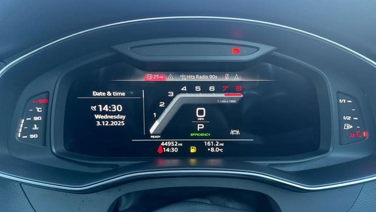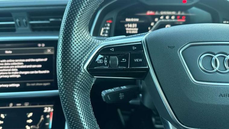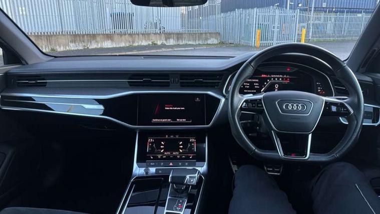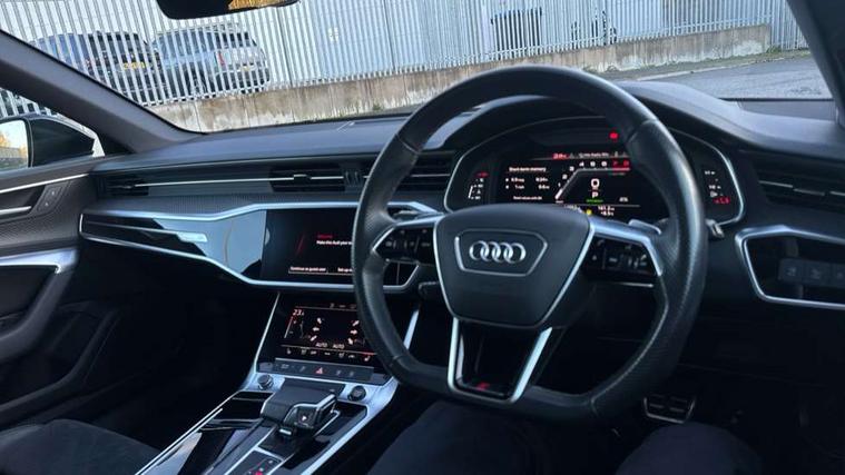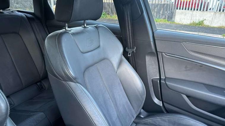 7" high resolution colour driver information display system, Audi connect safety and service (e-call), Audi connect with Amazon Alexa Integration, Audi drive select, Audi parking system plus - acoustic and visual park assist system for front and rear, Automatic start/stop system with coasting functionality, Bluetooth interface, Lane departure warning system, Power operated tailgate, Progressive steering, Rear view camera, Service interval indicator, Smartphone interface includes wireless Apple carplay/Android Auto, Voice control system, Sports suspension, Audi front music interface, Audi sound system, Auxiliary input socket, DAB Digital radio, USB connection, All weather LED headlights, Black roof rails, Electric front/rear windows, Frameless auto dimming interior rear view mirror, Front intermittent wipers, Gloss black highlights on the exterior area of the Audi Single frame, Gloss black highlights on the front and rear bumpers, Gloss black highlights on the radiator grille, Gloss black highlights on the side windows trim strips, Headlight washers, Heat insulating darkened glass in side and rear windows, Heat insulating glass in windshield, LED rear lights, LED signature front daytime running light, LED third brake light, Matt black rear diffuser with diffuser strip and tailpipes in chrome, Matt black side air intake grille with inlay in matt aluminium, Privacy glass, Rain and light sensors, Rear roof spoiler, Rear side wing doors, Rear wiper, 2 zone deluxe electronic climate control, 4 way electric lumbar support for driver and front passenger, 40/20/40 split folding 3 rear seat bench in 3 parts with rear centre armrest, Black cloth headlining, Black front and rear carpet floor mat, Black steering wheel insert, Electrically adjustable front seats with driver memory, Front centre armrest, Front head restraints, Heated front seats, Height/reach adjust steering wheel, Illuminated door sill trims with S logo, Illuminated sun visors with vanity mirrors, ISOFIX child seat mounting and Top Tether with front passenger airbag deactivation, Leather gear knob, Luggage compartment system, Rear headrests, Single front passenger seat, Stainless steel pedals and foot rest, LED Interior Ambient Lighting Pack - A6, Non smoking pack - A6, Technology pack - A6, 3 point seatbelts on all seats, Airbags - Front side, front and rear including head, Audi pre-sense front, Black seatbelts, EBD - Electronic brakeforce distribution, Electromechanical parking brake, Electronic Stability Control (ESC) including ABS, ASR and EDL, Extended pedestrian protection measures, Manual child proof rear door locks, Seatbelt monitoring, Tyre pressure warning light, Warning triangle and first aid kit, Anti theft alarm with tow away protection, Anti-theft wheel bolts and wheel loosening detection, Immobiliser, Keyless Go, Remote central locking, Carbon twill inlays, 20" 5 V spoke star design Audi sport cast aluminium alloy wheels in matt titanium look,