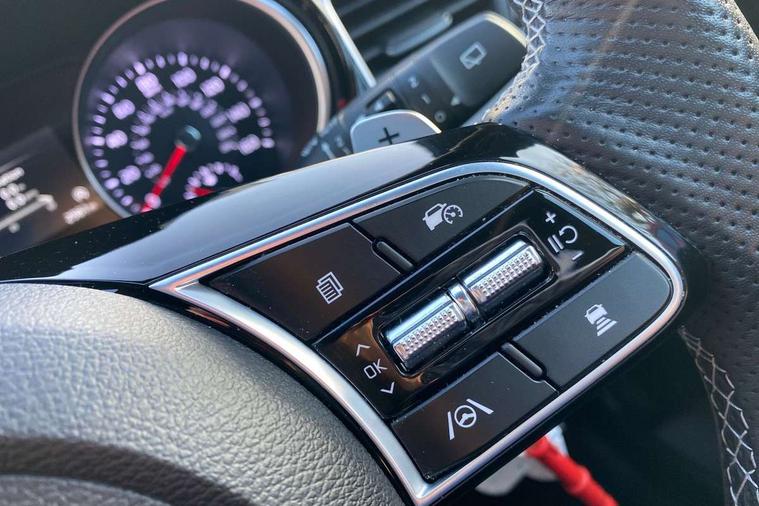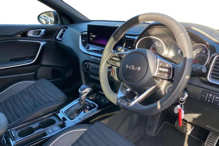 10.25" touchscreen satellite navigation, 4.2" supervision colour cluster display, Apple car play/Android Auto with voice control, Bluetooth with Voice Recognition & Music Streaming, Drive mode select (Normal and Sport), Driver attention warning + (DAW) with leading vehicle departure warning, Emergency call service, Emergency stop signalling system, Forward Collision-Avoidance Assist (FCA) - City/Pedestrian/Cyclist, Kia connect UVO, Lane Following Assist (LFA), Lane keep assist, Manual speed limit assist, Motor driven power steering, Rear parking sensor, Reversing camera system with dynamic guidelines (Integrated into centre fascia screen), Smart cruise control with stop/go functionality, Trip computer, Intelligent Stop and Go, 6 speaker audio system, DAB Radio with MP3, Illuminated USB ports, Steering wheel mounted controls, USB Fast Charger in Front Centre Console, USB type A port, All-round Electric Windows with Front Auto Up & Down Function, Auto dimming rear view mirror, Automatic defog system, Automatic headlights control, Body colour bumpers, Body colour exterior door handles, Body coloured and dark chrome rear skid plate, Body coloured side sill mouldings, Dark chrome window surround, Electric adjustable/heated/folding door mirrors with LED Indicators, Heated rear window with timer, High beam assist, High gloss black and dark chrome radiator grille, High gloss black door mirrors, High Gloss Black rear spoiler - roof, LED daytime running lights, LED front fog lights, LED Headlights, LED High-mounted Brake Light, LED honeycomb rear light, LED rear combination lights, LED rear fog light, Privacy glass (rear side windows and tailgate), Rain sensing front wipers, Rear side wing doors, Rear wash/wipe, Satin chrome dual exhaust trim, Tinted glass, Wide view drivers door mirror, Windscreen Washer Level Warning, 1 x Front 12V socket, 12V power socket in luggage compartment, 3 seat bench in 2nd row, 3 x passenger assist grips, 60/40 split folding rear seat, All-round height adjustable headrests, Aluminium pedals, Black headlining, Centre console storage box/armrest, Cloth/faux leather upholstery, Cupholders in centre console, Cupholders in rear armrest, Dash illumination dimmer switch, Door courtesy lamps, Driver & Front Passenger Sunvisors with Vanity Mirror Illumination & Ticket Holder, Driver + front passenger electric lumbar support, Driver's seat height adjuster, Dual Height Luggage Area Floor, Dual zone automatic air conditioning, Faux leather door centre trim, Front and rear door storage, Front cabin map light with sunglasses case, Front Passenger Seat Height Adjuster, Front seat back pockets, Heated front seats, Heated steering wheel, Interior door lock/unlock function, ISOFIX Child seat top tethers and anchor fixings, Leather D-Cut steering wheel, Leather handbrake, Luggage area light, Luggage area parcel shelf, Luggage hooks, Rear centre armrest, Rear coat hooks, Single front passenger seat, Tilt/telescopic adjustable steering wheel, All round 3-point seatbelts, Anti-lock braking system (ABS), Brake assist system, Dual front side airbags, Dual horn, EBD - Electronic brakeforce distribution, Electronic parking brake, Electronic stability control (ESC) and vehicle stability management (VSM), Front passenger airbag cut-off switch, Height adjustable front seatbelts, Hill start assist control (HAC), Impact sensing auto door unlocking, Rear door child safety locks, Seatbelt reminder warning, Twin curtain airbags, Twin front airbags, Tyre pressure monitoring system, Alarm system, Engine Immobiliser & Deadlocks, Locking wheel nuts, Remote central door locking with fold away key, Speed sensitive auto door locking, Satin Chrome Fascia Trim, 17" GT-Line alloy wheels, Tyre mobility kit,