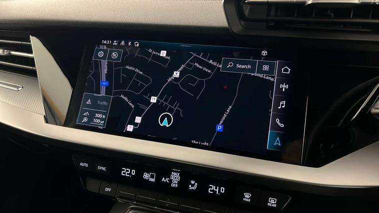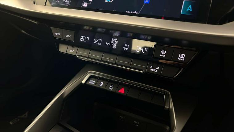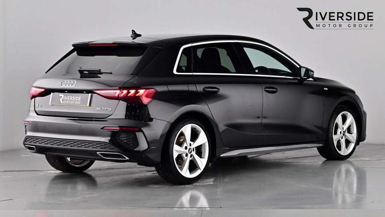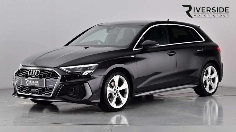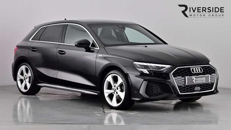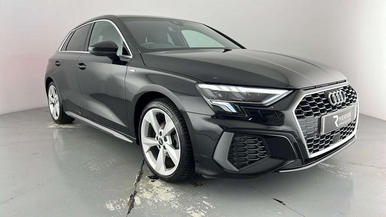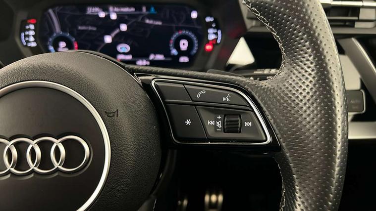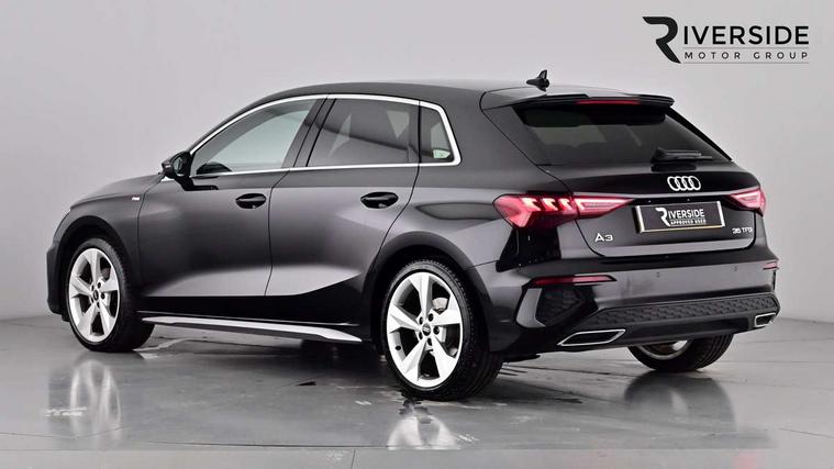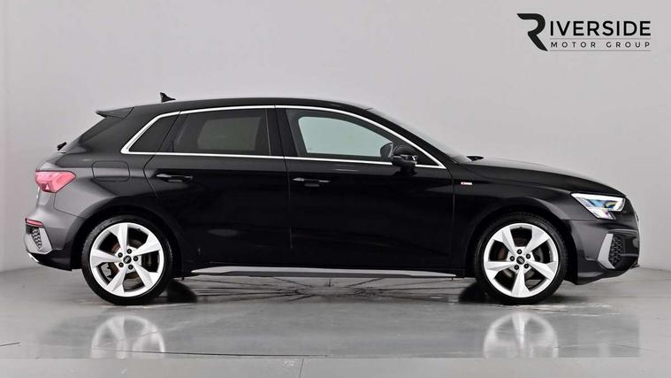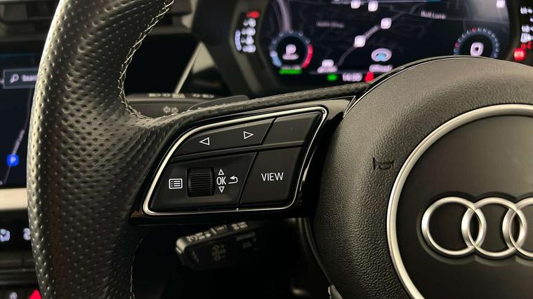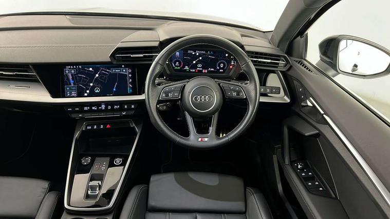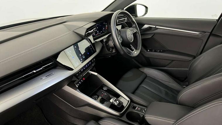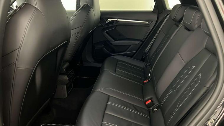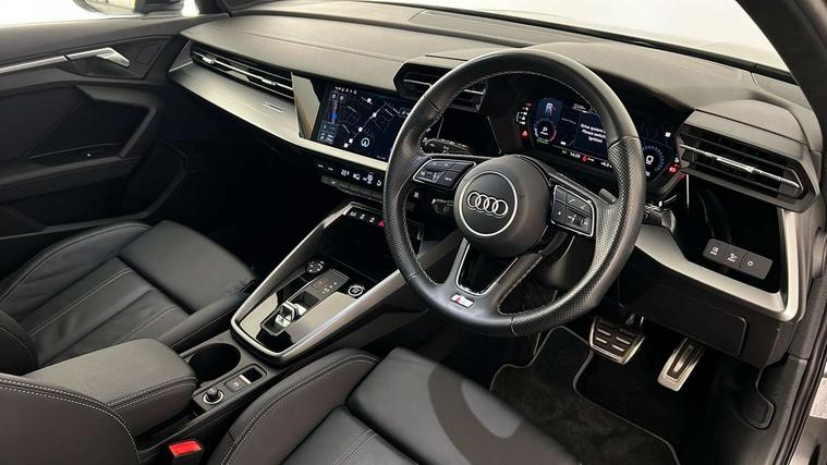 Audi drive select (Auto, Comfort, Dynamic, Efficiency and Individual), Audi smartphone interface, Audi Virtual Cockpit - 10.25" digital and colour instrument cluster, Automatic start/stop system with recuperation, Bluetooth interface, Collision avoidance assistant, e-Call (emergency call), Electromechanical power speed sensitive steering, Lane departure warning system, MMI Navigation Plus with high resolution 10.1" colour touch screen display, Service indicator, Trip computer, Voice control system with natural language interaction, 2xUSB-C connection with data and charging functions, 6 passive loudspeakers, DAB Digital radio, 3rd brake light, Acoustic glass windscreen, Aluminium window trim, Auto dimming frameless rear view mirror, Electrically adjustable/heated/folding/dimming door mirrors with kerb view includes integrated LED indications + kerb view function for passenger side, Front electric windows, Illuminated aluminium inserts front door sills with S logo, LED daytime running lights, LED headlights with LED rear lights and dynamic rear indicators, Light and rain sensors, Privacy glass - dark tinted rear window, rear door and side windows, Rear electric windows, Rear side air outlets in grained matt black, Rear side wing doors, Rear wiper, S line bumpers, S roof spoiler, 12V socket and storage compartment in front centre console, 3 seat bench in 2nd row, 40/20/40 split folding rear seat bench with cupholder, Black cloth headlining, Dual zone electronic climate control, Front and rear centre armrest in leather, Front and rear headrests, Front/rear floor mats, Height and reach adjustable steering wheel, Illuminated vanity mirror, Interior lighting - glove compartment light and right hand side, Luggage compartment floor covering, Manual boot compartment lid, Manually adjustable front seats, Seat side bolsters, Single front passenger seat, Stainless steel pedals and front footrest in black, Twin leather upholstery with front sports seats S embossed logo, Aluminium interior elements pack - A3 Sportback, S line styling pack - A3 Sportback, 3x3 point rear seat belts, Audi pre sense front, Driver and front passenger airbag with passenger airbag deactivation, Electronic Stabilisation Control (ESC) including ABS, ASR and EDL, First aid kit with warning triangle and 2 safety vests, Front side airbags with head airbags and interaction airbag, Pre-sense front with pedestrian and cyclist detection, Seatbelt monitoring, Tyre pressure loss indicator, Anti theft alarm, Anti-theft wheel bolts, Immobiliser, Manual child locks, Remote control central locking, Accent surfaces in the dashboard and centre console in platinum grey silk effect paint finish, Dark spectrum aluminium inlays,