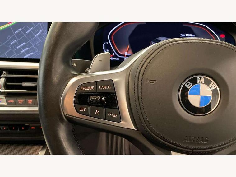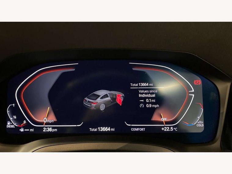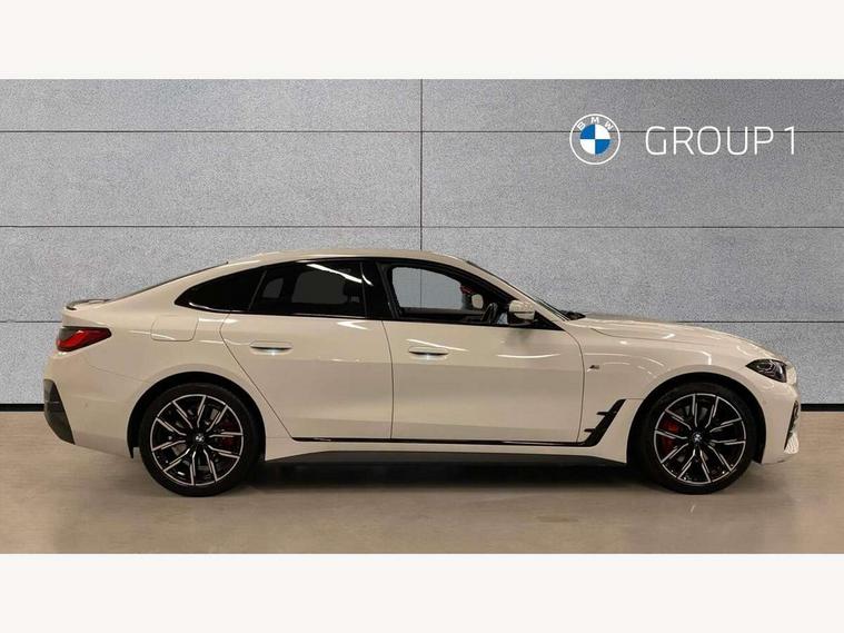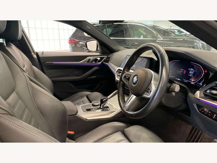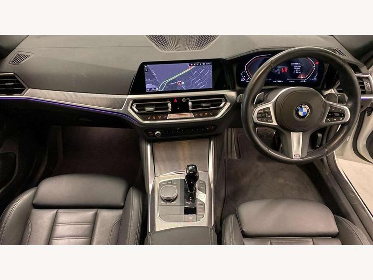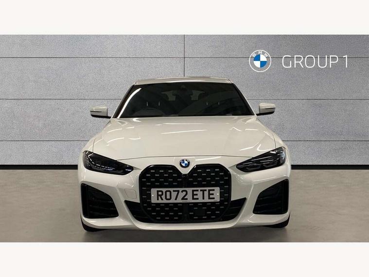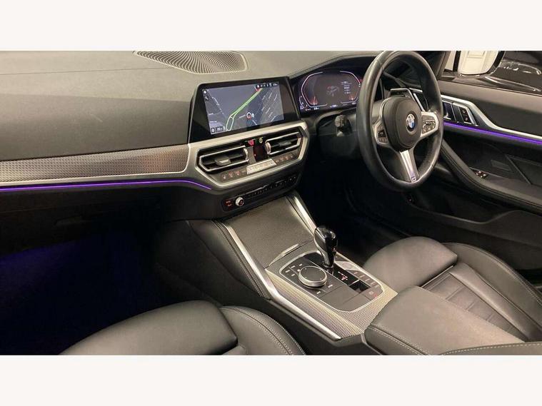 Active guard plus, Attentiveness assist, Auto start-stop, BMW ConnectedDrive online services, BMW iDrive controller on centre console, BMW Live Cockpit Professional Nav with 12.3" instrument display + 10.25" display, Intelligent Voice Assist, BMW OS 7, HDD, 2USB, 4G LTE connect, BMW service history, BMW Teleservices, Brake pad wear indicator in front and rear, Check Control warning system for monitoring of lights and door/luggage compartment open warning, Condition based service, Cruise control with speed limit function, Electric bootlid, Electric power steering with Servotronic steering optimised at all speed ranges, Gearshift time display in manual mode, Instrument cluster with speedometer with mph readout, tachometer, fuel gauge and oil temperature gauge, Integrated owners handbook, Oil sensor for level and grade, warning by check control system, On board computer - average speed, fuel consumption, outside temp display with acoustic warning, clock/date, service interval, odometer/trip meter, Optimum shift indicator, Shifting point display, Variable sport steering, 48V Mild hybrid technology, 8 speed automatic steptronic transmission with gearshift paddles, Diesel particulate filter, Double joint spring strut front axle, Drive performance control - ECO PRO, comfort and sport modes, Incorrect fuelling protection, Low centre of gravity, M sport suspension, Stroke dependent dampers, 2x USB Type C ports in front centre console for charging and data transfer, DAB tuner, Electronic service booklet, 3rd brake light, Acoustic glazing, Automatic headlight beam throw control with load dependent regulating reaction, dynamic compensation of braking dive and acceleration squat, Automatic windscreen wipers and automatic headlight, Automatically dimming electrochromatic rear view mirror, BMW emblem on engine compartment lid and tailgate, BMW kidney grille with mesh grille front side of the nuggets in matt aluminium and frame in chrome high gloss, Body colour fuel filler flap, Body colour roof fin, Brushed aluminium inserts in the front door sill finishers with BMW designation, Door sill strips, Dynamic brake lights, Electric windows - front and rear, with open/close fingertip control, anti trap facility and comfort closing function all round, Exterior mirrors - electrically folding with anti-dazzle, Fading support, Follow me home headlights, Front and rear bumper system, Front apron plastic in body colour, Green tinted heat protection glazing, High gloss shadow line exterior trim, Illuminated bow type door handles in body colour drivers side with door lock, Interior rear view electrochromatic mirror with automatic anti dazzle function, LED daytime running lights, LED front fog lights, LED front indicators, Licence plate panel integrated into front bumper and tailgate, Lightweight engineering, M designation on front side panels, left and right, M sport rear boot spoiler with body colour gurney, Model designation on right side of tailgate, One piece front bumper cover including towing eye cover in body colour, Preparation for high beam assistant, Rear side wing doors, Rear wiper, Reversing light, Side frame decorative moulding black matt, Two part LED tailights in L-shape with components in smoked glass, brake light, LED turn indicator and rear fog light, Visible exhaust tailpipe finisher, Visible VIN plate, Welcome lights in interior and door handle area, Widened track and increased camber values for max transverse dynamics, agility and steering precision, Window recess cover black high gloss, Windscreen wipers with integrated heated washing jets, 12V power socket in front centre console, 2 front cupholder in centre console with clamping elements and matt black inlay, 3 rear headrests, 3 seat bench in 2nd row, 3 spoke M sport leather multifunction steering wheel, 3 zone automatic air conditioning, 4 pieces lashing eyelets in luggage compartment, 40:20:40 split folding rear seat and rear centre armrest with two cupholders, Anthracite headlining, Armrest integrated in front and rear door trim + front centre console armrest, Battery in luggage compartment, BMW ID, Driver seat backrest width adjustment, Four grab handles integrated in roof lining, Front and rear door pockets, Front and rear reading lights, Front sport seats, Heated driver and front passenger seats, Height adjustable front headrests, Height adjustable mechanically and infinitely variable steering column, Illuminated armrest storage compartment, Illuminated glove compartment with separate small compartment, Make-up mirror lights, Single front passenger seat, Storage compartment in rear centre console, Sunvisors with illuminated vanity mirrors and ticket pocket, Toolkit located in luggage compartment, Velour front floor mats, Vernasca leather upholstery, Ambient lighting pack - 4 Series, Connected professional pack - 4 Series, M sport exterior styling pack - 4 Series, 3 point seatbelts on all seats, Battery safety cut-off, BMW emergency call, Brake energy regeneration, Braking pre-tensioning, Child proof locking system in rear door, Child seat ISOFIX attachment for the two outer rear seats, Coasting in idle in ECO PRO mode, Cornering brake control (CBC), Crash sensor activating of airbags, Unlocking doors, hazard warning lights, fuel cut off, interior lighting+activation of safety battery terminal clamp, Driver and front passenger side airbags, integrated in the door side seat backrest bolsters for all seat variants, Driver/Front Passenger airbags, Dry braking, Dynamic brake control, Dynamic stability control + (DSC+) - Anti-lock Braking System (ABS) with brake assist and cornering brake control + Automatic Stability Control (ASC), Dynamic Traction Control - DTC, Electric parking brake including automatic hold function and automatic release of the parking brake when driving off, Electronic differential lock control (EDLC), Front and rear ventilated brake disc, Front passenger manual airbag deactivation, Head airbags for all 4 outer seats, Hi