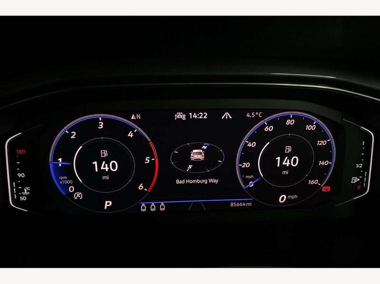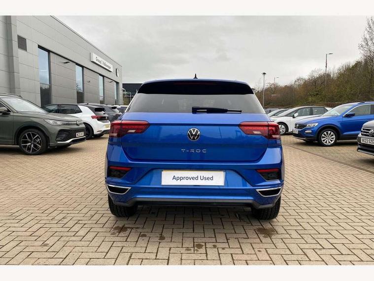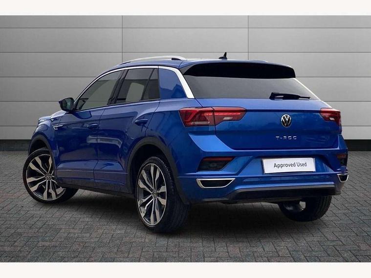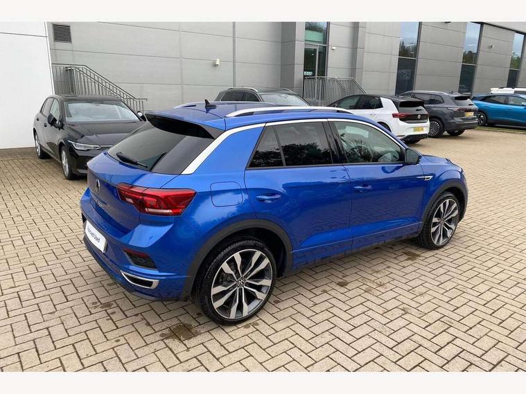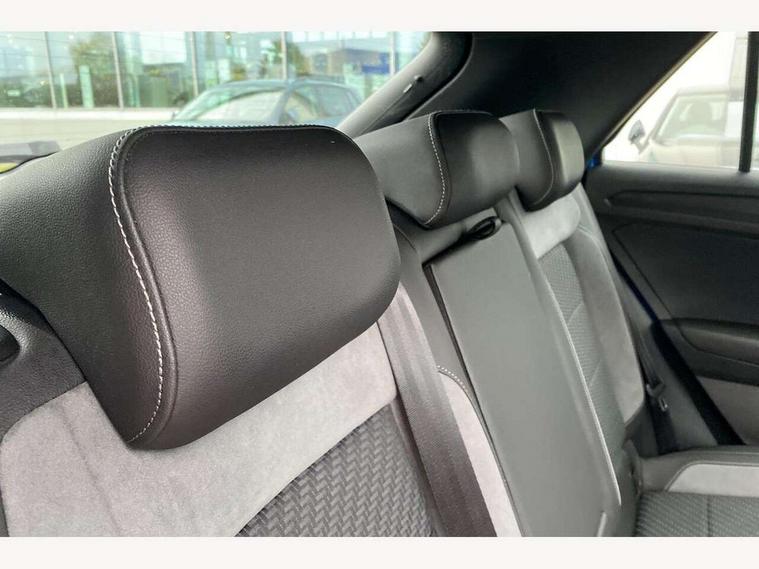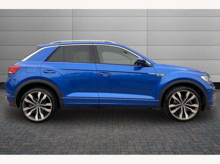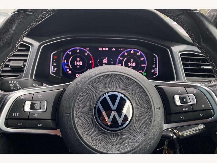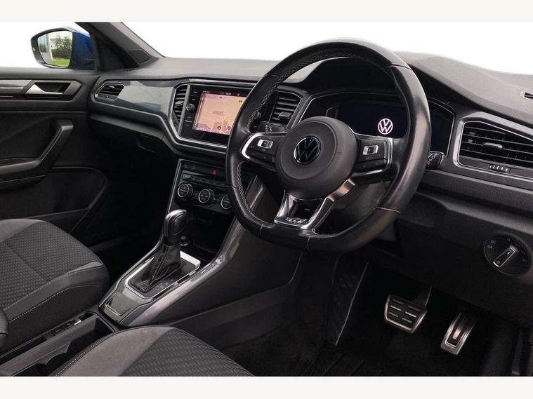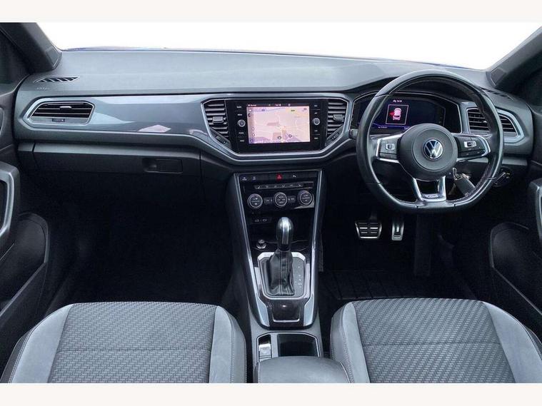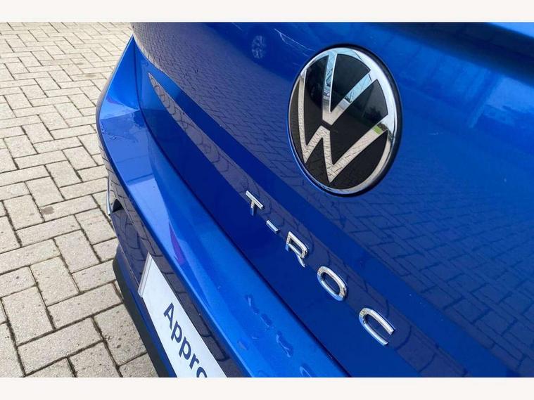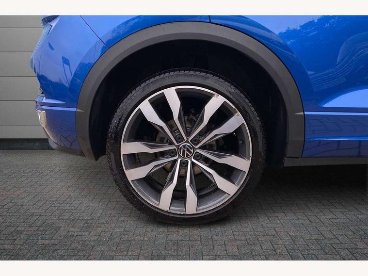 'Lights On' Reminder warning buzzer, Adaptive cruise control with front assist, radar sensor controlled distance monitoring, city emergency braking, Automatic start/stop system, Bluetooth telephone and audio connection for compatible devices, Car information display, Digital Cockpit Pro - Active info display, Discover navigation including 8" touch screen display, streaming and internet, Driver alert system with audible and visual fatigue detection system, Driver tips and journey analysis, Lane assist with warning text instrument cluster, Modified key software - reduce switch off time for key status change to Long no motion, Multifunction computer with visual gear change recommendation for fuel consumption, Service interval indicator, Think blue trainer driver tips and journey analysis, Voice activation, Wireless app connect for apple carPlay, Battery regeneration during braking, Misfuel prevention device for diesel engine, Centre arm rest including USB type C interface and USB charging socket, DAB Digital radio, Diversity antenna for FM reception, Front USB type C Interface 2X and USB charging socket, Music playback - MP3, WMA and AAC files, Premium USB cable in choice of either Apple or Android smartphone compatibility, SD card slot, Simultaneous pairing of 2 compatible mobile devices, SMS functionality - read, compose and send SMS messages using touch-screen display, Storage compartment with longitudinal and height adjustable in armrest and two rear air vents, Three route options - Fast, Short, Eco, Title and cover art display, Auto dimming interior rear view mirror, Automatic hazard lights activation under emergency braking, Black grained lower door protectors, Body colour door handles, Body colour rear roof spoiler, Chrome effect left and right trapezoid exhaust tailpipe fascia surround, Chrome trim on upper and lower radiator grille, Dusk sensor, Electrically foldable, adjustable and heated door mirrors with puddle lights and reverse activated kerb-view adjustment on passenger's door mirror, Front and rear electric windows, Front fog lights with static cornering function, Front windscreen wiper with intermittent wipe and 4 position delay, Fully galvanised body, Heated rear window, High level 3rd brake light, LED darkened rear light clusters, LED dipped and main beam headlights with automatic range adjustment including signature LED daytime running lights, LED rear number plate lights, Manual coming/automatic leaving home lighting function, Rain sensor, Rear tinted glass from B-pillar backwards approx 65% tinted, Rear wash/wipe with intermittent wipe setting, Volkswagen roundel, 2 Front and rear reading lights incorporating LED technology, 3 rear head restraints, 4 load lashing points in luggage compartment, Aluminium pedals, Ambient lighting in front footwell and light strips below trim in front doors, Black roof lining and sun visors, Branded points of interest, Carbon flag cloth upholstery, Climate control - 2 zone electronic air conditioning with automatic air recirculation and allergy filter, Drawer under drivers seat, Front + rear carpet mats, Front cupholders x 2, Front seat back storage pockets, Front sports seats with R-Line logo on seat backrest, Glovebox, Height adjustable front seats, Height/reach adjust steering wheel, Illuminated vanity mirrors, Instrument lighting, white adjustable panel illumination, Interior light delay, Isofix easy fit child seat preparation for 2 outer rear seats, Load through provision with single cup holder when folded down, Luggage compartment cover, removable, Luggage compartment lighting, R Line badge, Split folding rear seat backrests with centre armrest, Storage compartment in left and right luggage area, Storage compartment in rear doors, Storage compartments in driver and front passenger doors, Three spoke multi function leather trimmed steering wheel and gear knob including paddle shift, Unique R Line door sill protectors, R line styling pack - T-Roc, Winter pack - T-Roc, 3 rear three point seatbelts, ABS, Curtain airbags, Driver and front passenger safety-optimised head restraints, Drivers and front passengers airbags with passengers deactivation switch, Drivers seatbelt reminder, Electronic parking brake with auto hold, Electronic stability control (ESC) includes ASR, EDL, EDTC and trailer stabilisation function, Front seat side impact airbags, Predictive pedestrian protection, Rigid safety cell with front and rear crumple zones, Three point height adjust front seatbelts + pretensioners, Tyre pressure loss indicator, Ventilated front and rear disc brakes, Volkswagen roadside assistance, Alarm with remote central locking and interior protection, Electronic engine immobiliser, Remote central locking with 2 remote folding keys, Shadow grey decorative inserts in dash and door panel, 19" Suzuka alloy wheels with low rolling resistance tyres and anti wheel bolts,