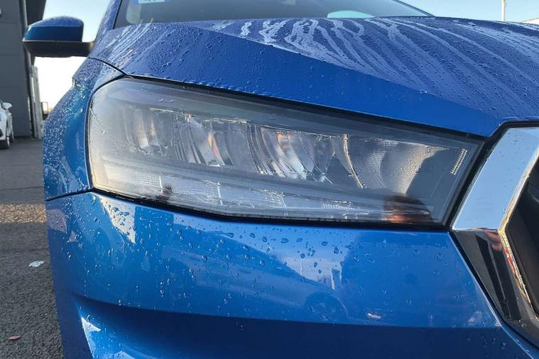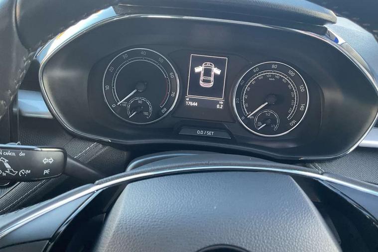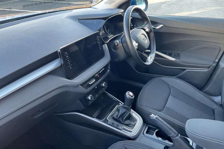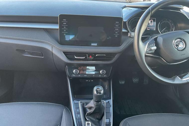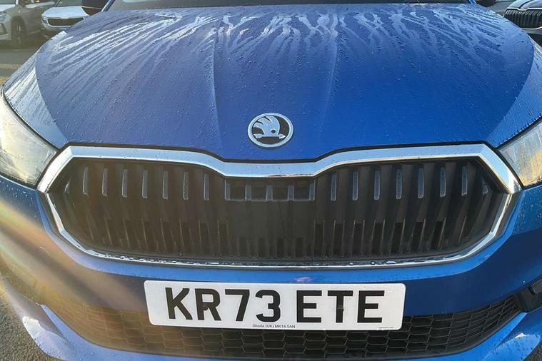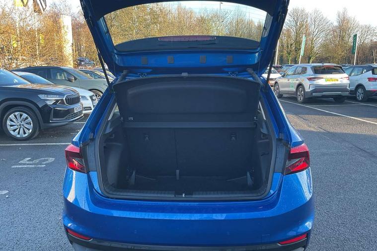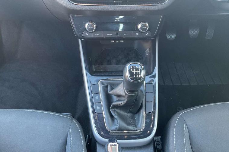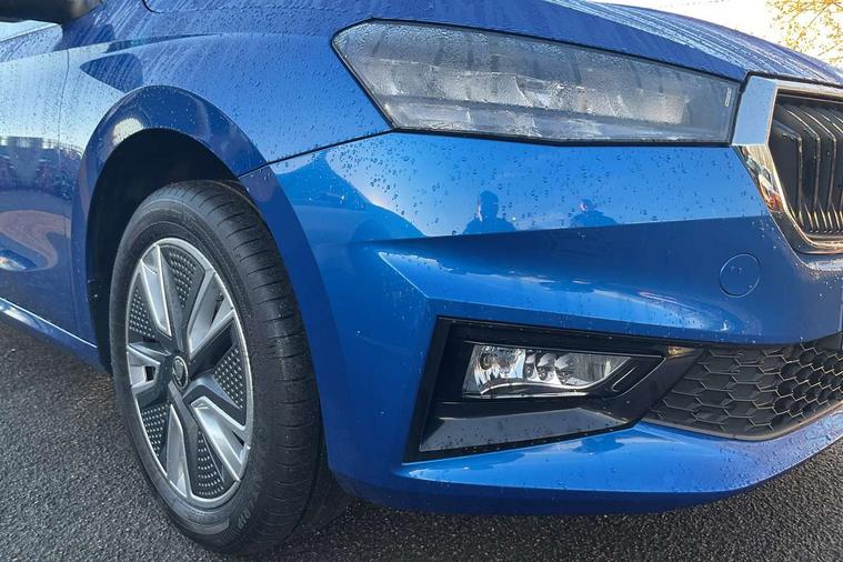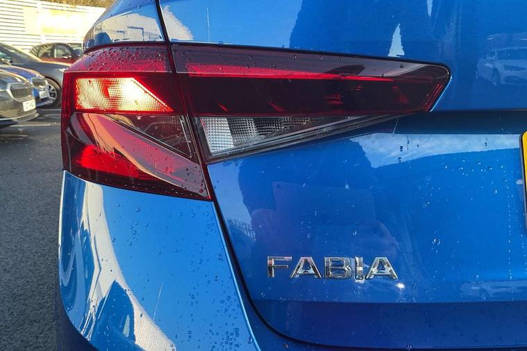 Bluetooth connection, Driver alert system - DAS, Electromechanical power steering, Exterior temperature gauge, Service interval indicator, 2x USB-C in the front (for data transmission and charging), 6 Speakers (4 in front and 2 in rear), Auxiliary socket for external MP3 player, DAB digital radio reception, Web radio, Auto dimming rear view mirror, Body colour door mirrors, Body coloured bumpers, Chrome window surround, Door mirror integrated indicators, Electrically adjustable and heated door mirrors, Front and rear electric windows, Front window wiper intermittent control, Headlight range control - Automatic, Ice scraper in fuel cap, LED daytime running lights with coming and leaving home feature, Rear LED fog light, Rear side wing doors, Rear window wiper with washing nozzles, Roof mounted spoiler, SKODA tailgate lettering in chrome, Third brake light, 3 rear headrests, Backrest split and folding, Central console with fixed cup holder and storage box, Chrome handbrake release button, Comfort seats, Fabric upholstery, Front centre armrest, Gearshift knob/handle in leather, Hand brake lever handle in leather, Height adjustable front headrests, Height adjustable front seats, Height adjustable steering wheel, ISOFIX and TopTether anchorage points to the outer rear seats, ISOFIX and TopTether on the front passenger seat, Luggage compartment lighting, Manually adjustable lumbar support in front seats, Pollen filter, Rear seat bench unsplit, Removable cup holder, Single front passenger seat, Storm grey headlining, Sun visors with mirror and airbag label on passenger side, Textile floor mats, Ticket holder, Umbrella in drivers door, Ambient lighting pack 2 - Fabia Hatchback, 3-point height adjustable front seats belts with pretensioner and force limiter, Automatic warning lights in case of crash, Driver and passengers airbag with switch off function, e-Call+, ESC including ABS, MSR, ASR, EDS, HBA and XDS, Front and rear seat belt warning, FRONT ASSIST (AEB City and AEB Inter Urban), Front side airbags, Head airbags, One tone horn, Pedestrian protection, Three rear 3-points safety seat belts with pretensioner and force limiter including stop function for outer rear seat belts, Tyre pressure monitoring system, Anti-theft alarm system including immobiliser, interior monitoring, backup horn, and towing protection, Chrome edged air vents, Satin black door and side trim panel in front, Anti-theft wheel bolts protection, Super-low rolling resistance tyres,